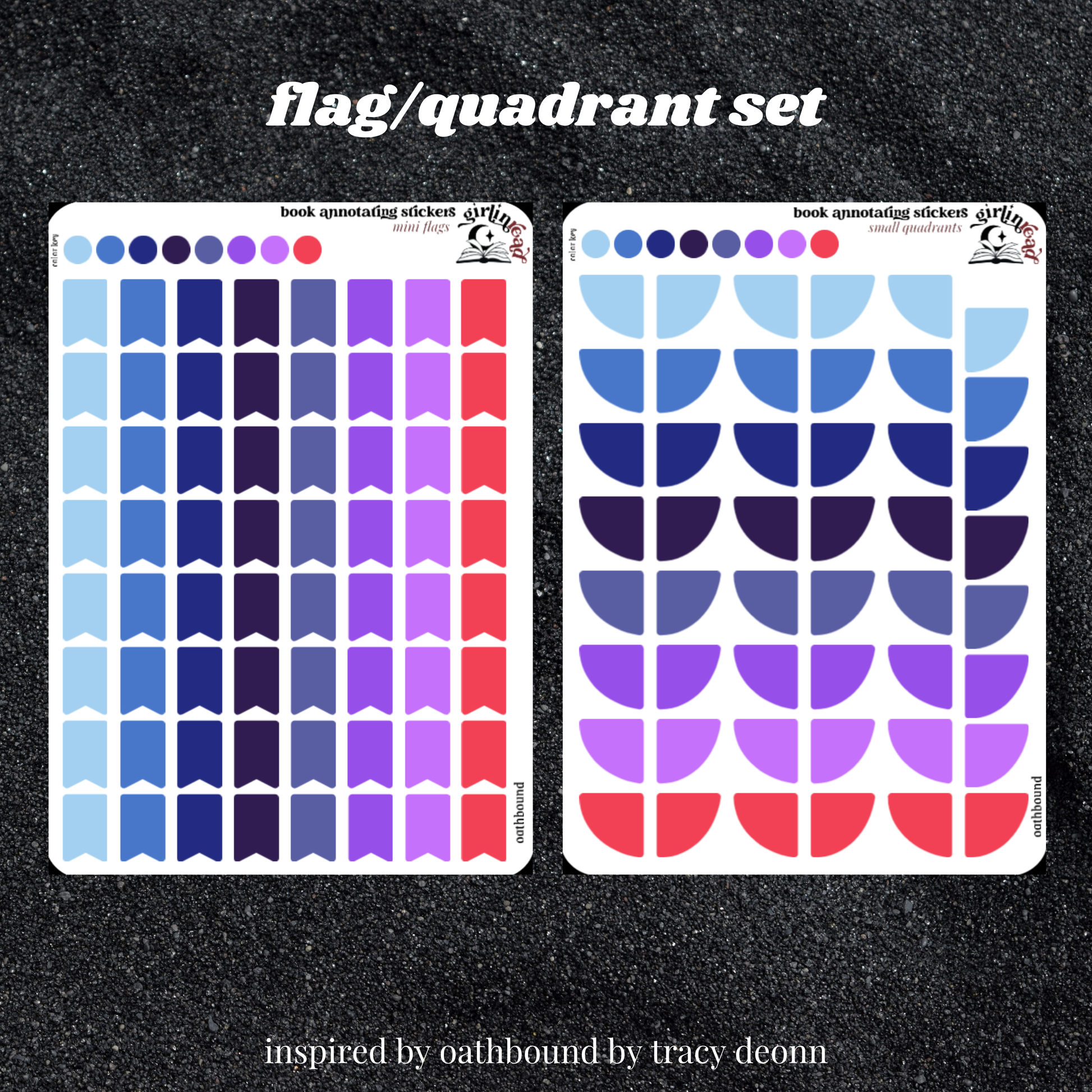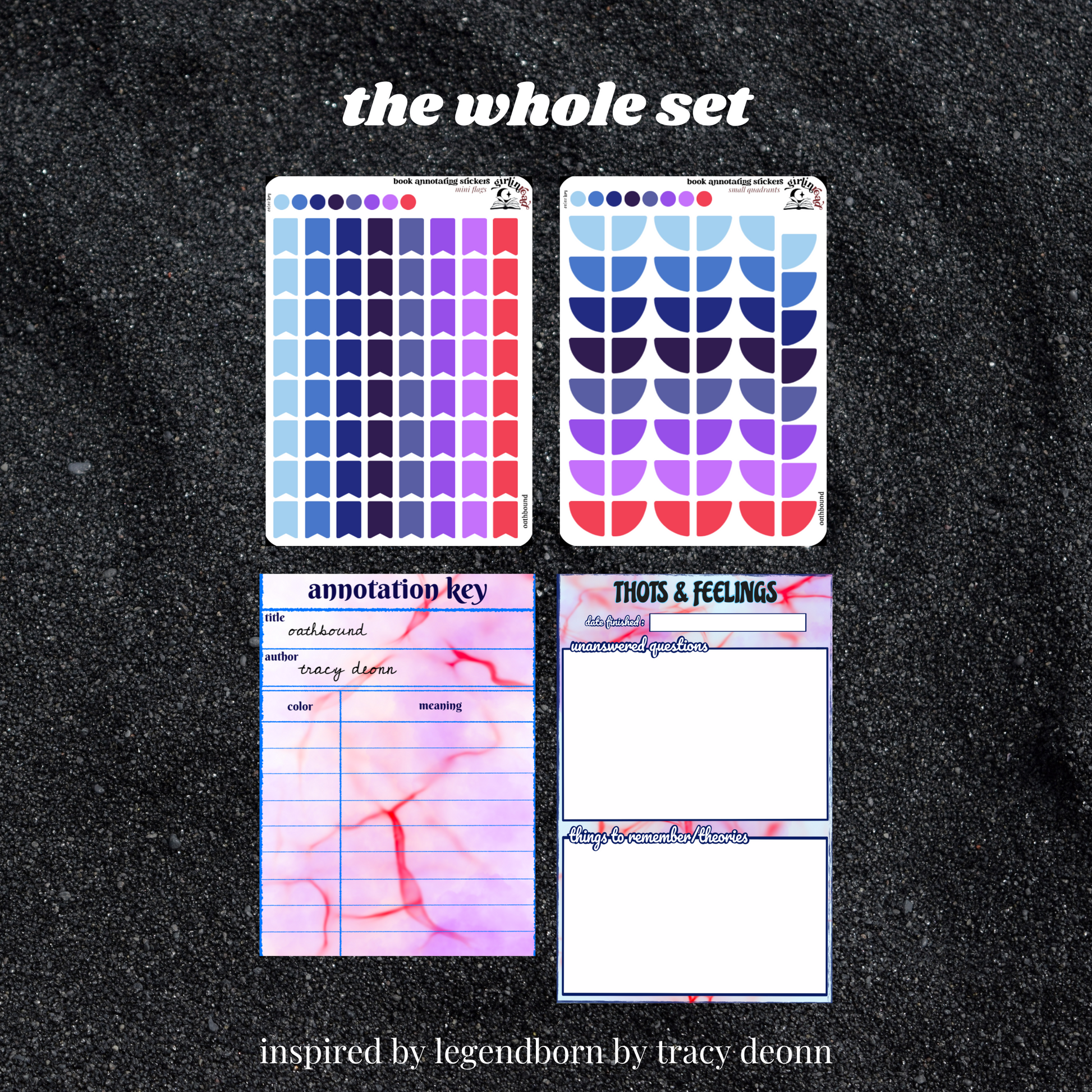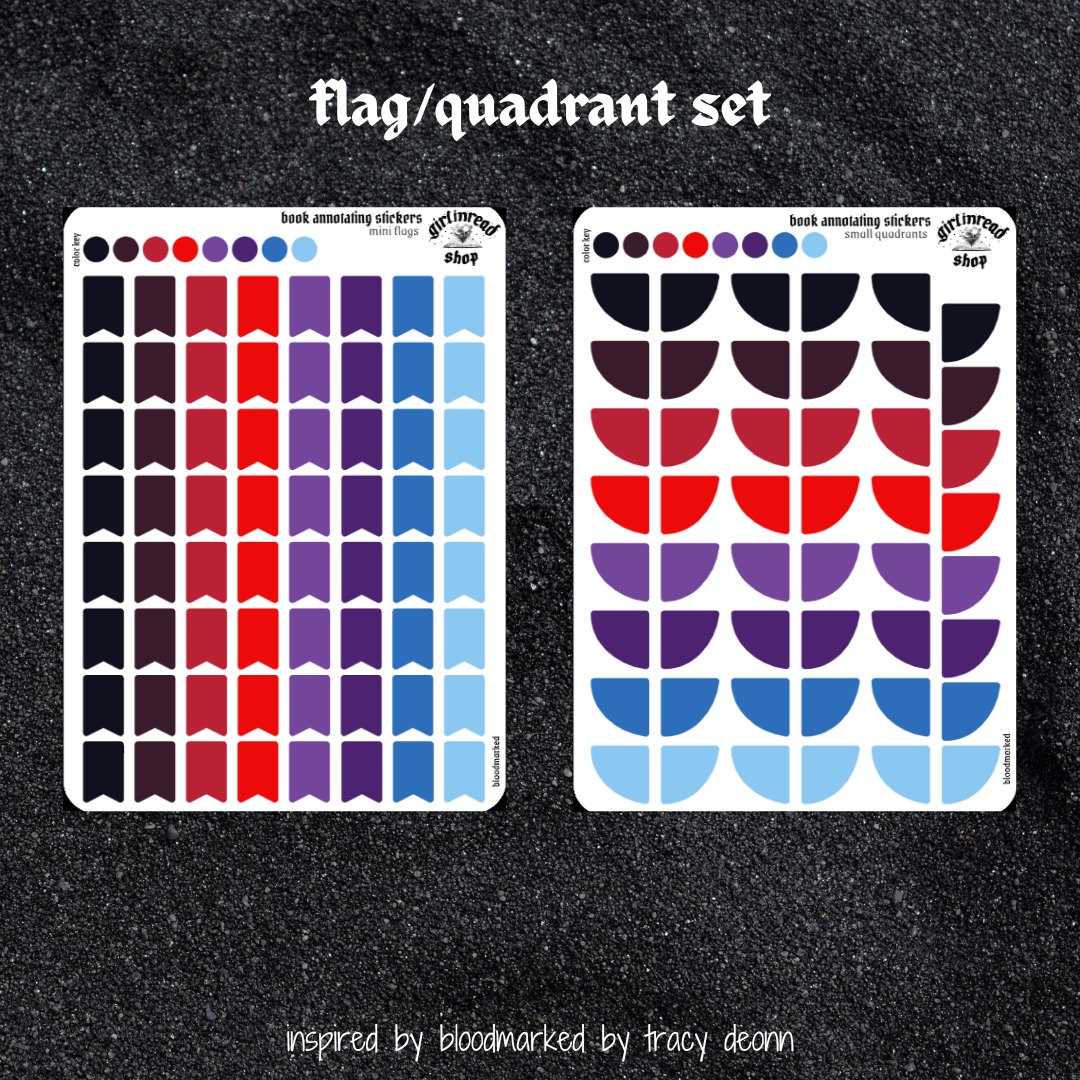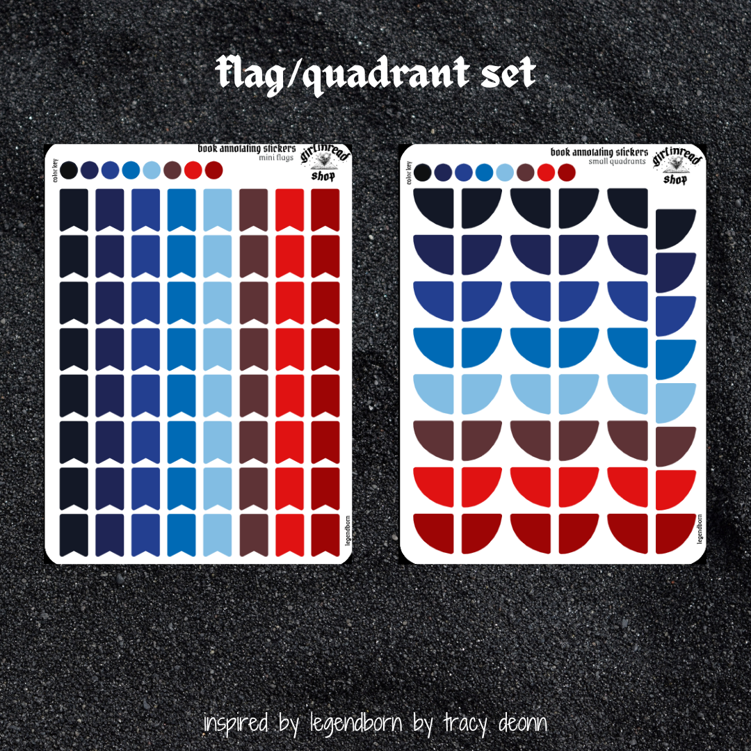"the whole set" comes with all stickers listed (annotation key, review sticker, flags, quadrants).