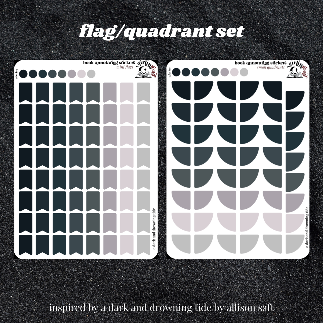 book annotating tabs in the color palette inspired by the book cover for a dark and drowning tide! can be placed in the book you're annotating, your planner, your journal, your reading log, etc.!
