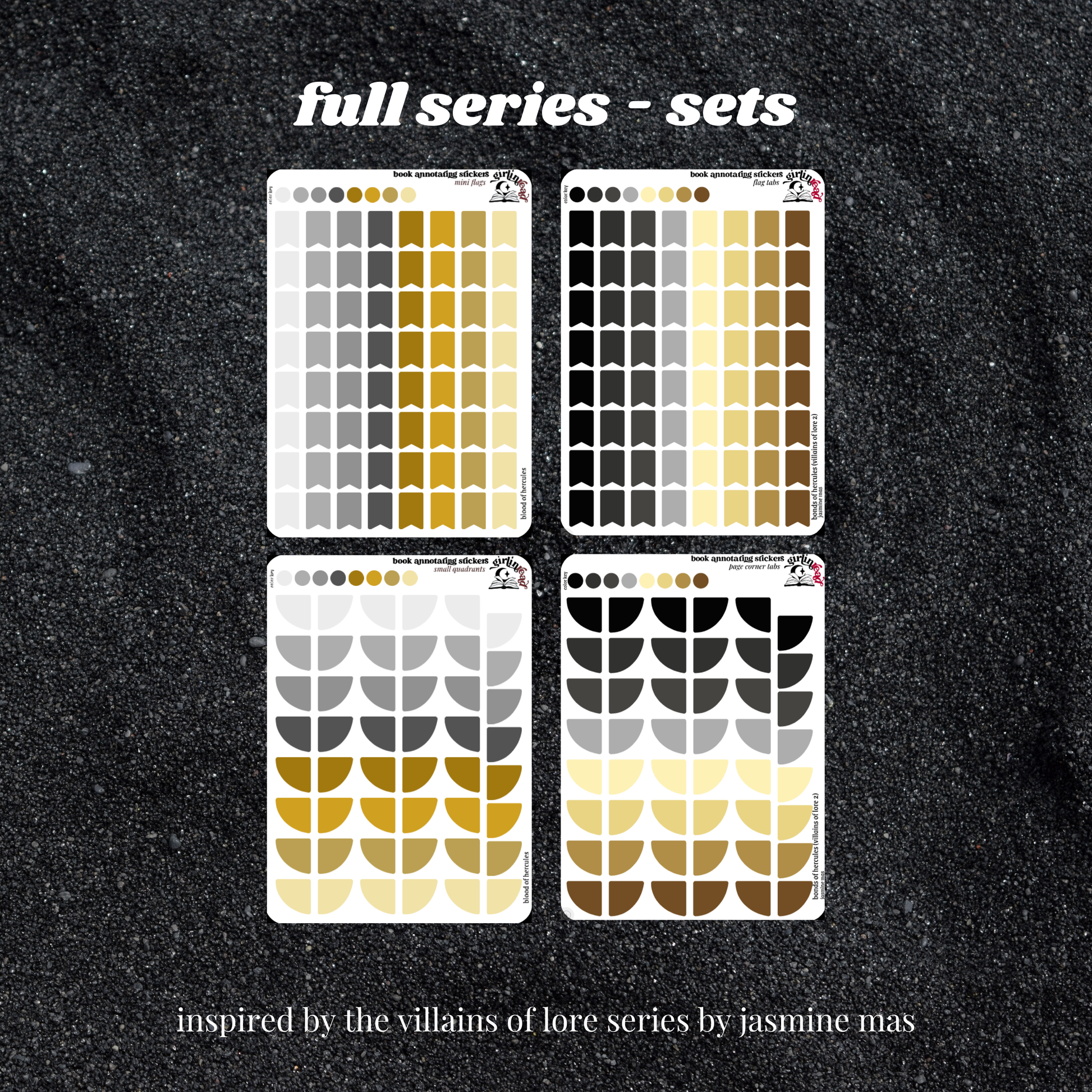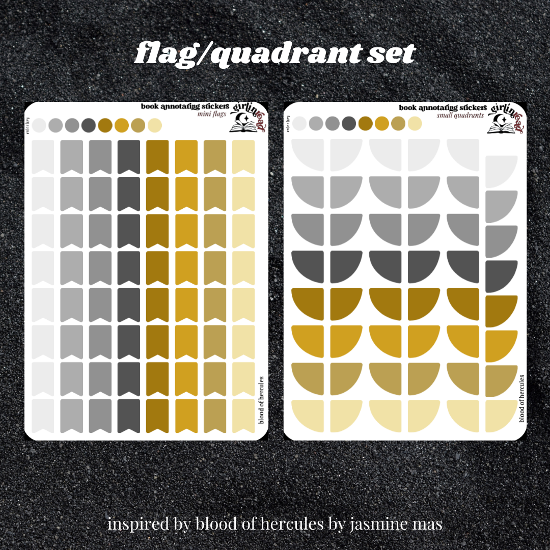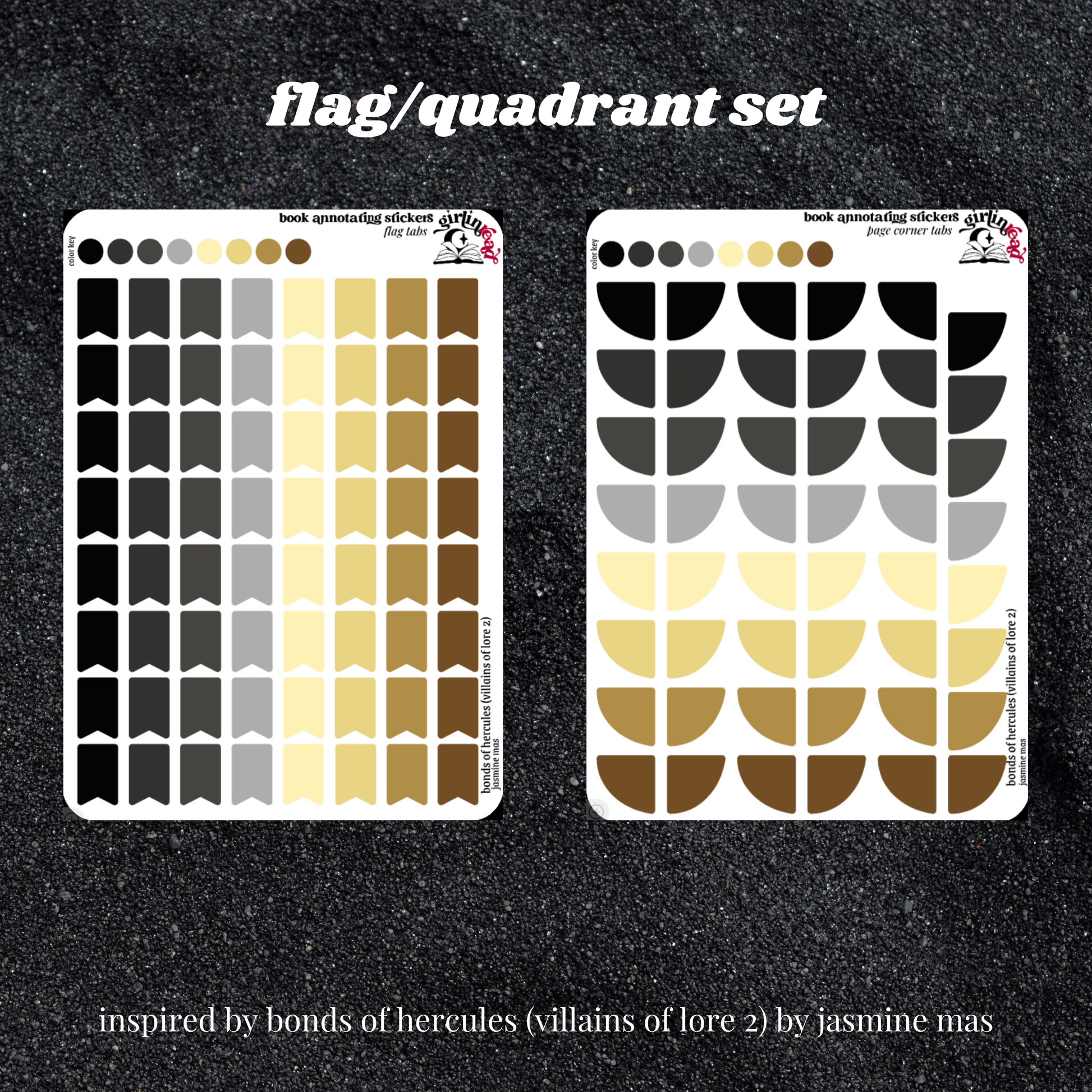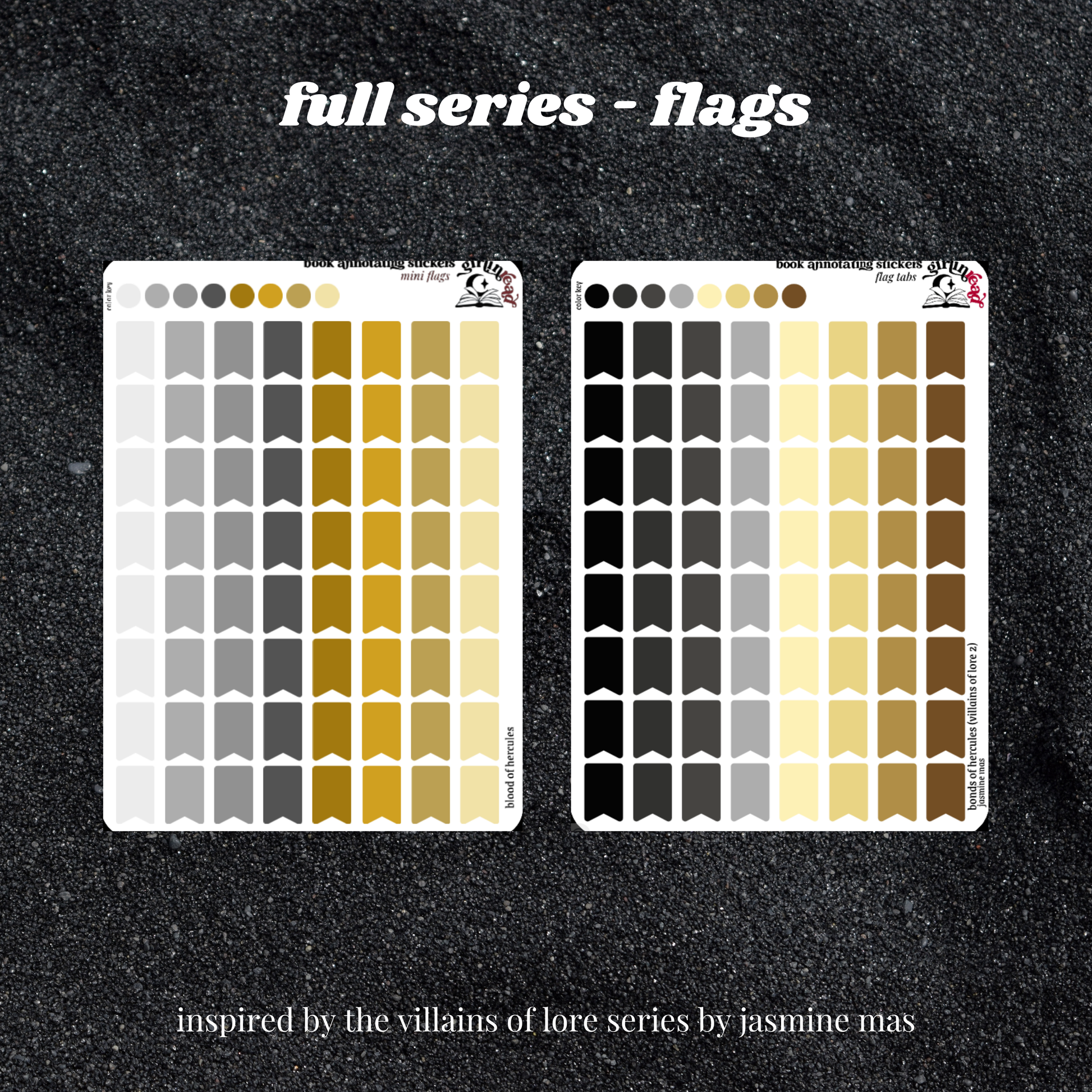 book annotating tabs in the color palette inspired by the book cover for the villains of lore series (blood of hercules, bonds of hercules)! can be placed in the book you're annotating, your planner, your journal, your reading log, etc.!