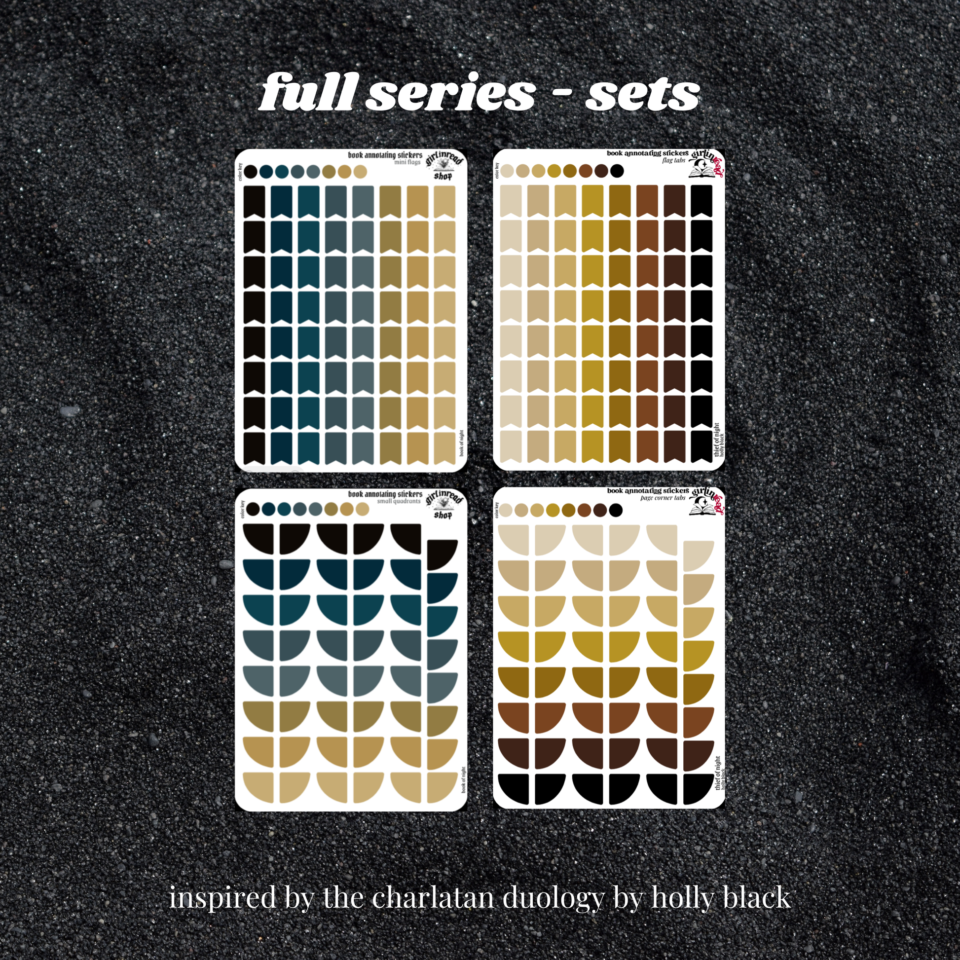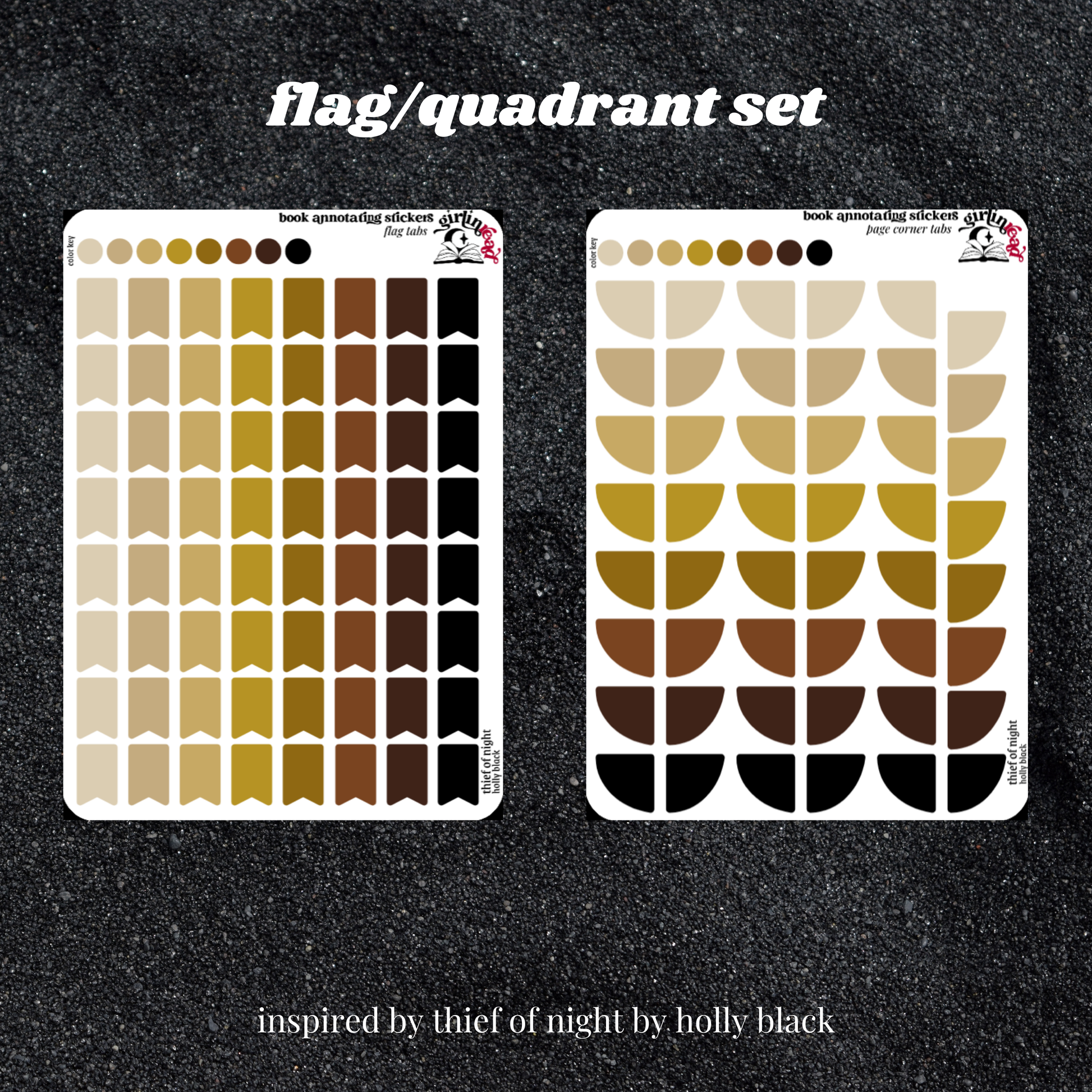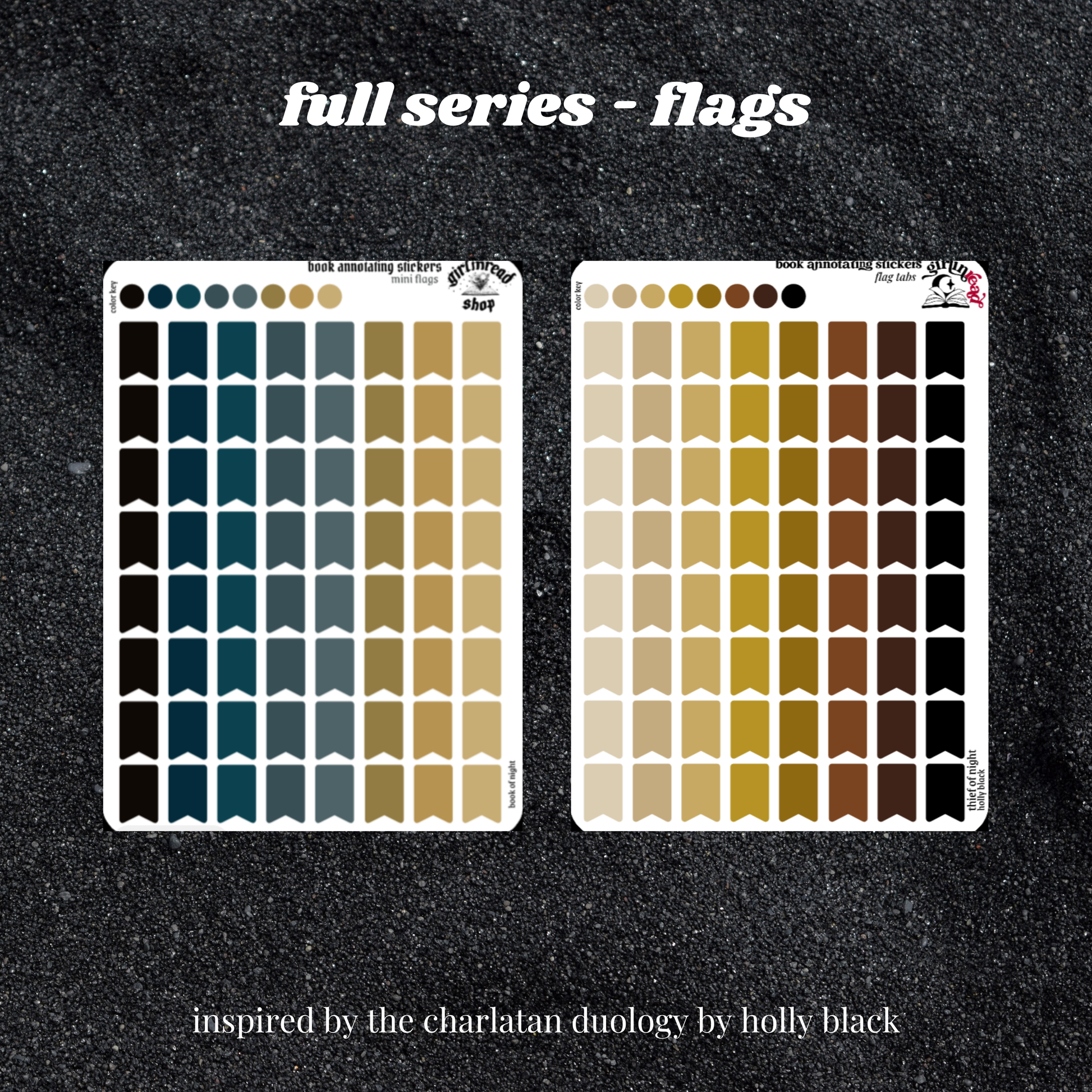 book annotating tabs in the color palette inspired by the book cover for the charlatan duology (book of night, thief of night)! can be placed in the book you're annotating, your planner, your journal, your reading log, etc.!