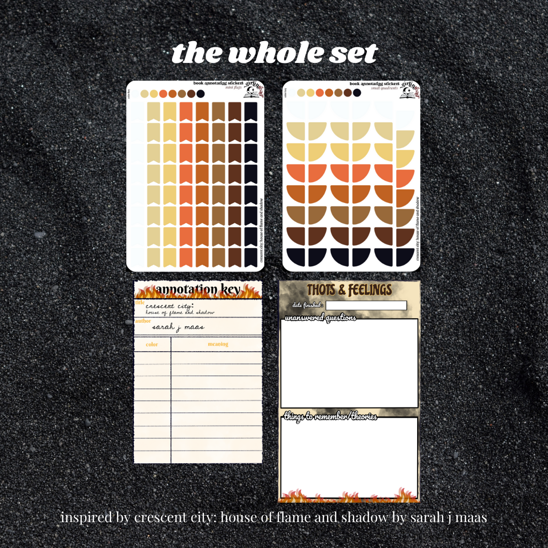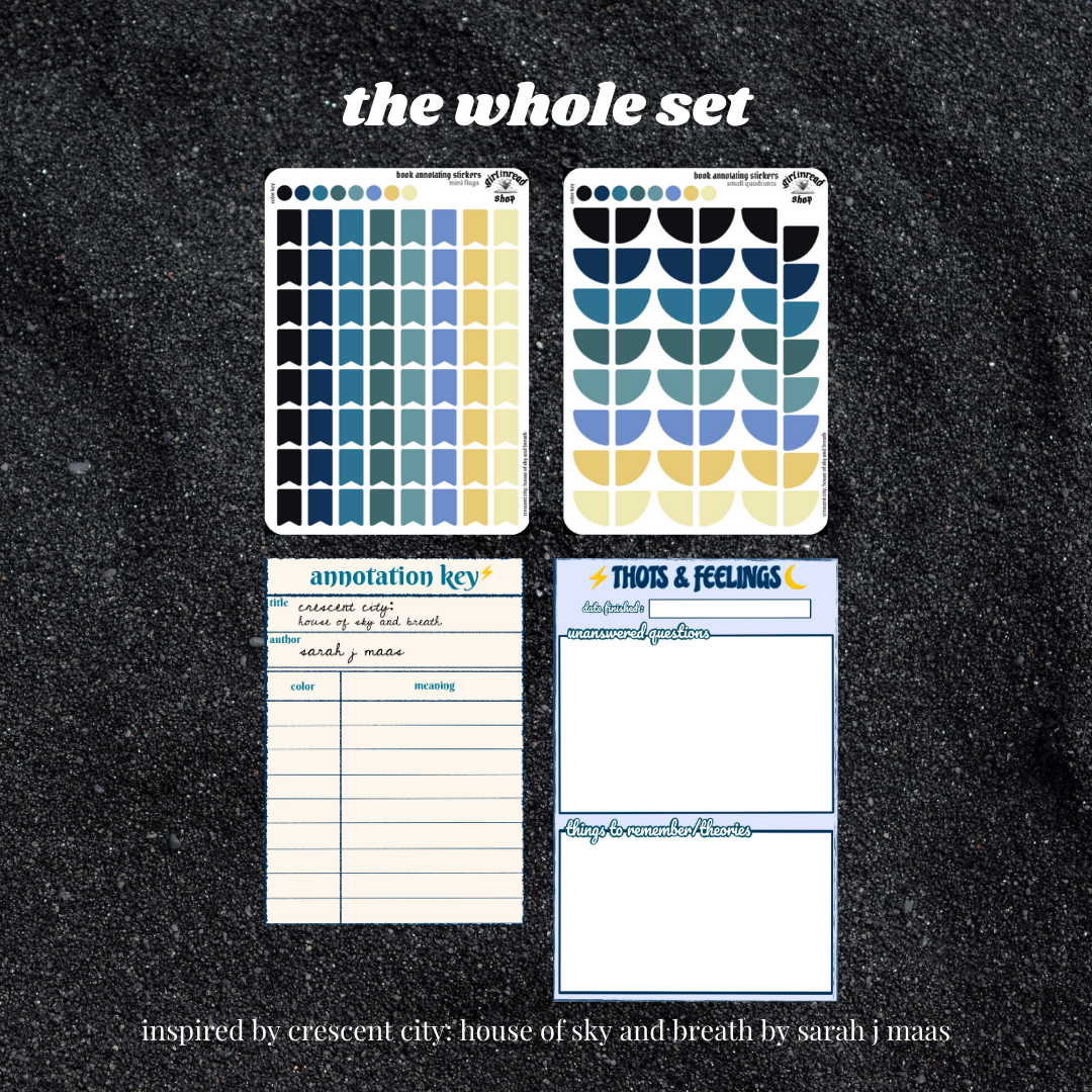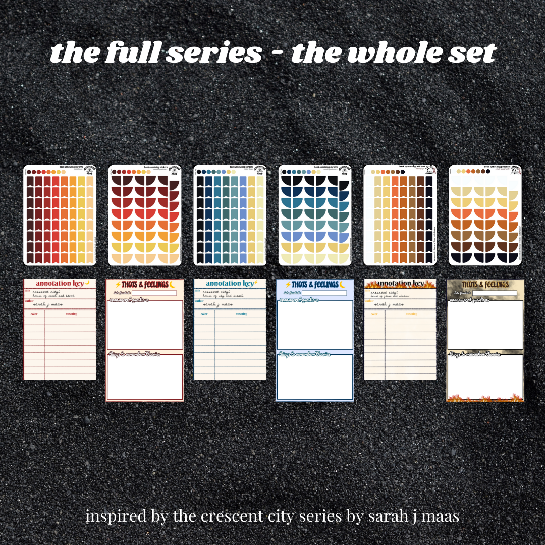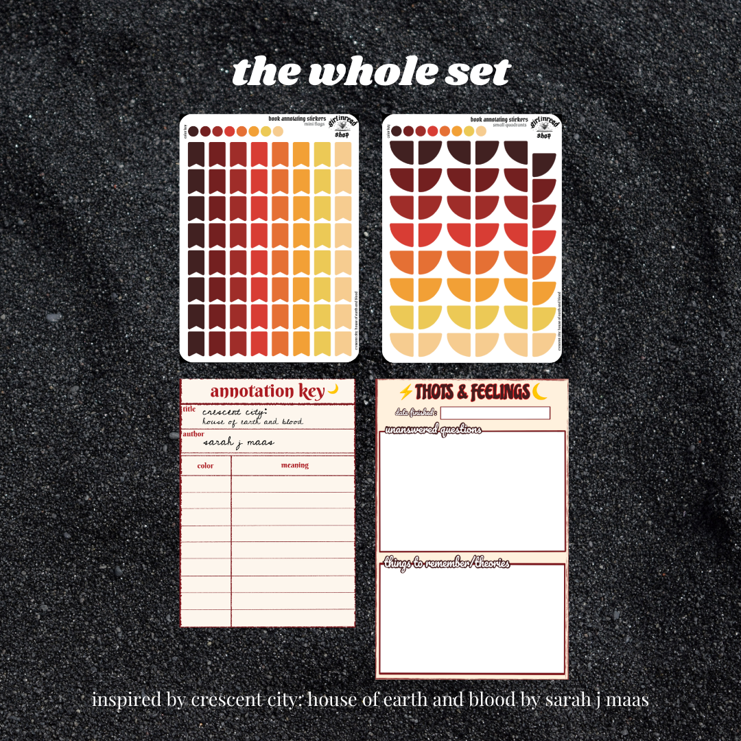 get everything you need to annotate the books in the crescent city series in the color palettes inspired by the covers of each book! can be placed in the book you're annotating, your planner, your journal, your reading log, etc.!
