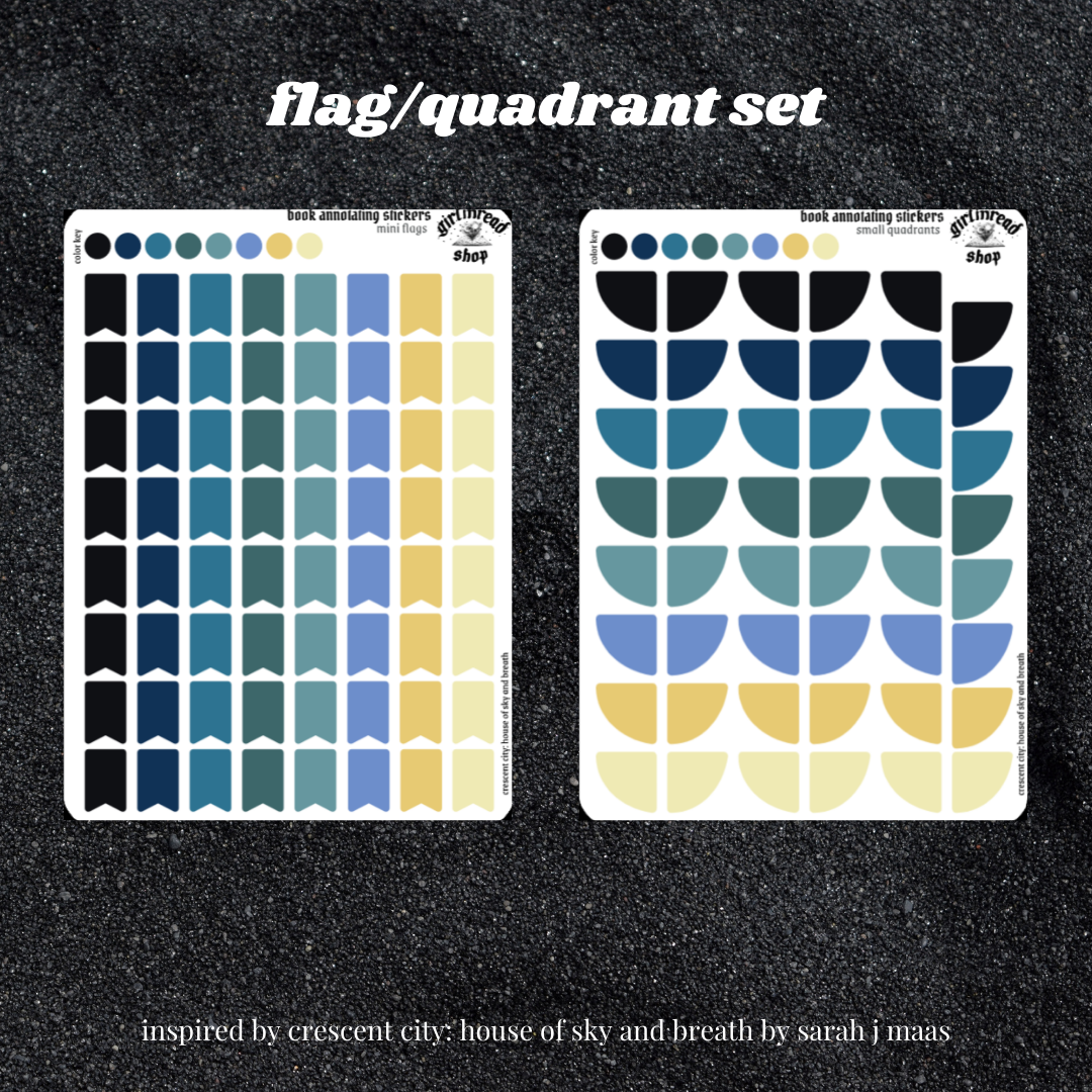 "the whole set" comes with all stickers listed (annotation key, review sticker, flags, quadrants).