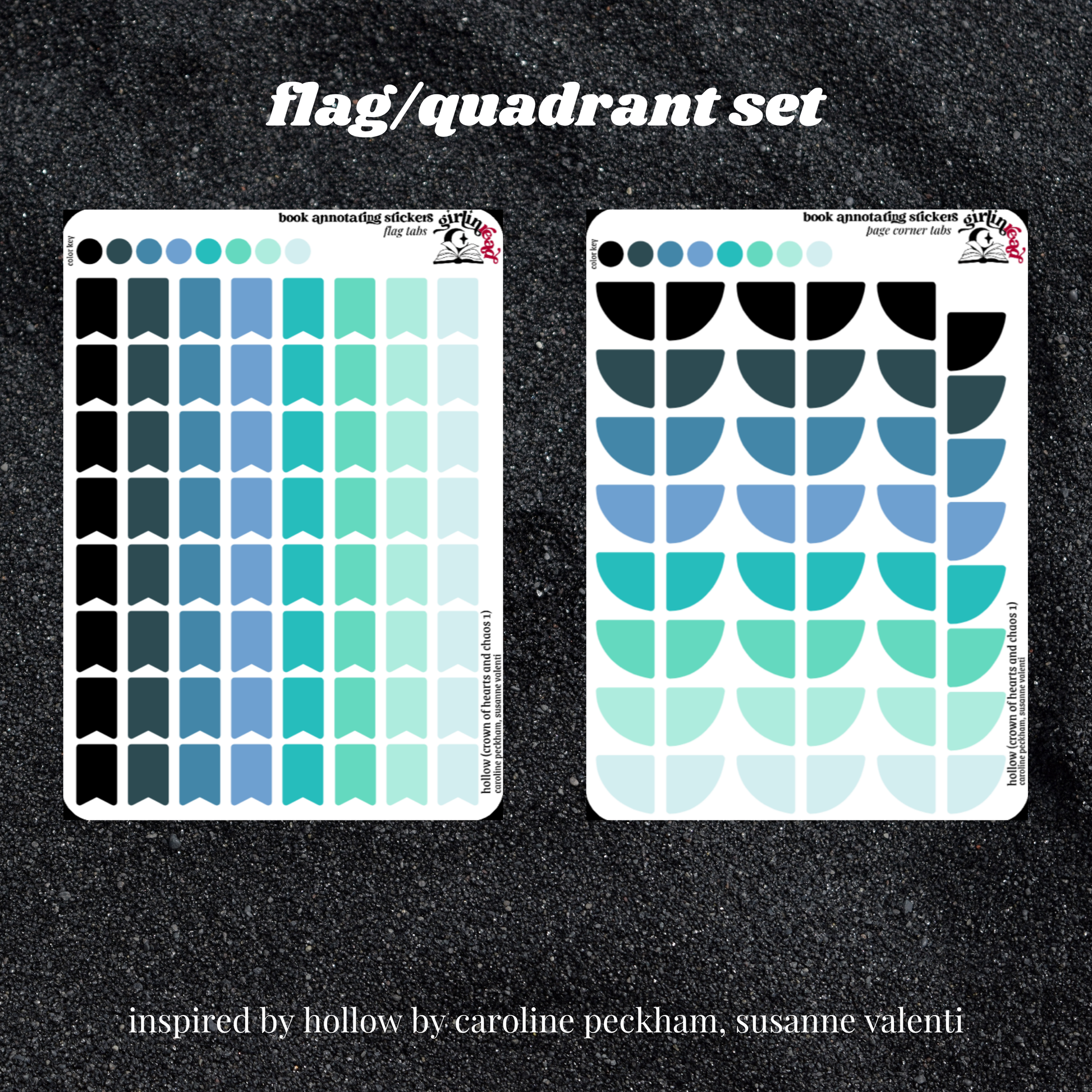 book annotating tabs in the color palette inspired by the book cover for the crown of hearts and chaos series (hollow)! can be placed in the book you're annotating, your planner, your journal, your reading log, etc.!