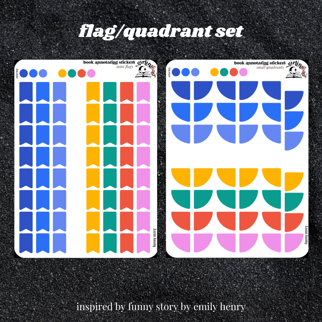 book annotating tabs in the color palette inspired by the book cover for funny story! can be placed in the book you're annotating, your planner, your journal, your reading log, etc.!