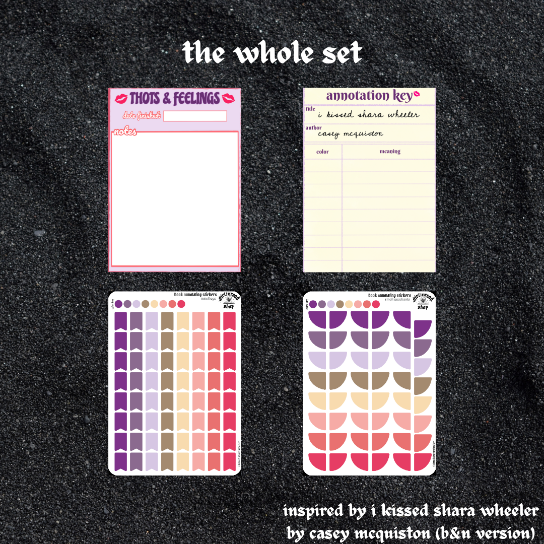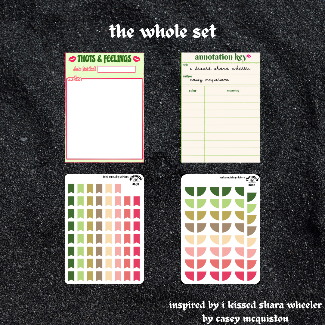 get everything you need to annotate the book i kissed shara wheeler in the color palette based on the book cover itself! can be placed in the book you're annotating, your planner, your journal, your reading log, etc.!