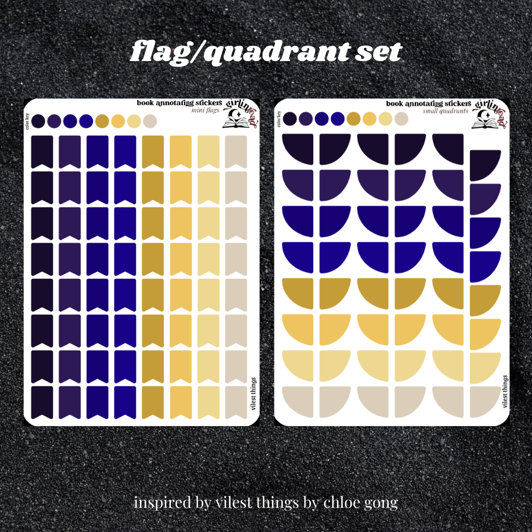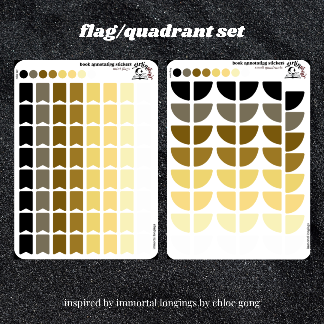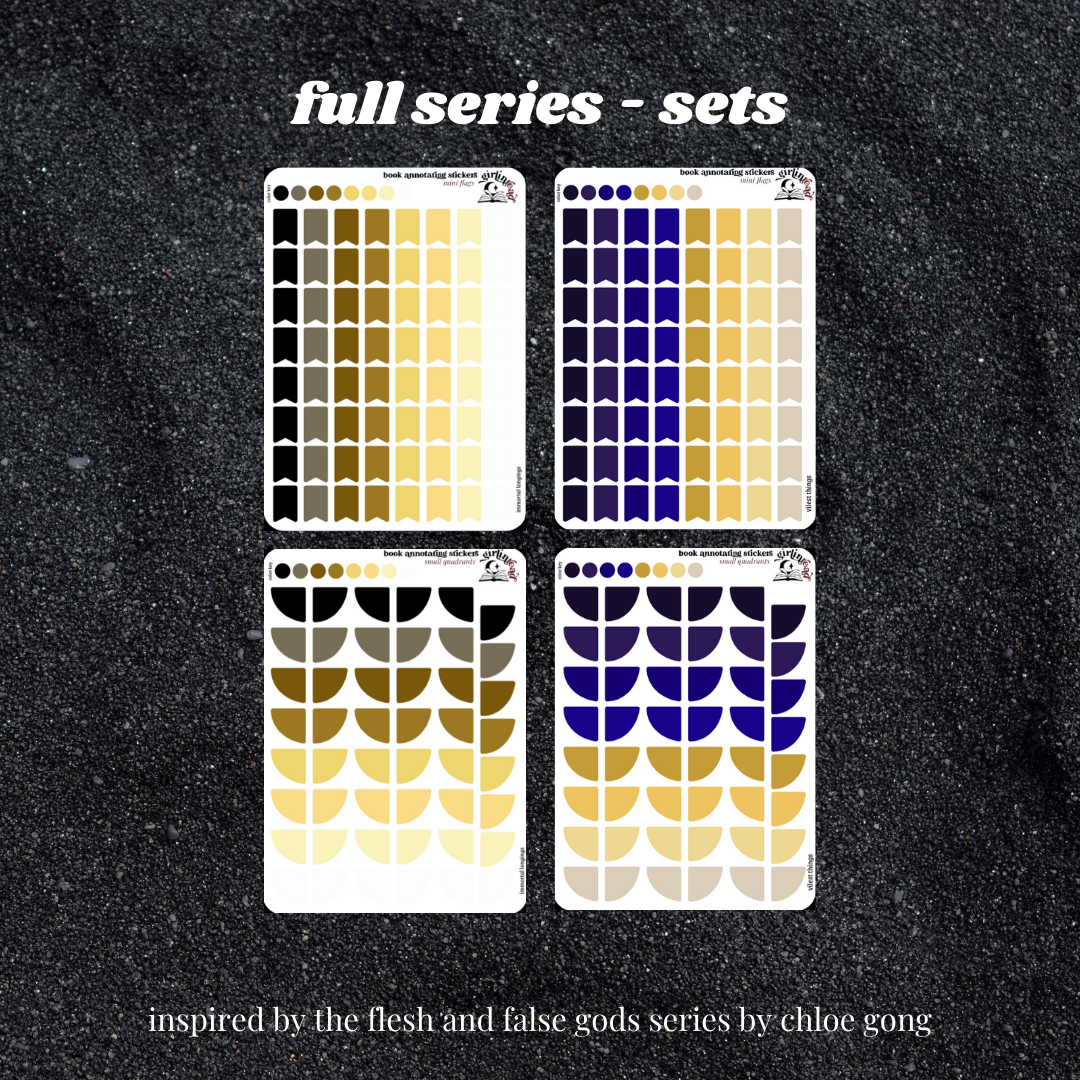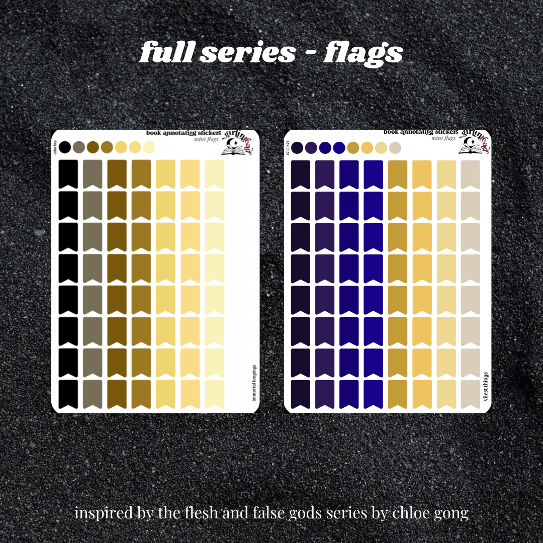 book annotating tabs in the color palette inspired by the book covers for the flesh and false gods series (immortal longings, vilest things)! can be placed in the book you're annotating, your planner, your journal, your reading log, etc.!