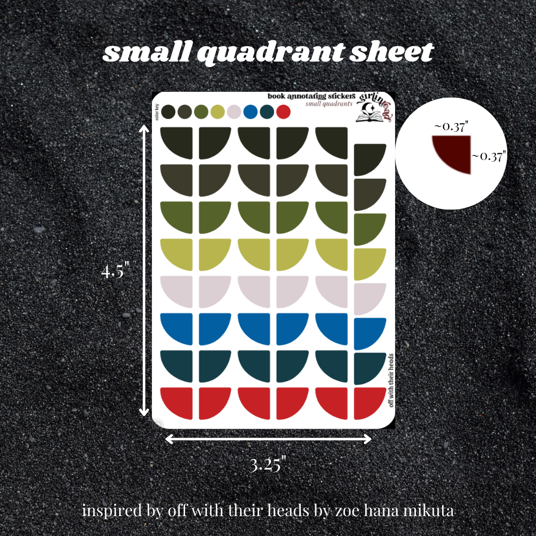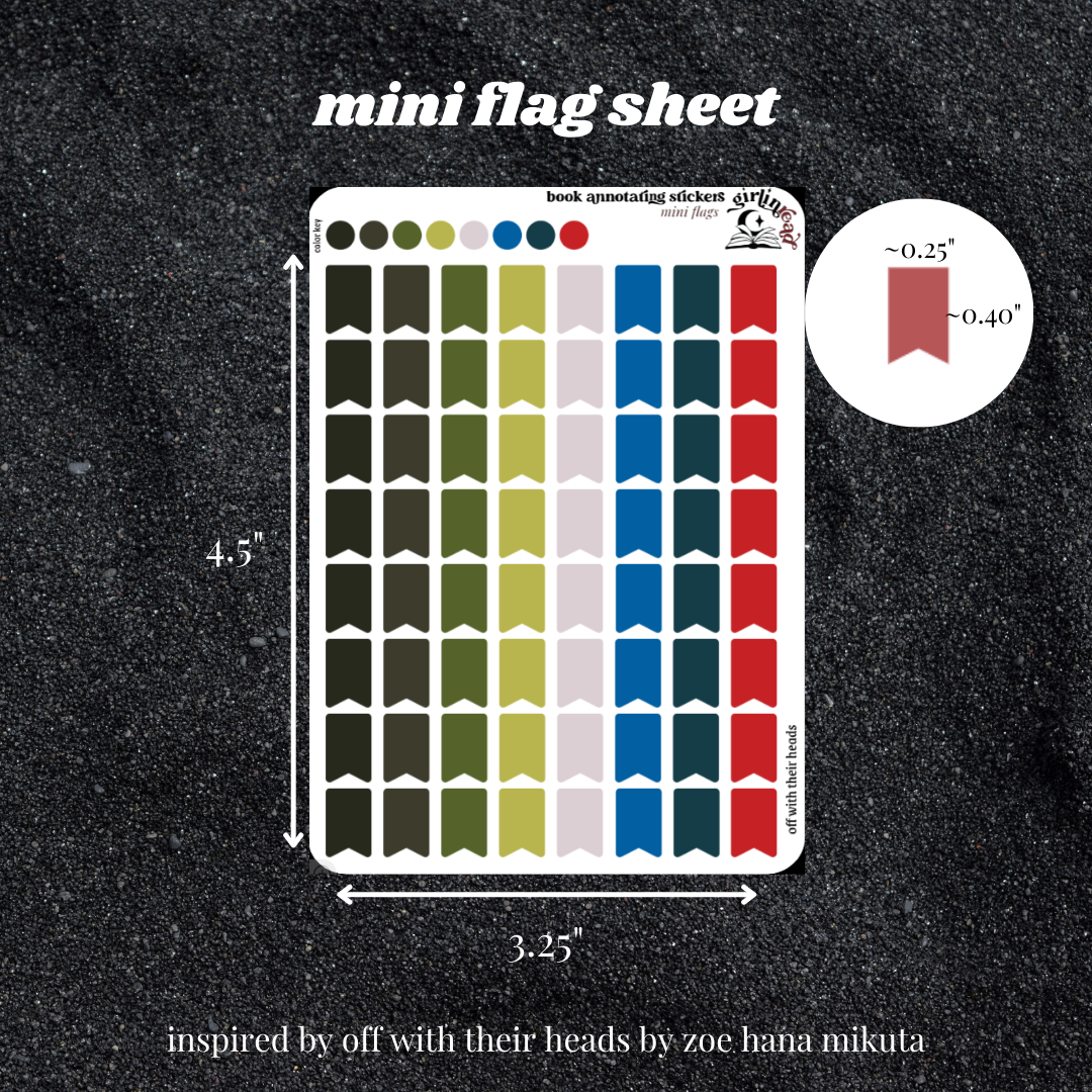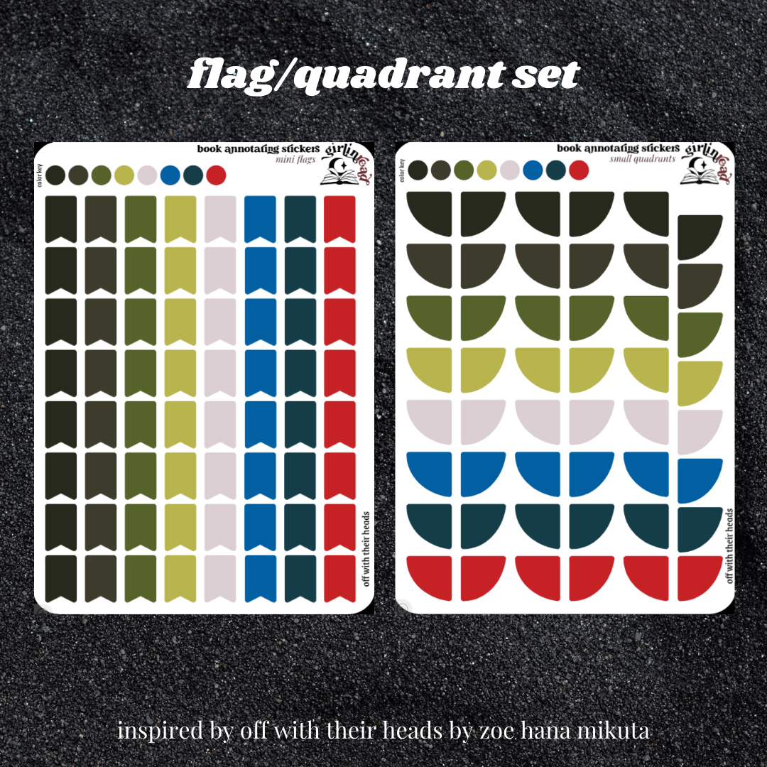 book annotating tabs in the color palette inspired by the book cover for off with their heads! can be placed in the book you're annotating, your planner, your journal, your reading log, etc.!