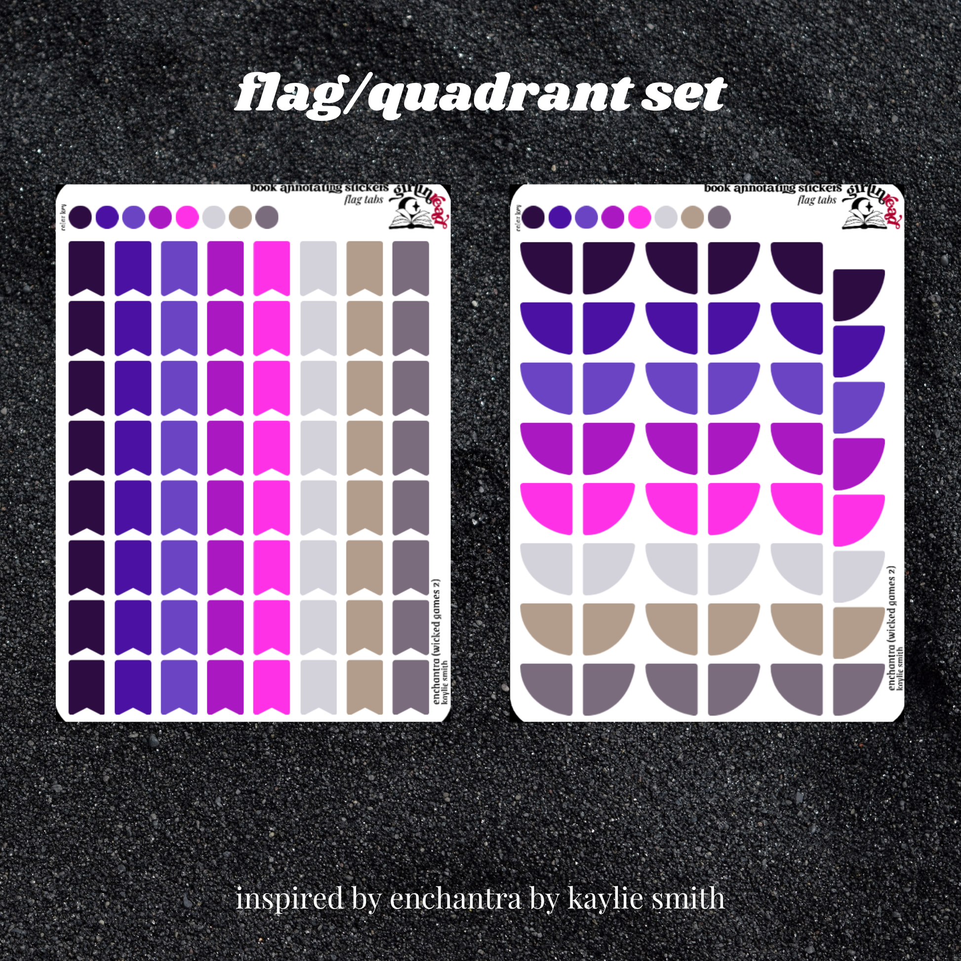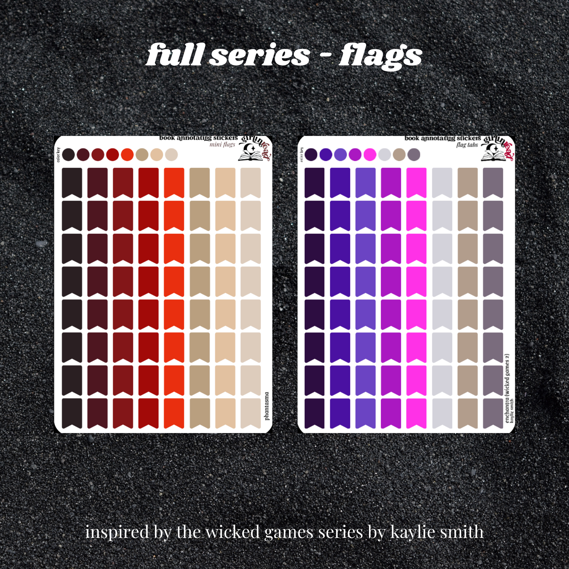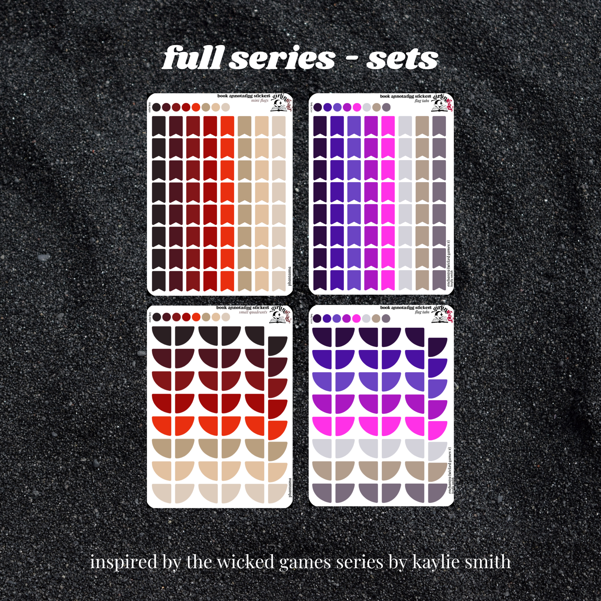 book annotating tabs in the color palette inspired by the book cover for the wicked games series (phantasma, enchantra)! can be placed in the book you're annotating, your planner, your journal, your reading log, etc.!