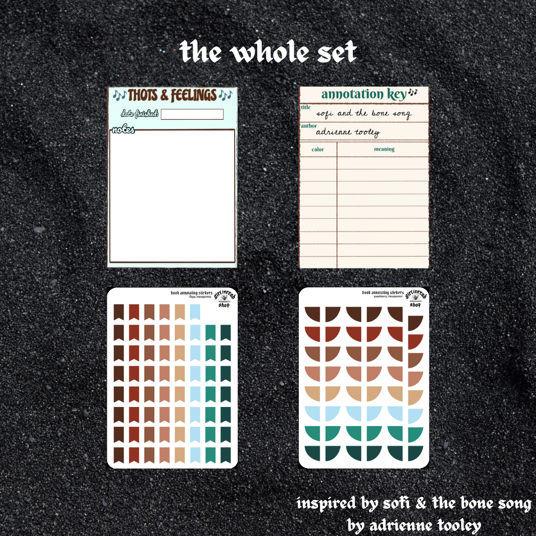 book annotating tabs in the color palette inspired by the book cover for sofi and the bone song! can be placed in the book you're annotating, your planner, your journal, your reading log, etc.!