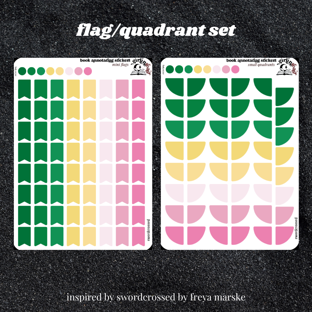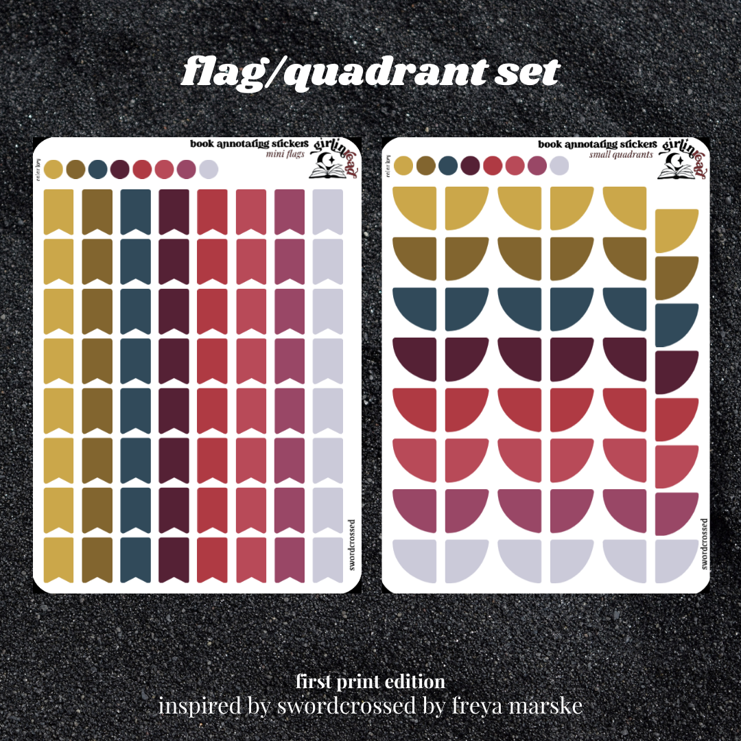 book annotating tabs in the color palette inspired by the book cover for swordcrossed! can be placed in the book you're annotating, your planner, your journal, your reading log, etc.!