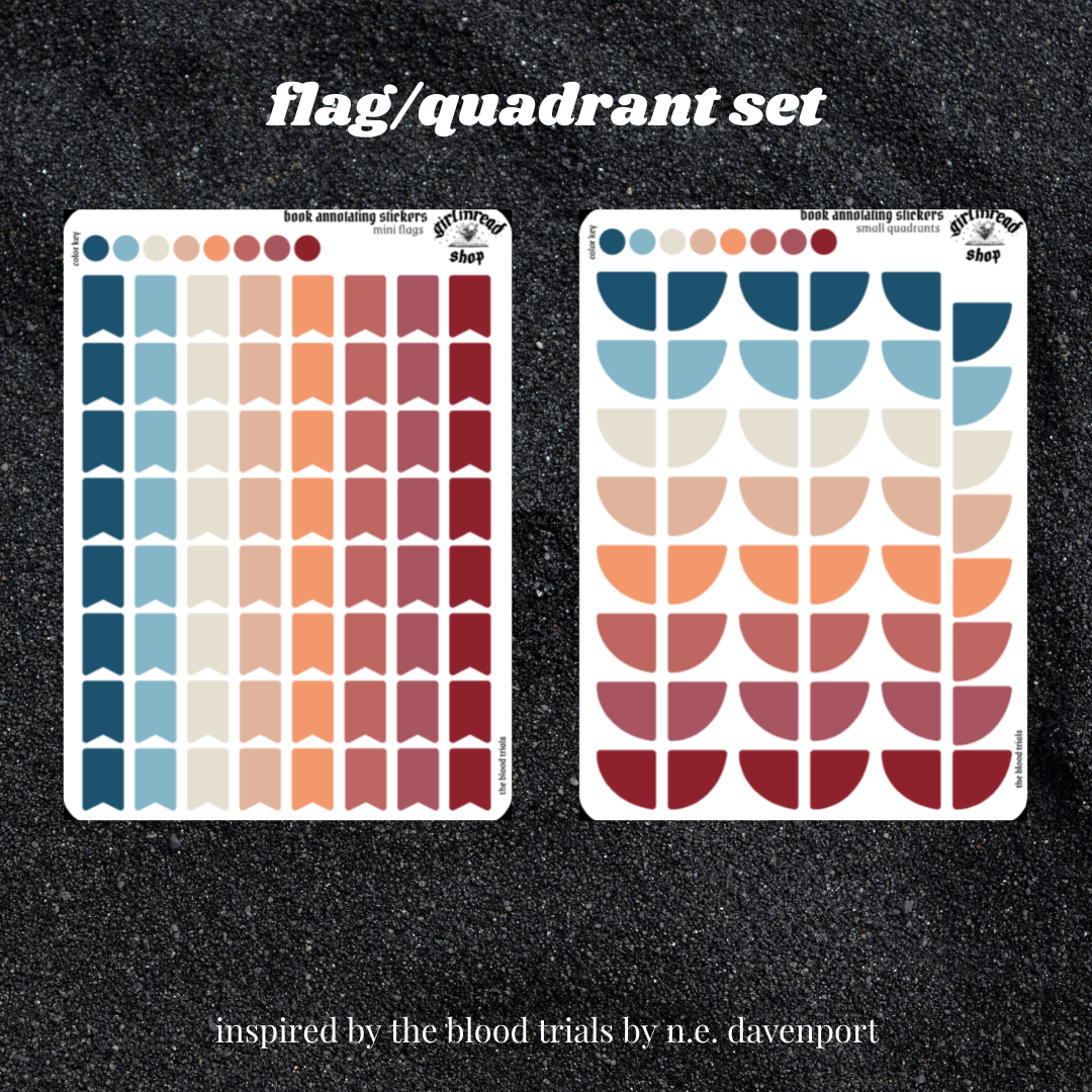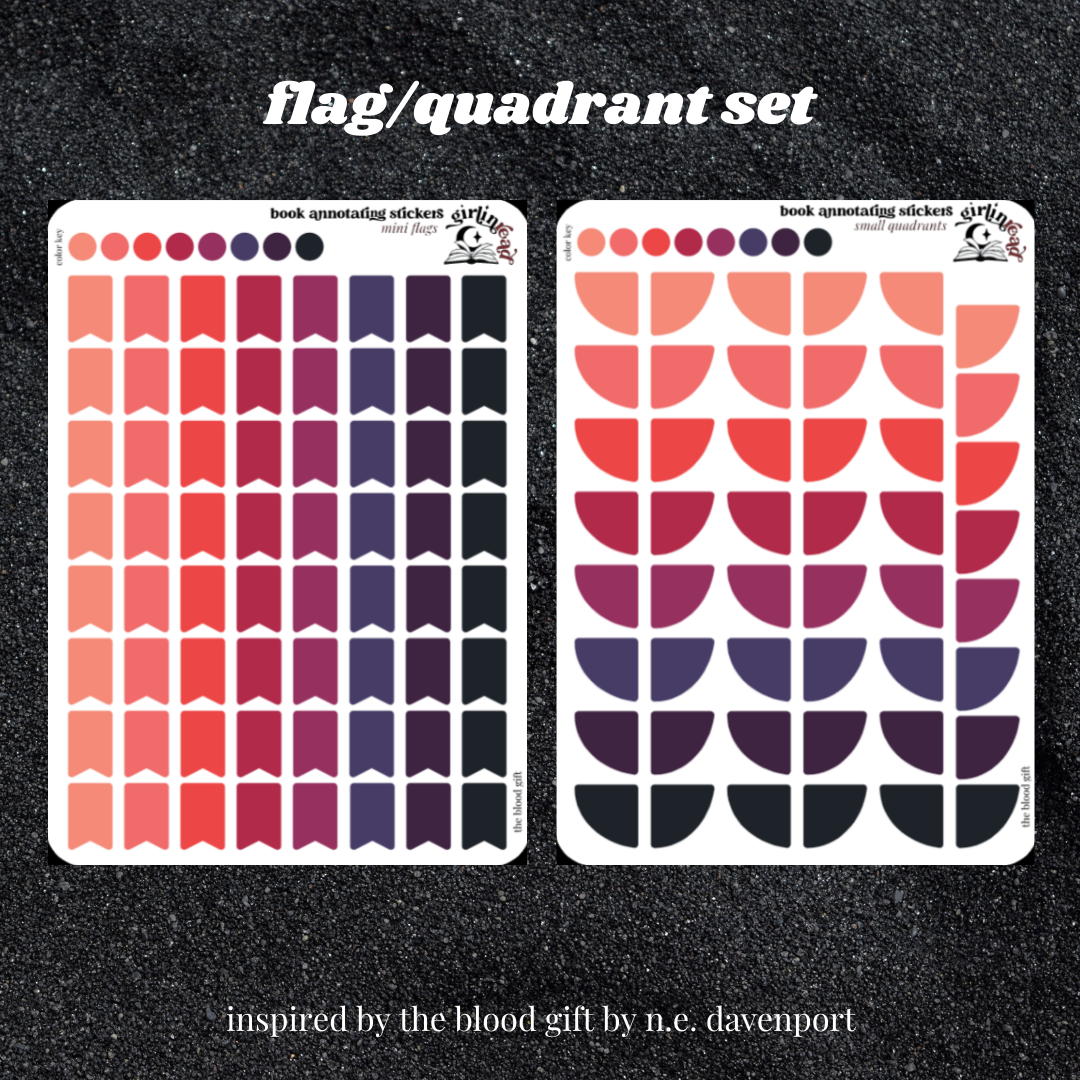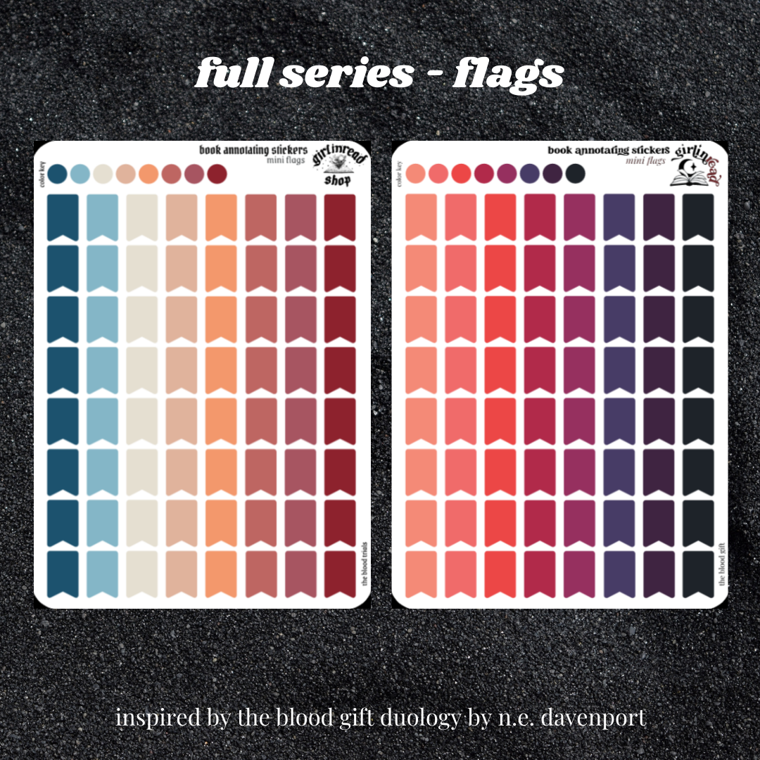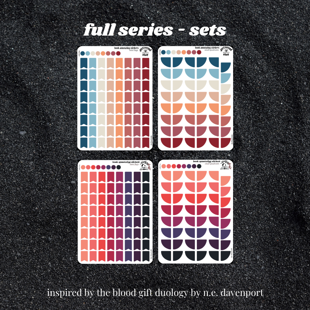 book annotating tabs in the color palette inspired by the book cover for the blood gift duology! can be placed in the book you're annotating, your planner, your journal, your reading log, etc.!