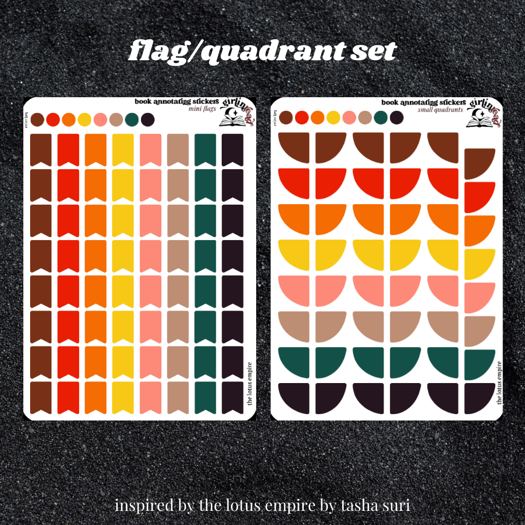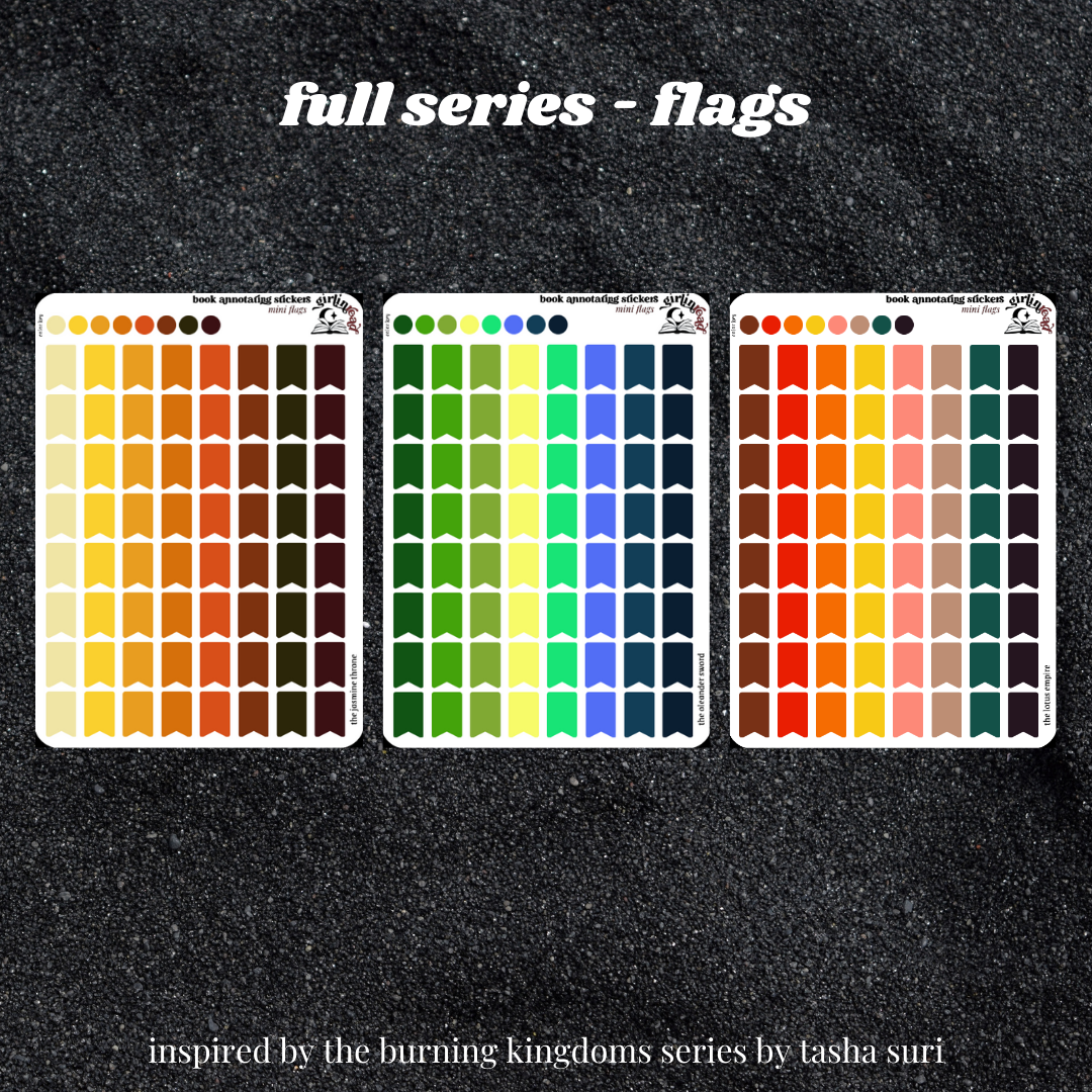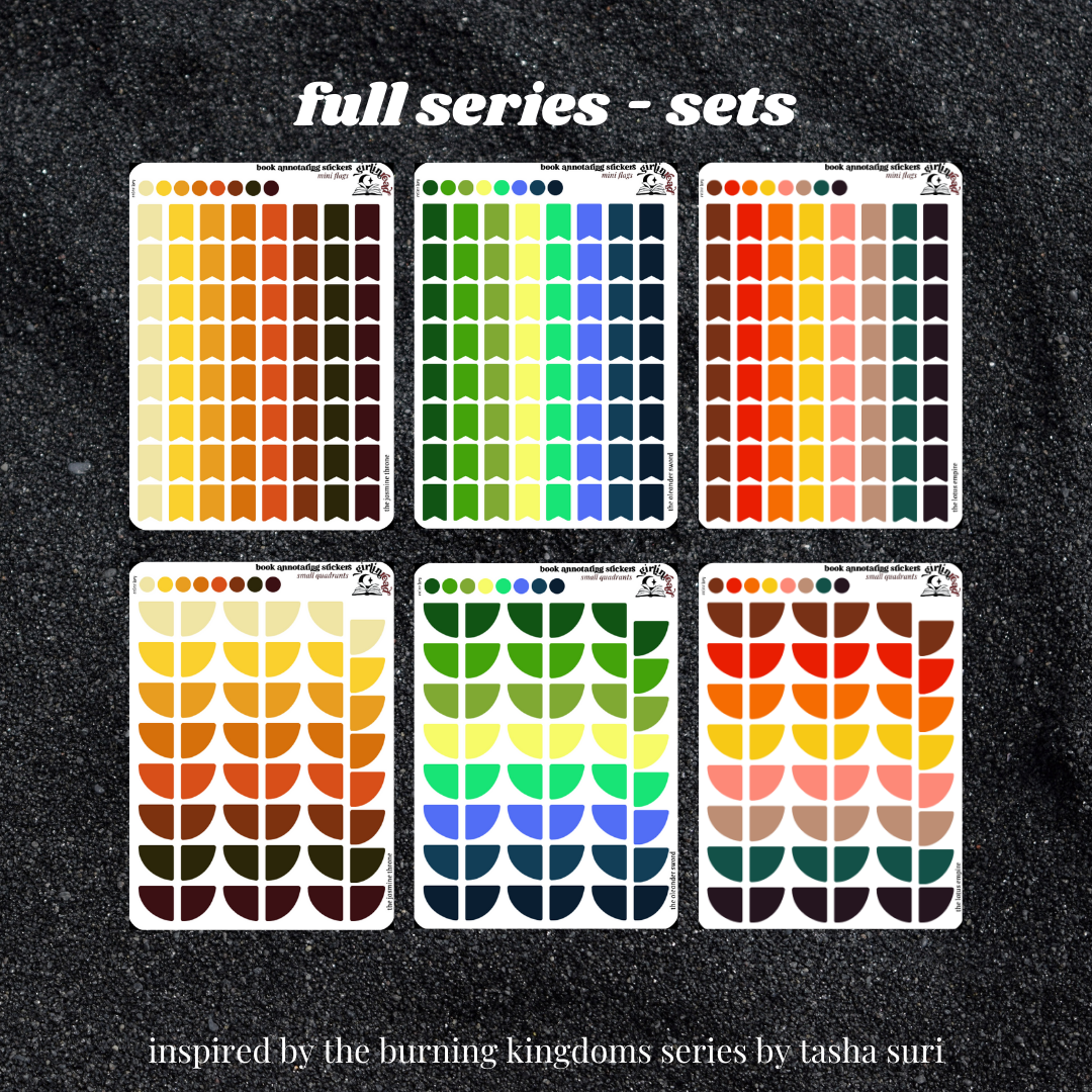 book annotating tabs in the color palettes inspired by the book covers for the burning kingdoms series! can be placed in the book you're annotating, your planner, your journal, your reading log, etc.!