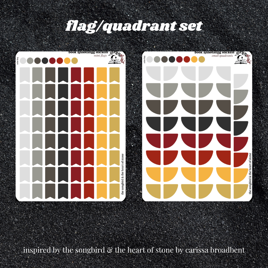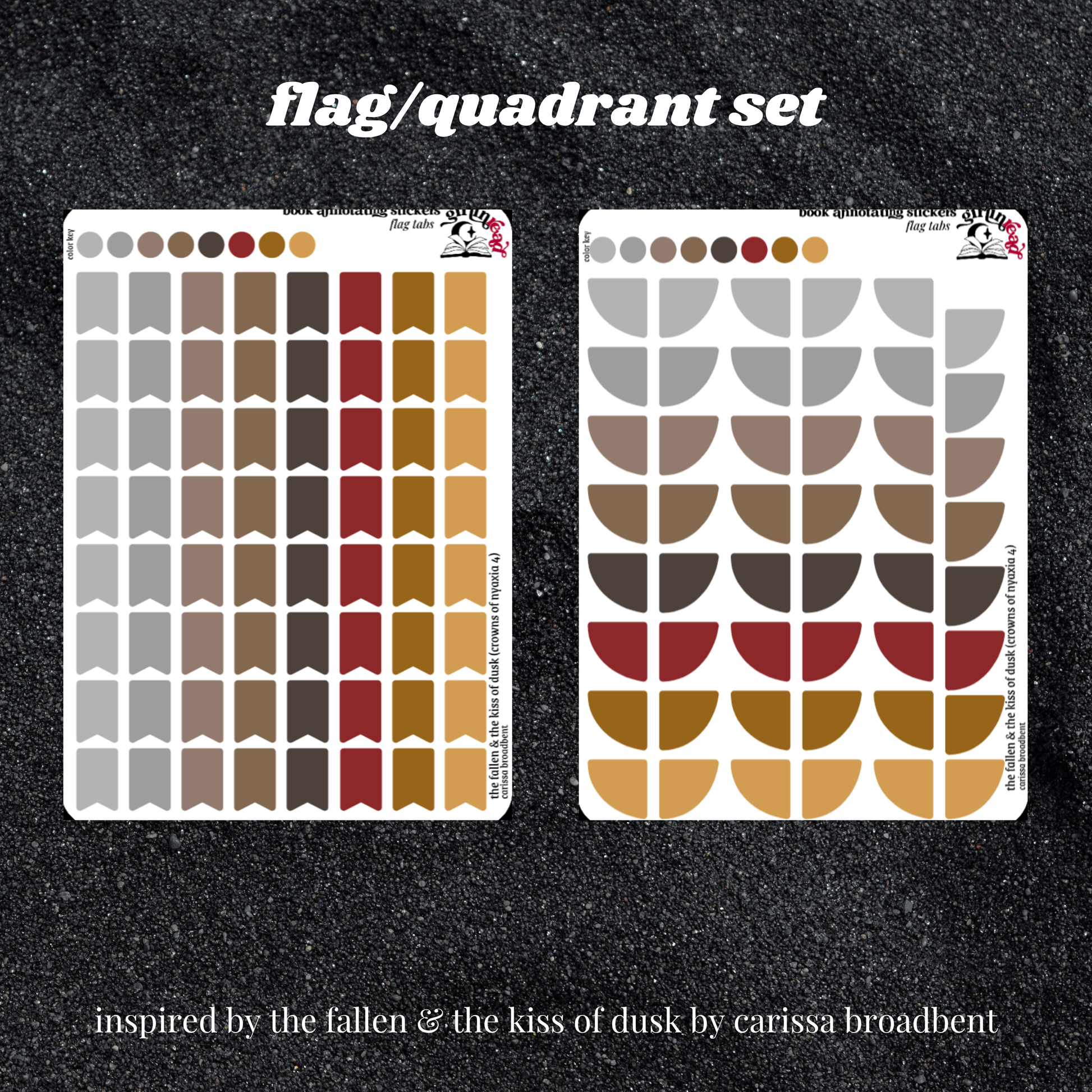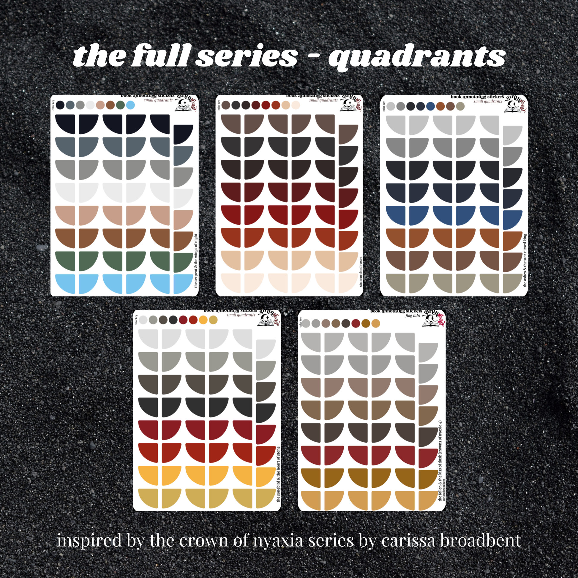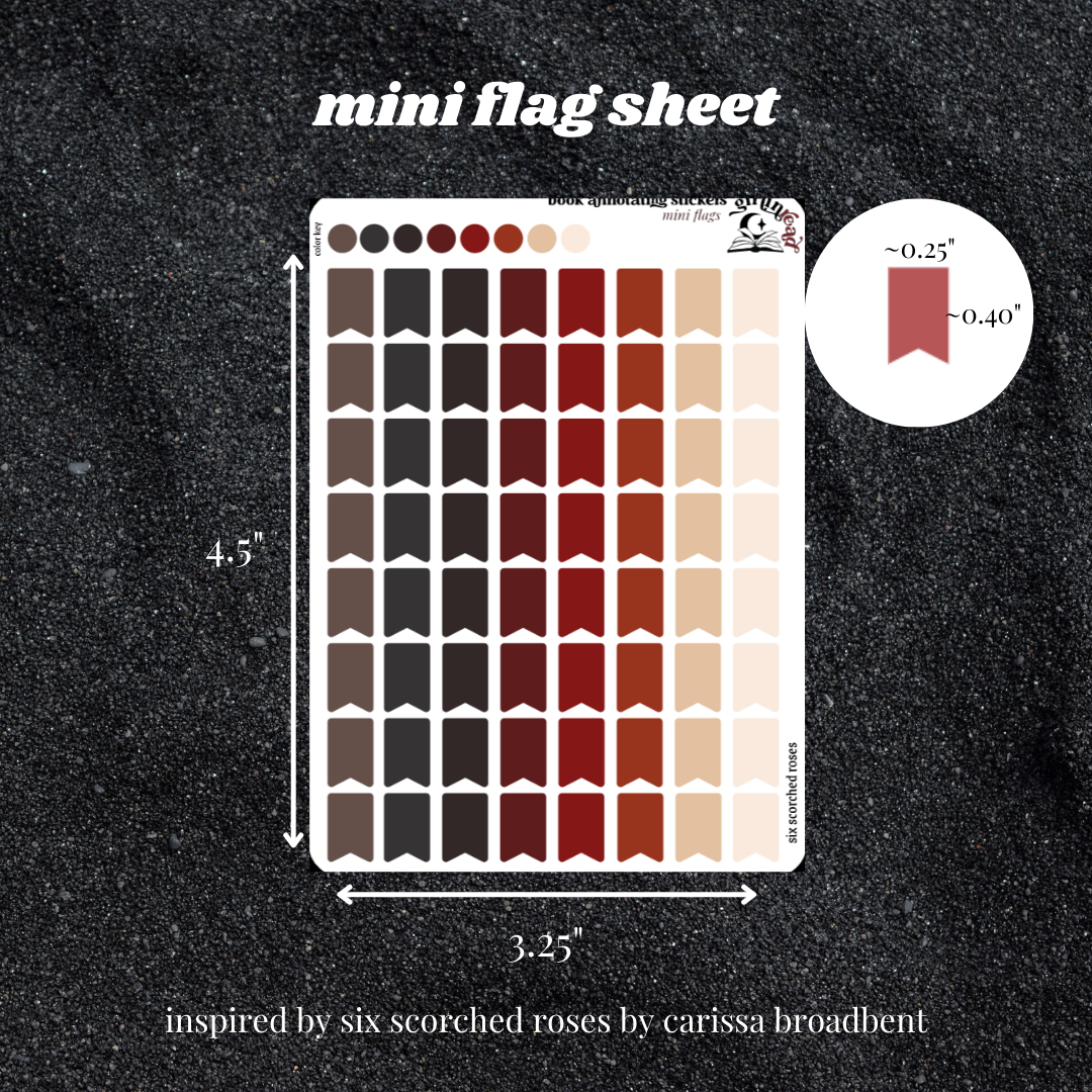 get everything you need to annotate the books in the crowns of nyaxia series (the serpent & the wings of night, six scorched roses, the ashes & the star-cursed king, the songbird & the heart of stone, the fallen & the kiss of dusk) in the color palettes inspired by each book cover! can be placed in the book you're annotating, your planner, your journal, your reading log, etc.!