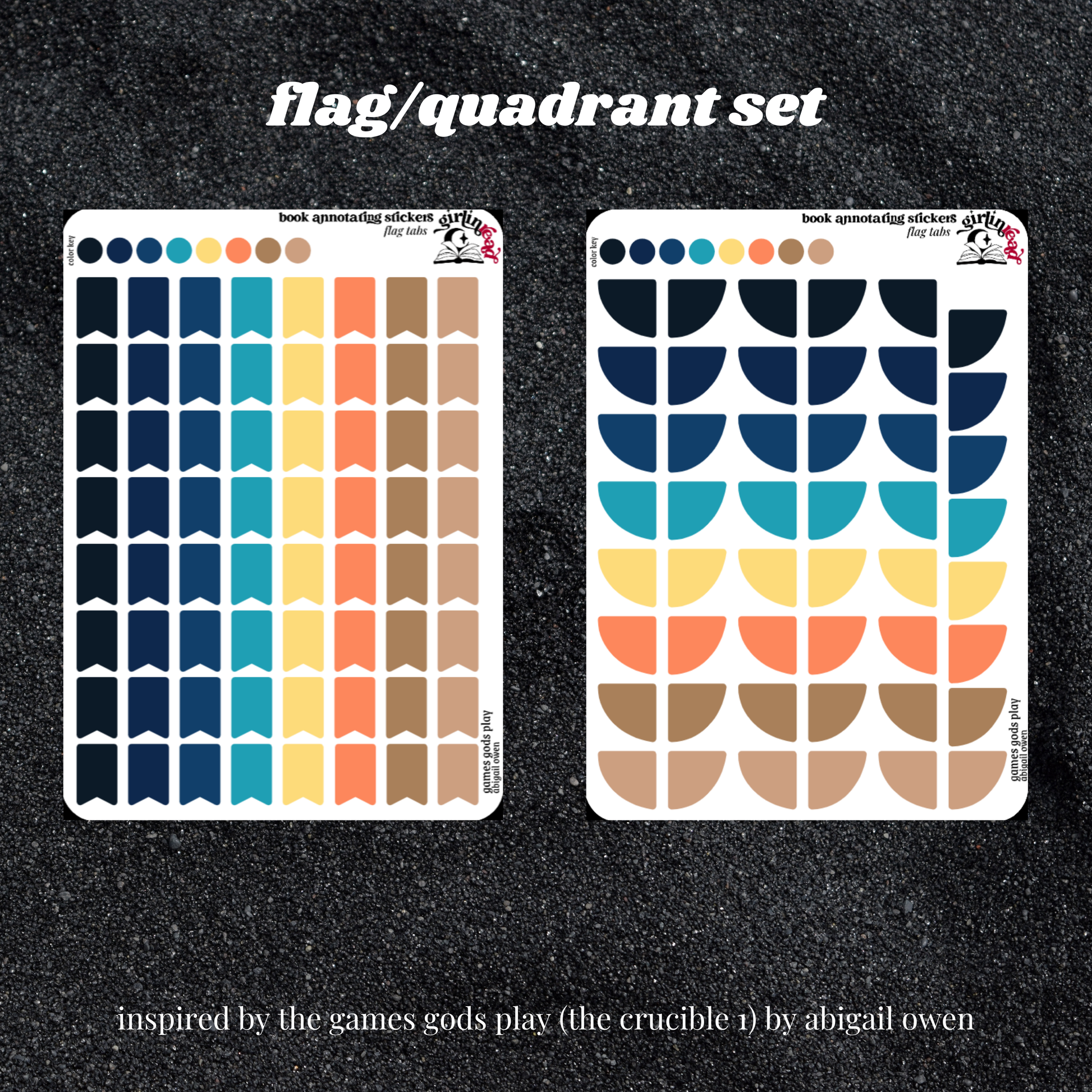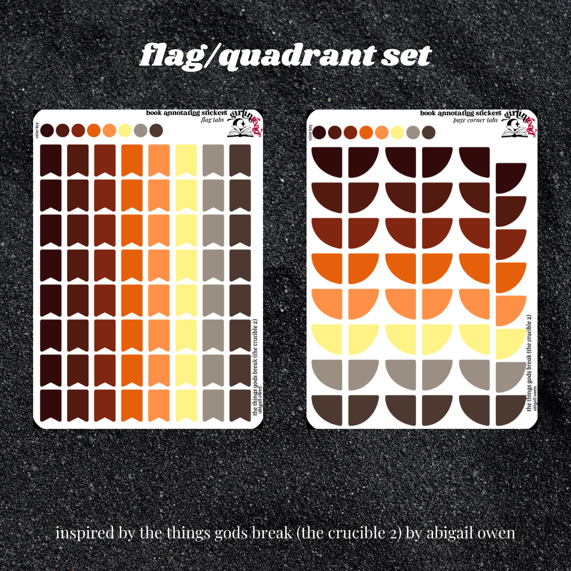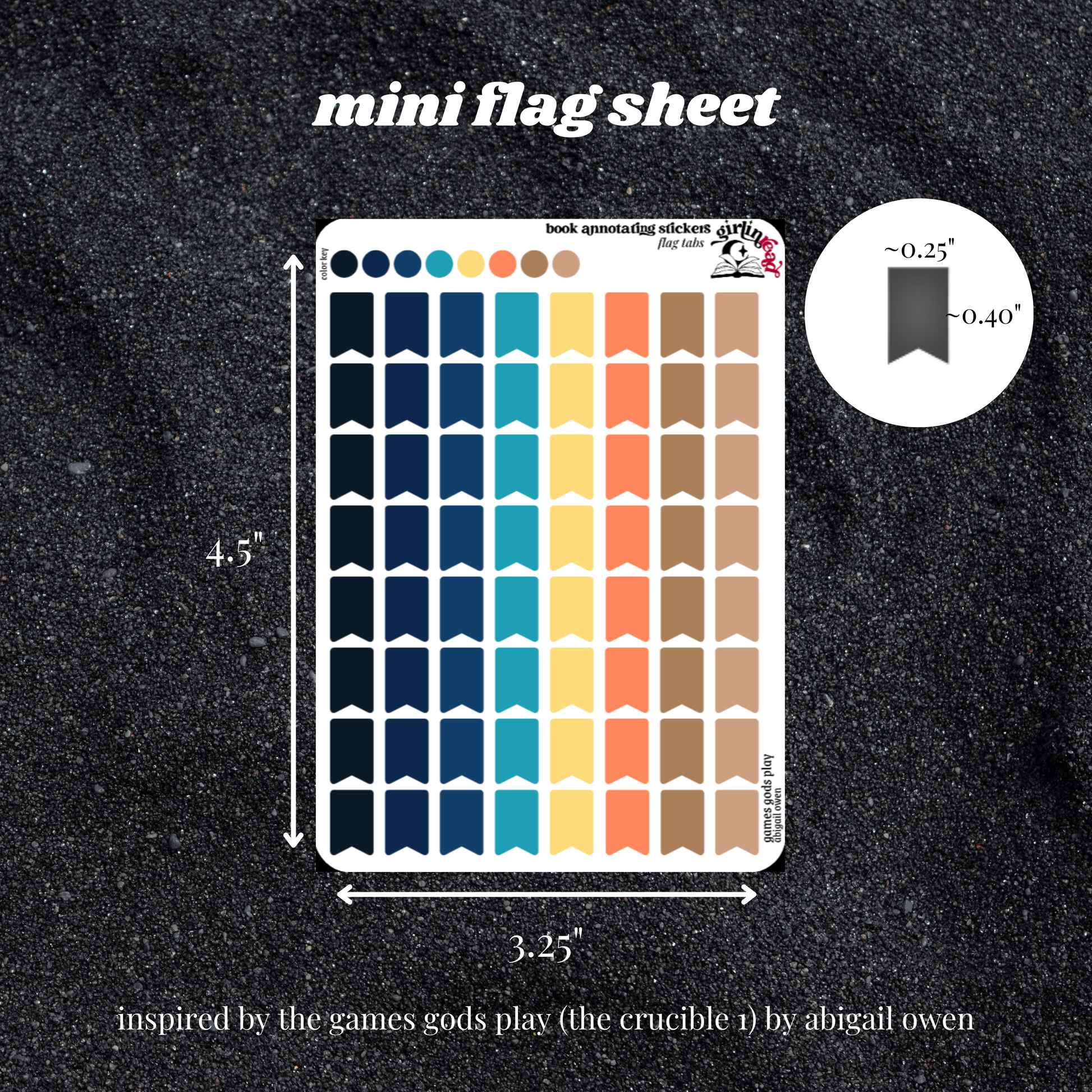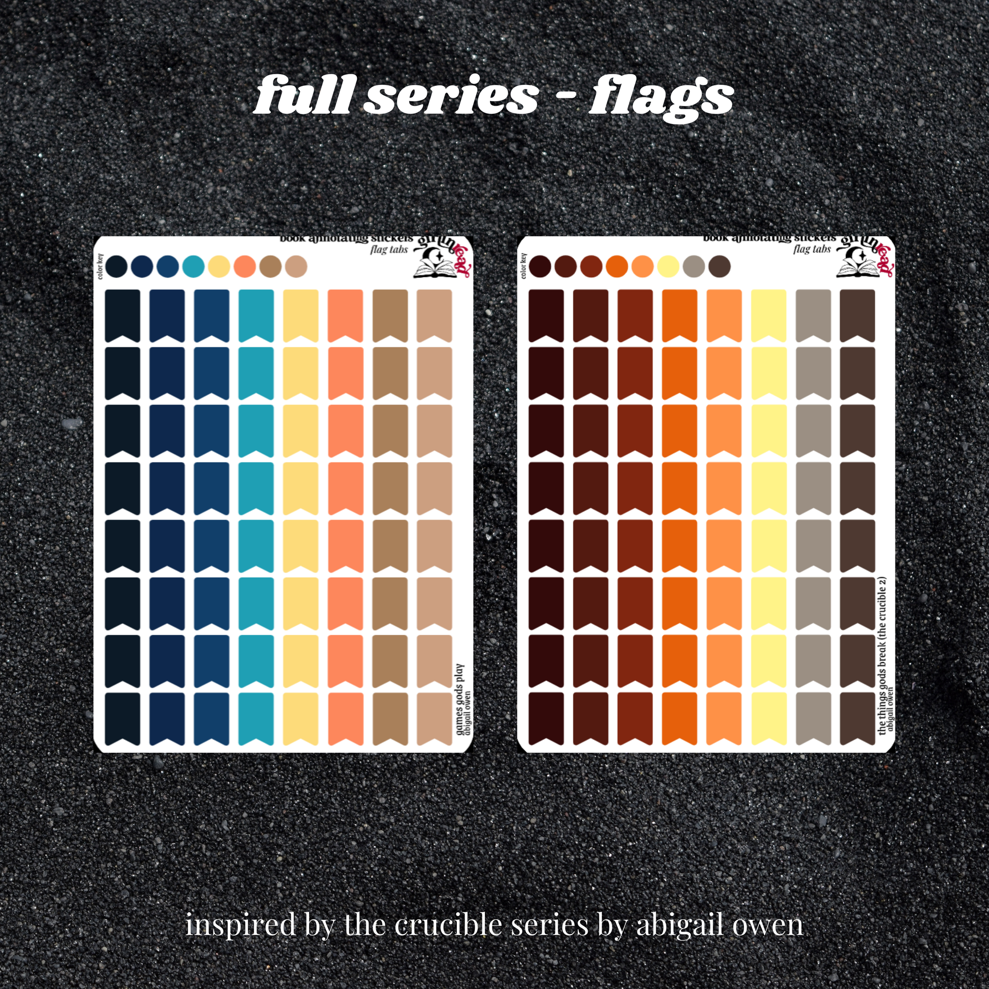 book annotating tabs in the color palette inspired by the book cover for the crucible series (games gods play, the things gods break)! can be placed in the book you're annotating, your planner, your journal, your reading log, etc.!