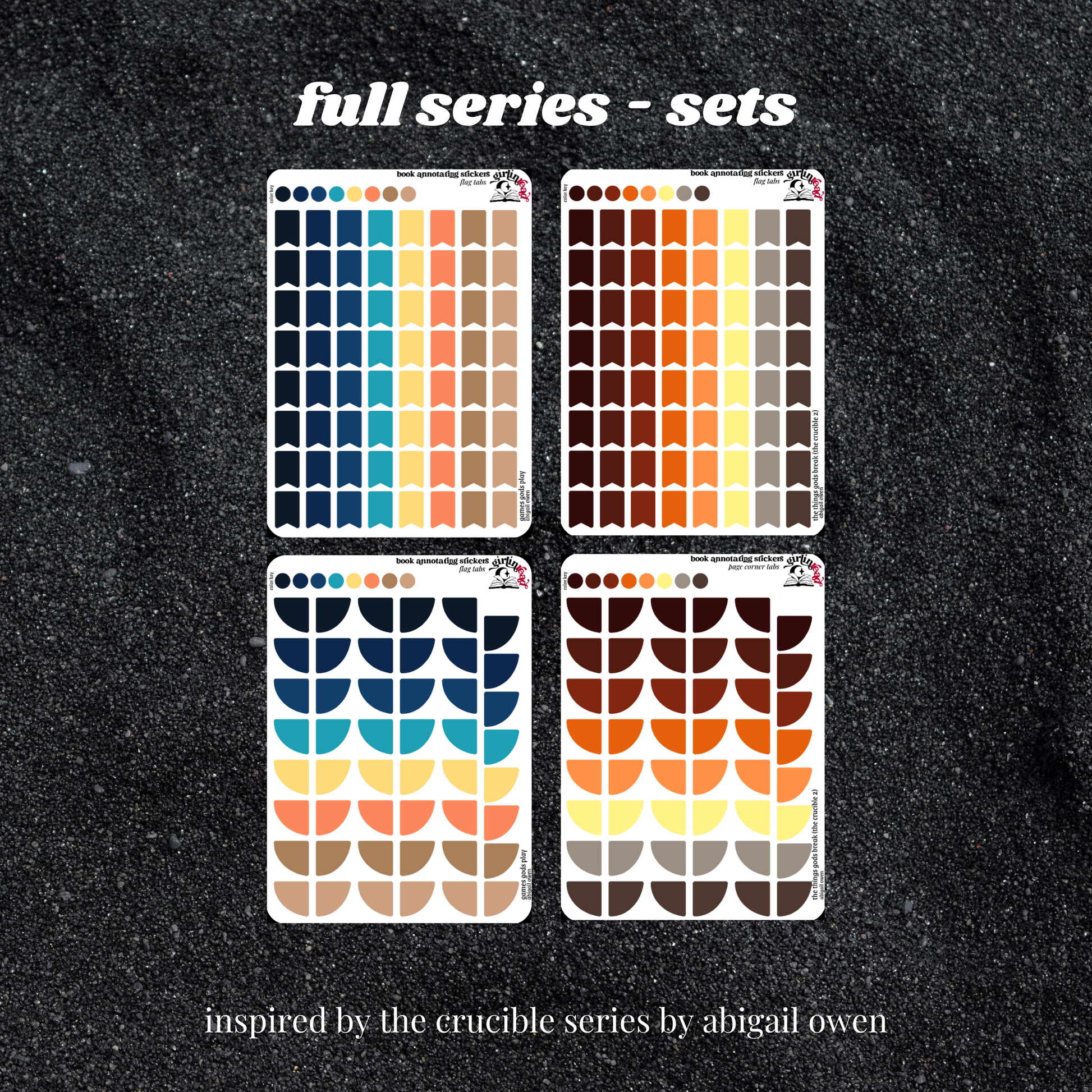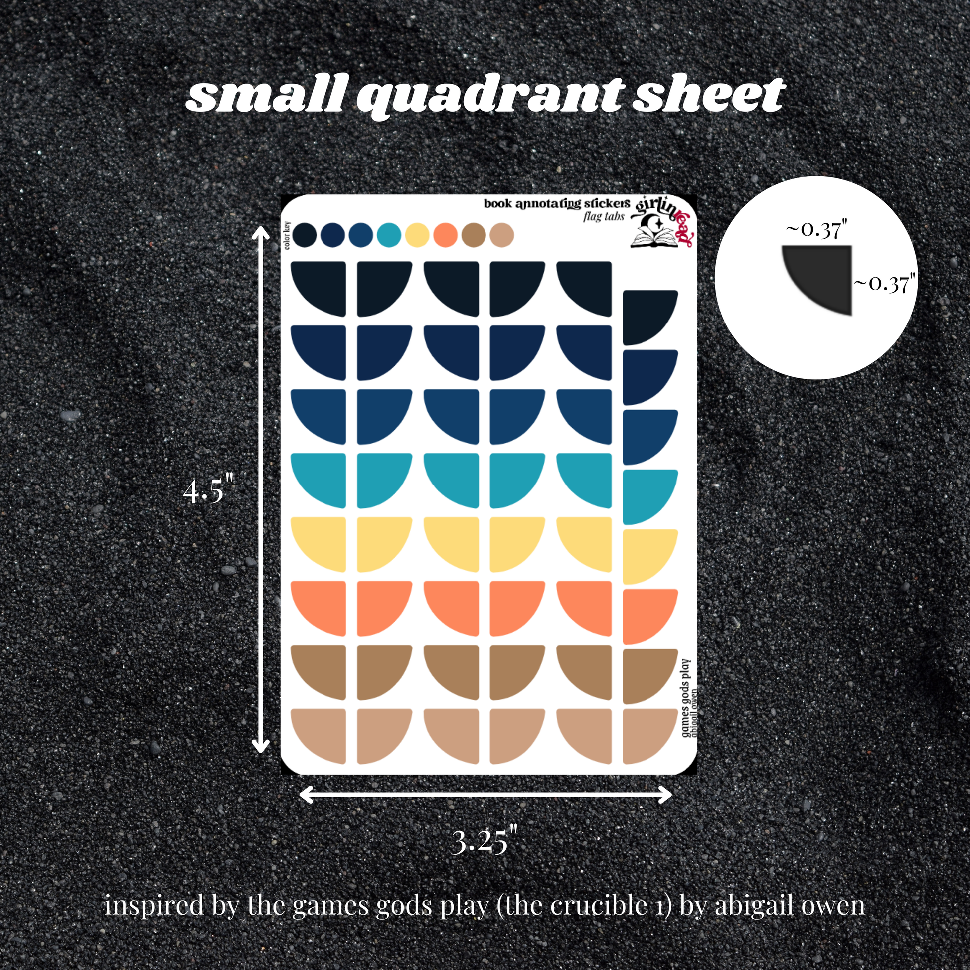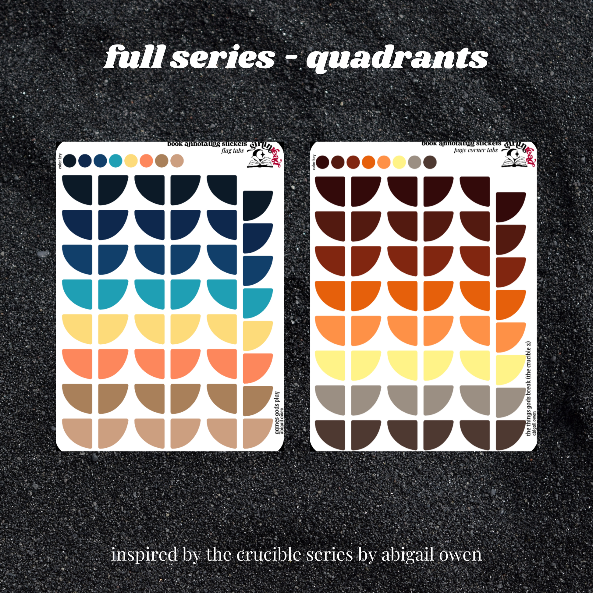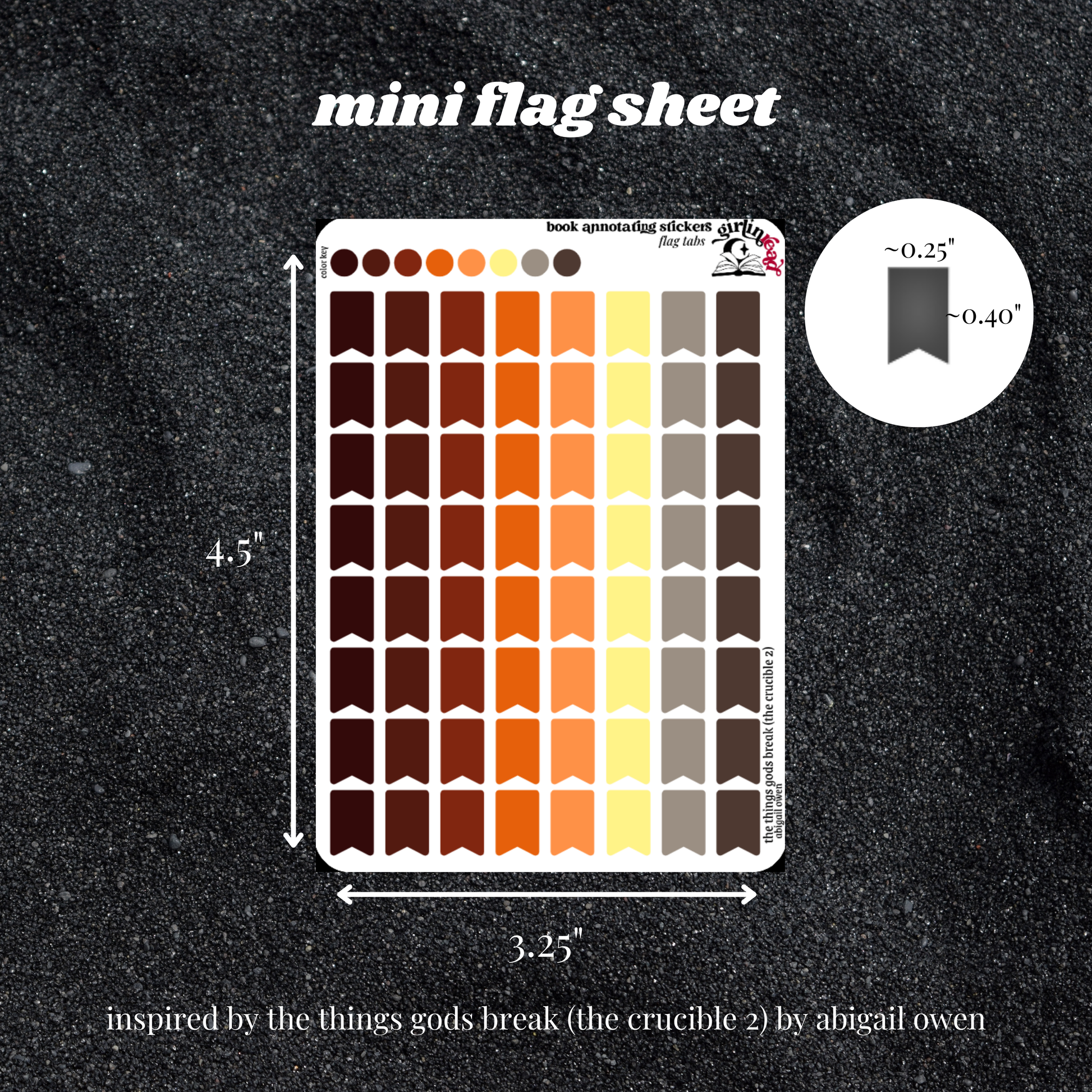 book annotating tabs in the color palette inspired by the book cover for the crucible series (games gods play, the things gods break)! can be placed in the book you're annotating, your planner, your journal, your reading log, etc.!