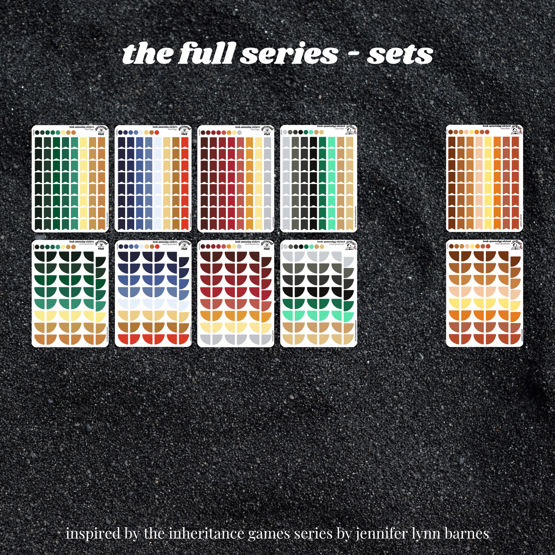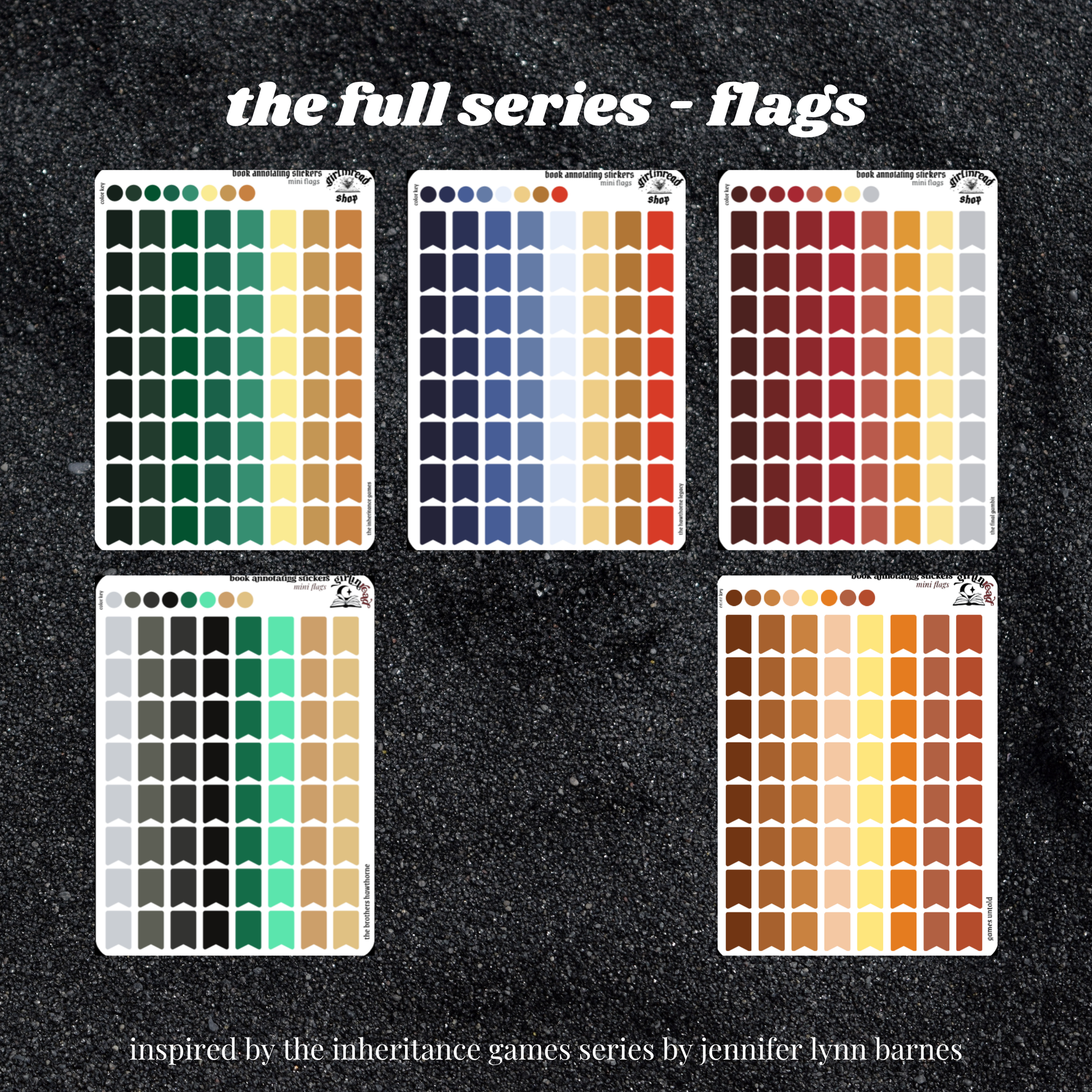 book annotating tabs in the color palette inspired by the book covers for the inheritance games series! can be placed in the book you're annotating, your planner, your journal, your reading log, etc.!