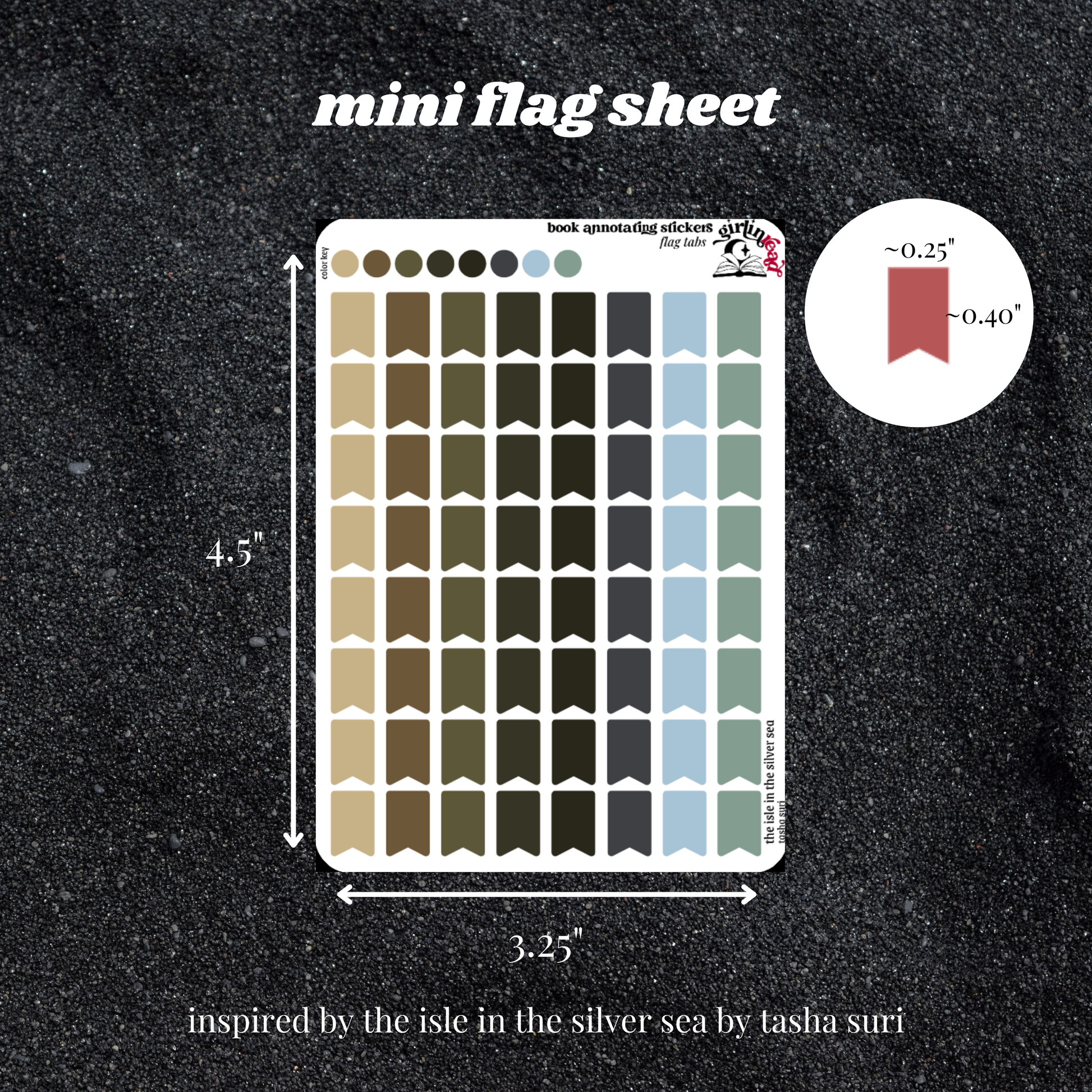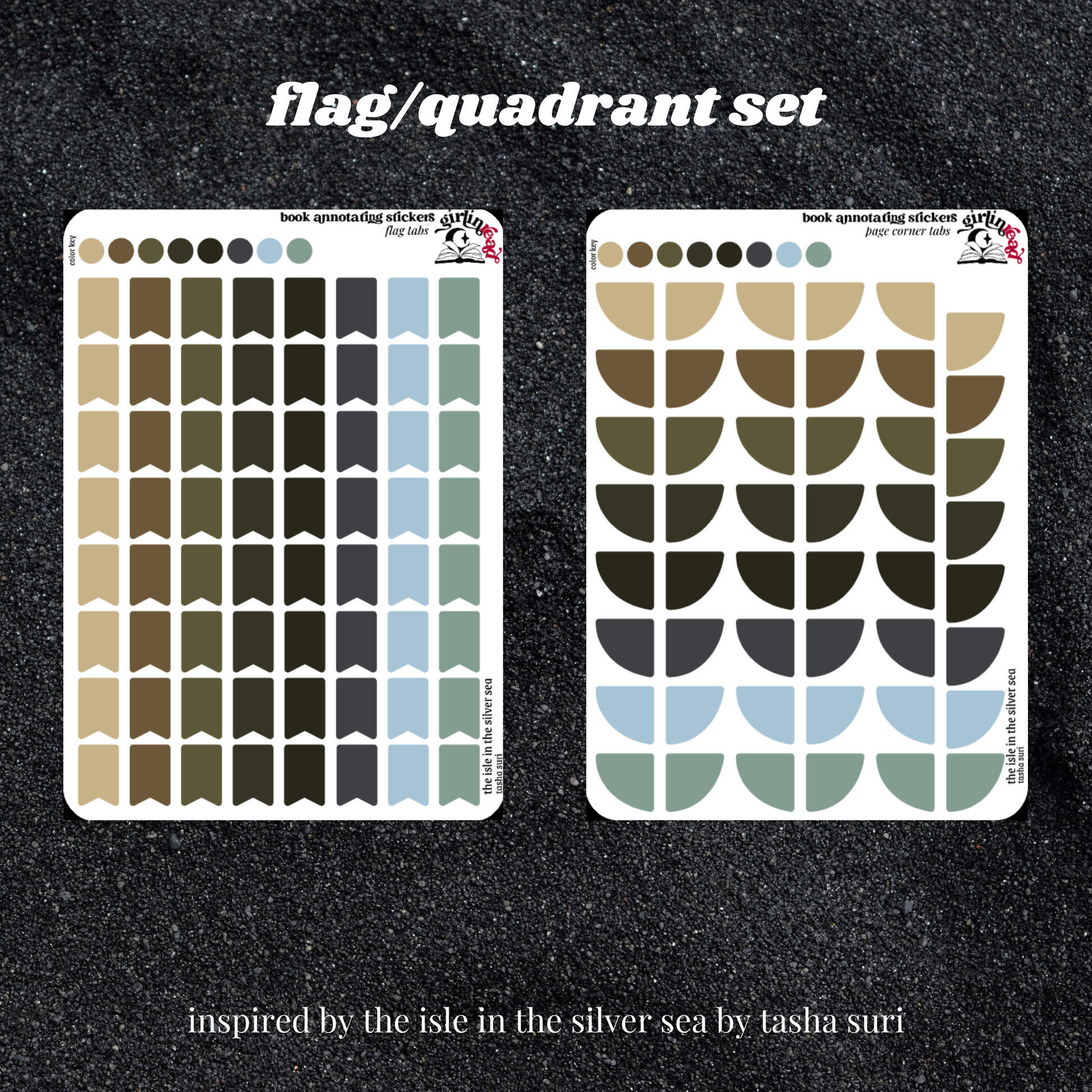 book annotating tabs in the color palettes inspired by the book covers for the isle in the silver sea! can be placed in the book you're annotating, your planner, your journal, your reading log, etc.!