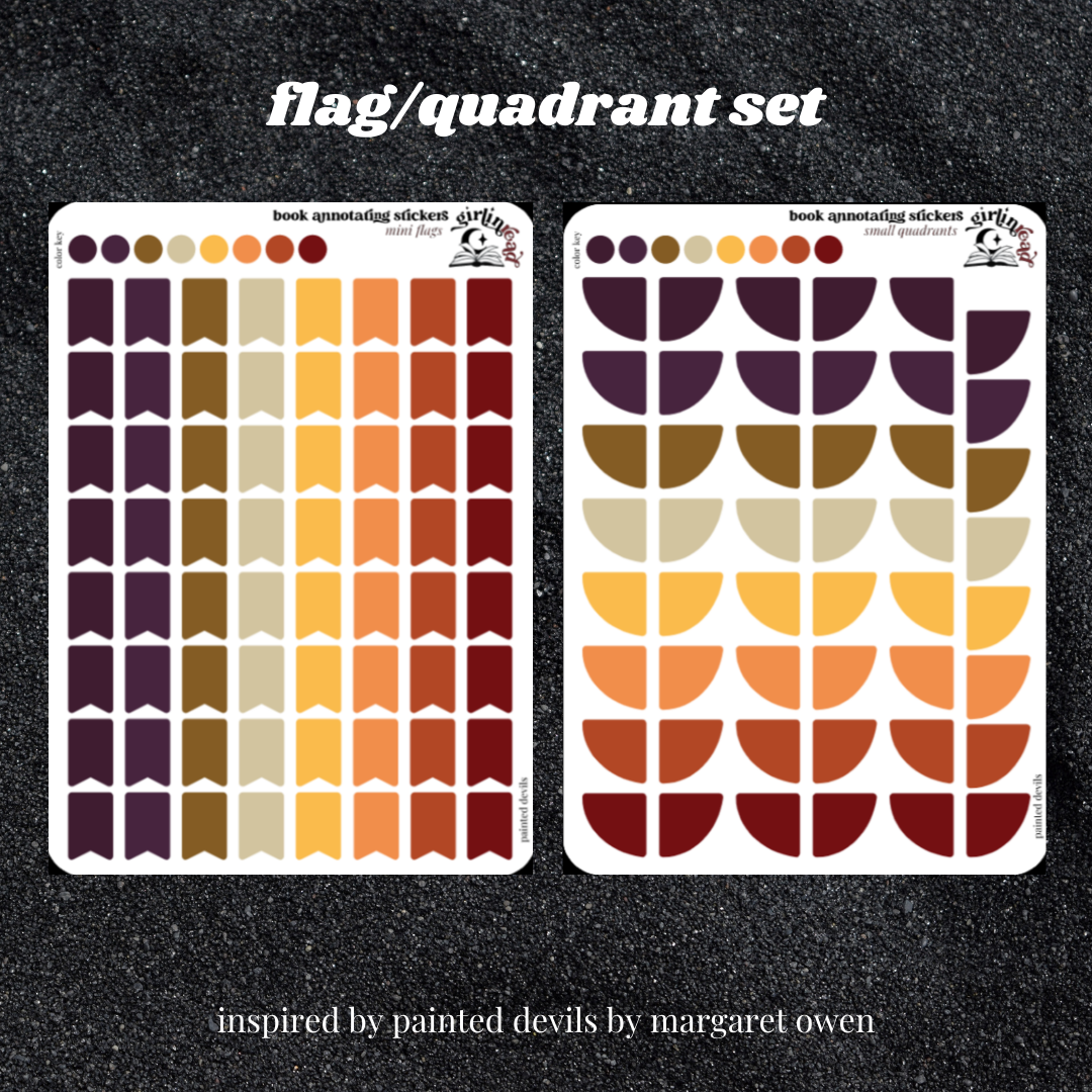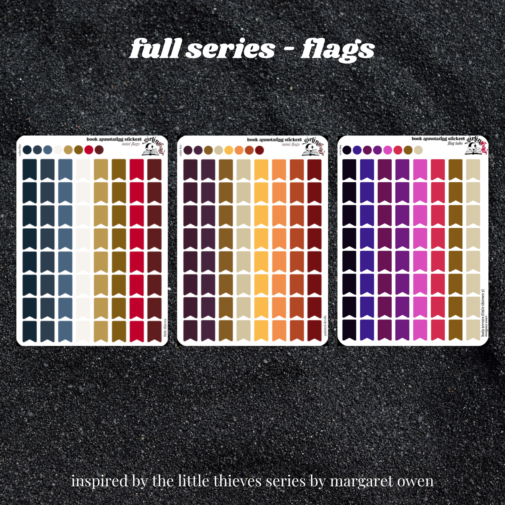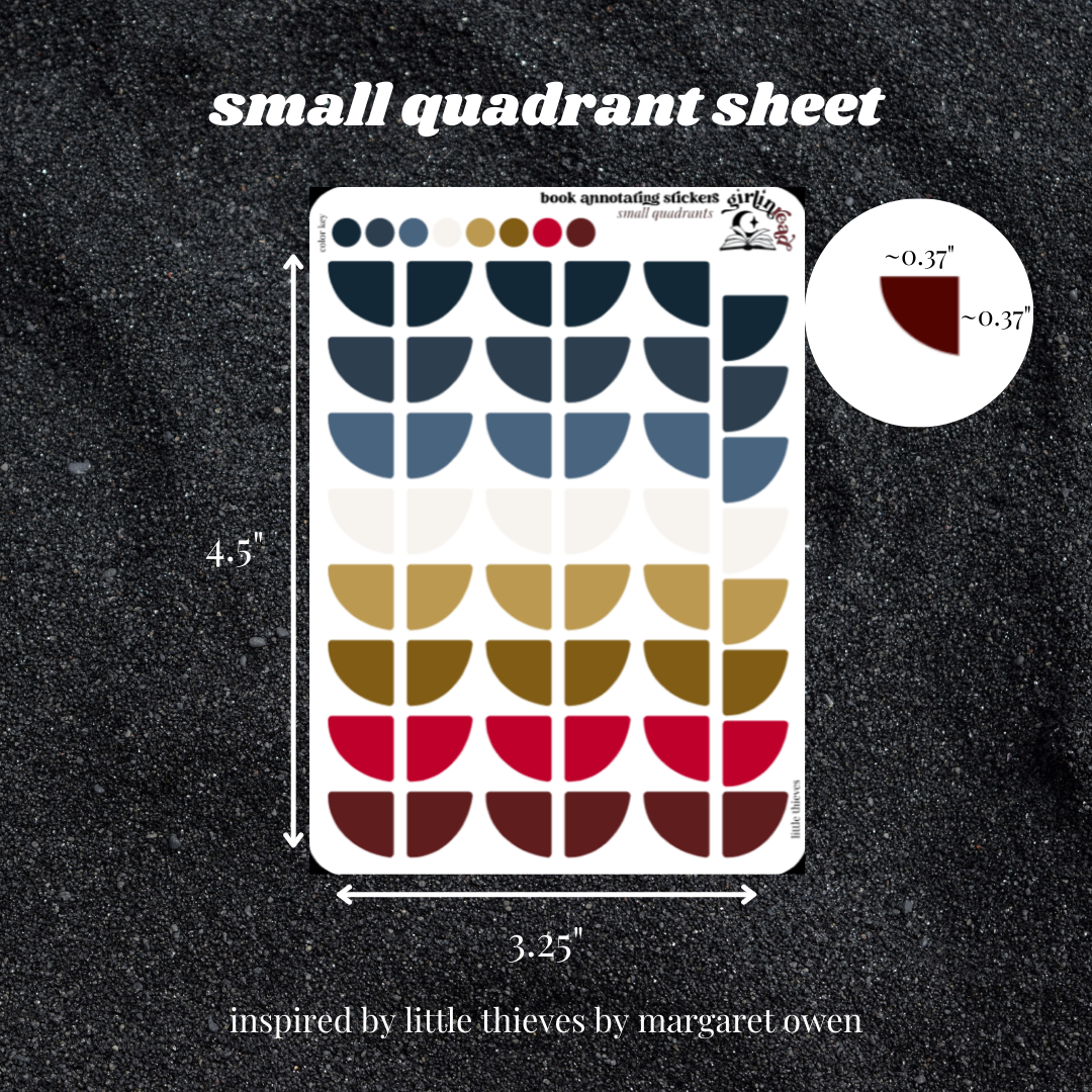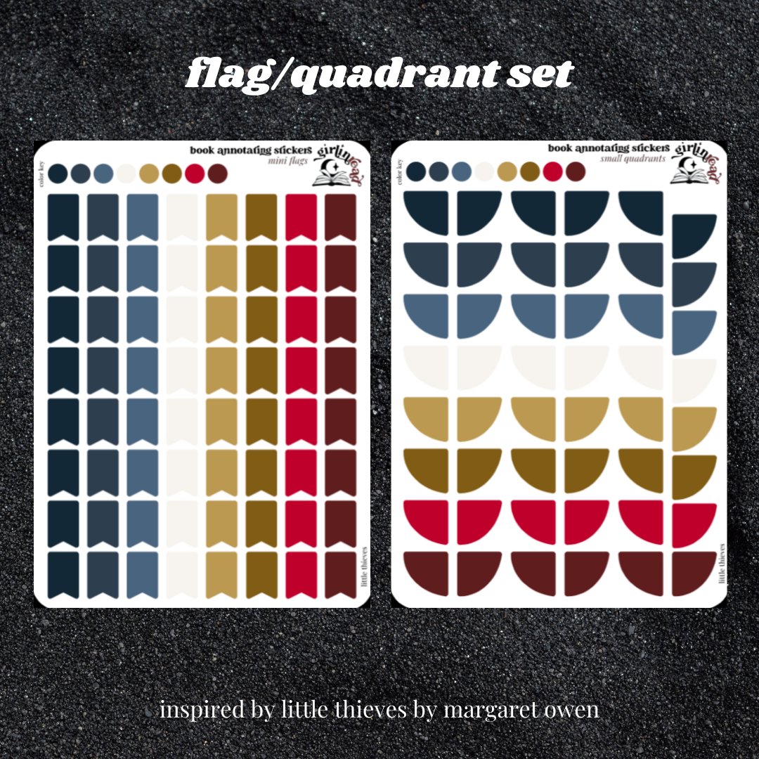 book annotating tabs in the color palette inspired by the book cover for the little thieves series! can be placed in the book you're annotating, your planner, your journal, your reading log, etc.!