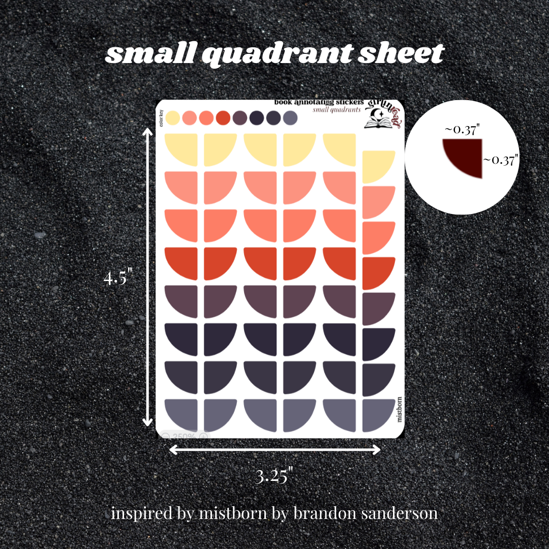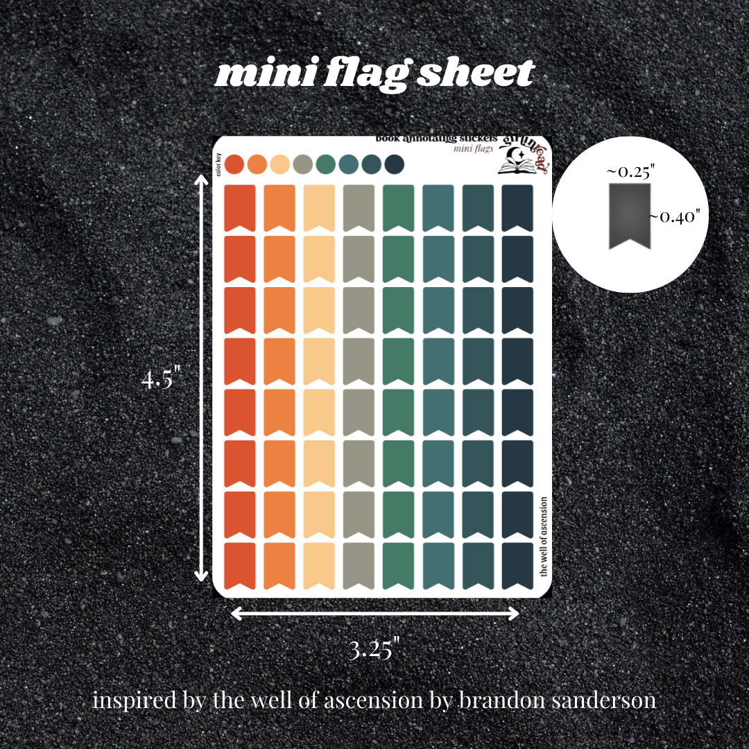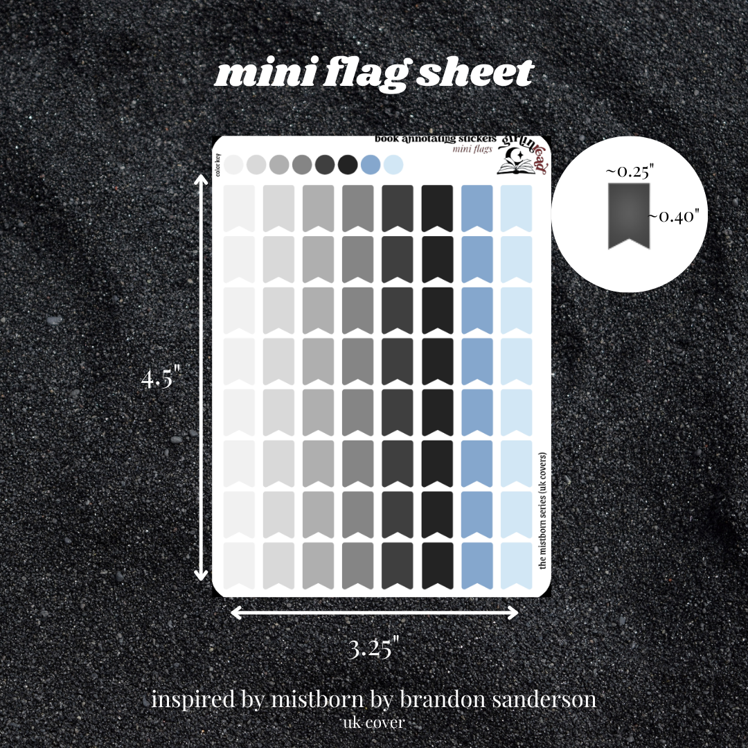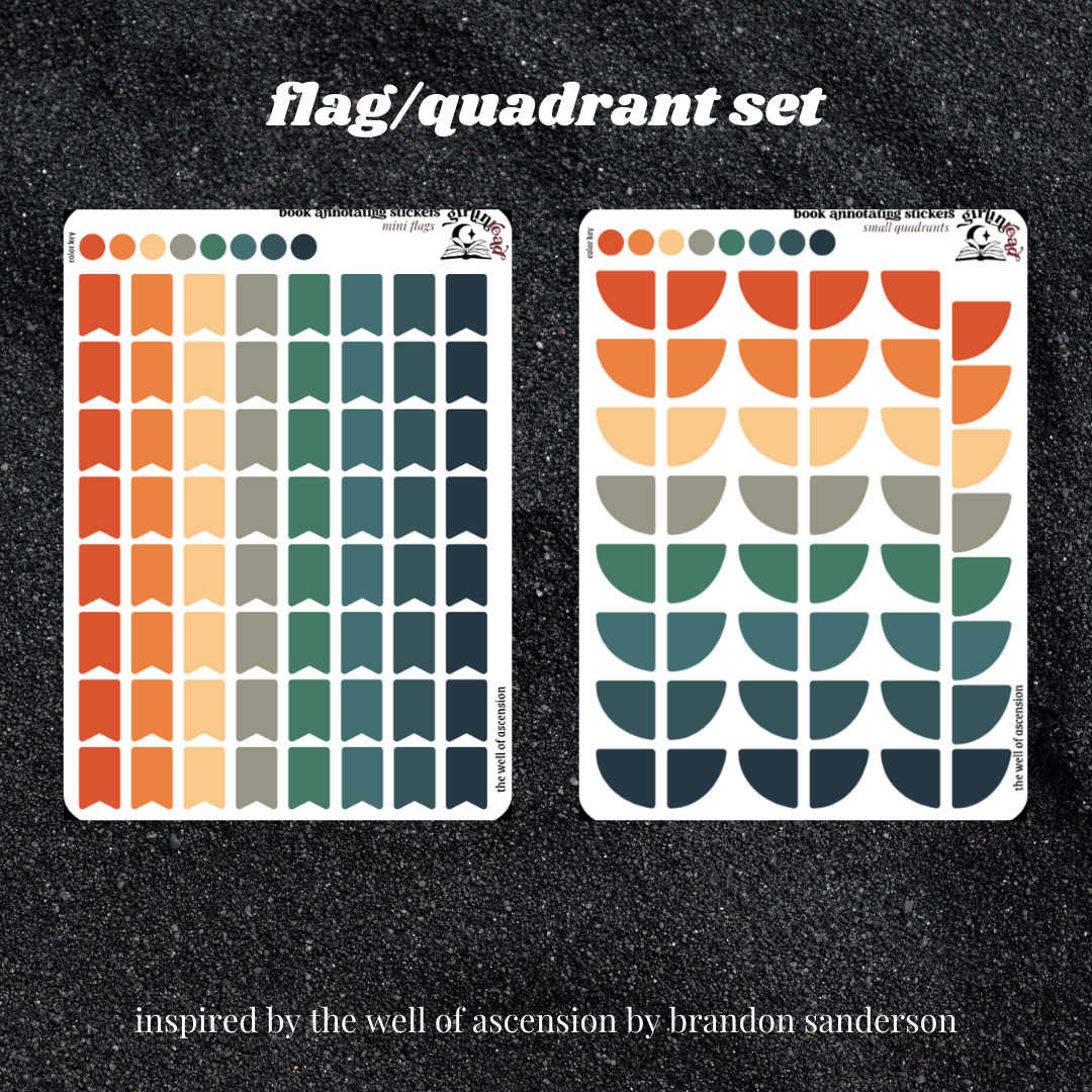 book annotating tabs in the color palettes inspired by the book covers for the mistborn trilogy! can be placed in the book you're annotating, your planner, your journal, your reading log, etc.!