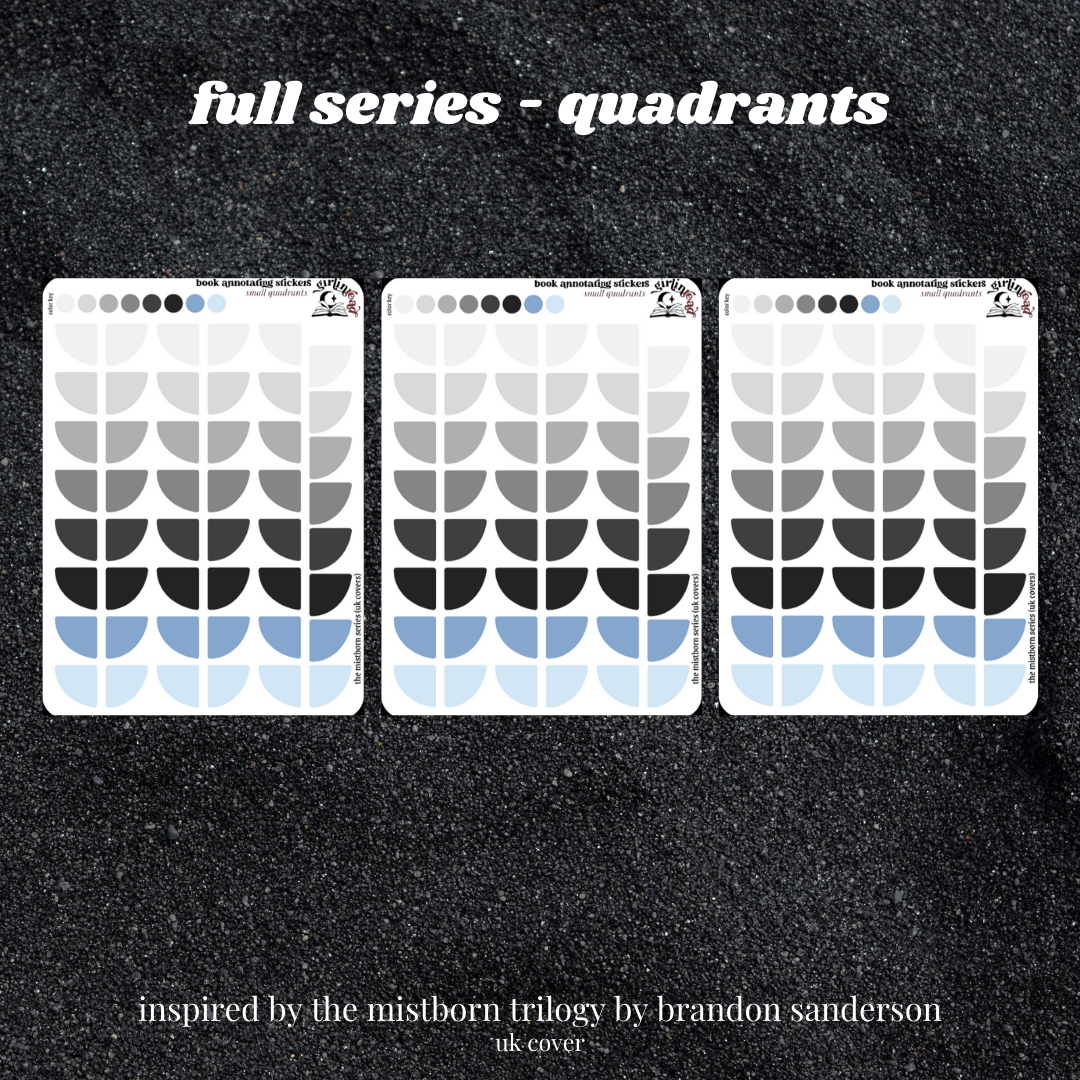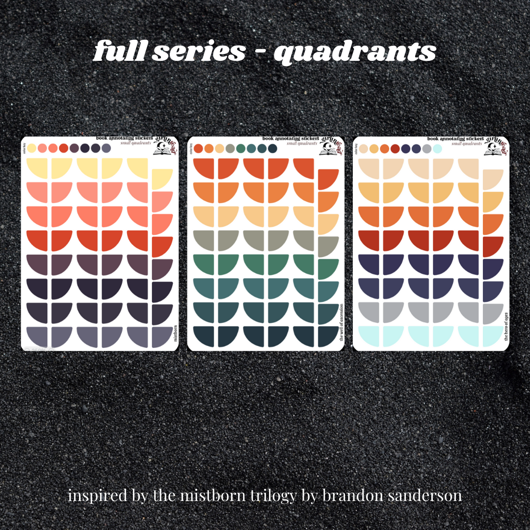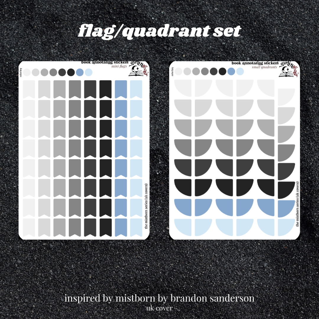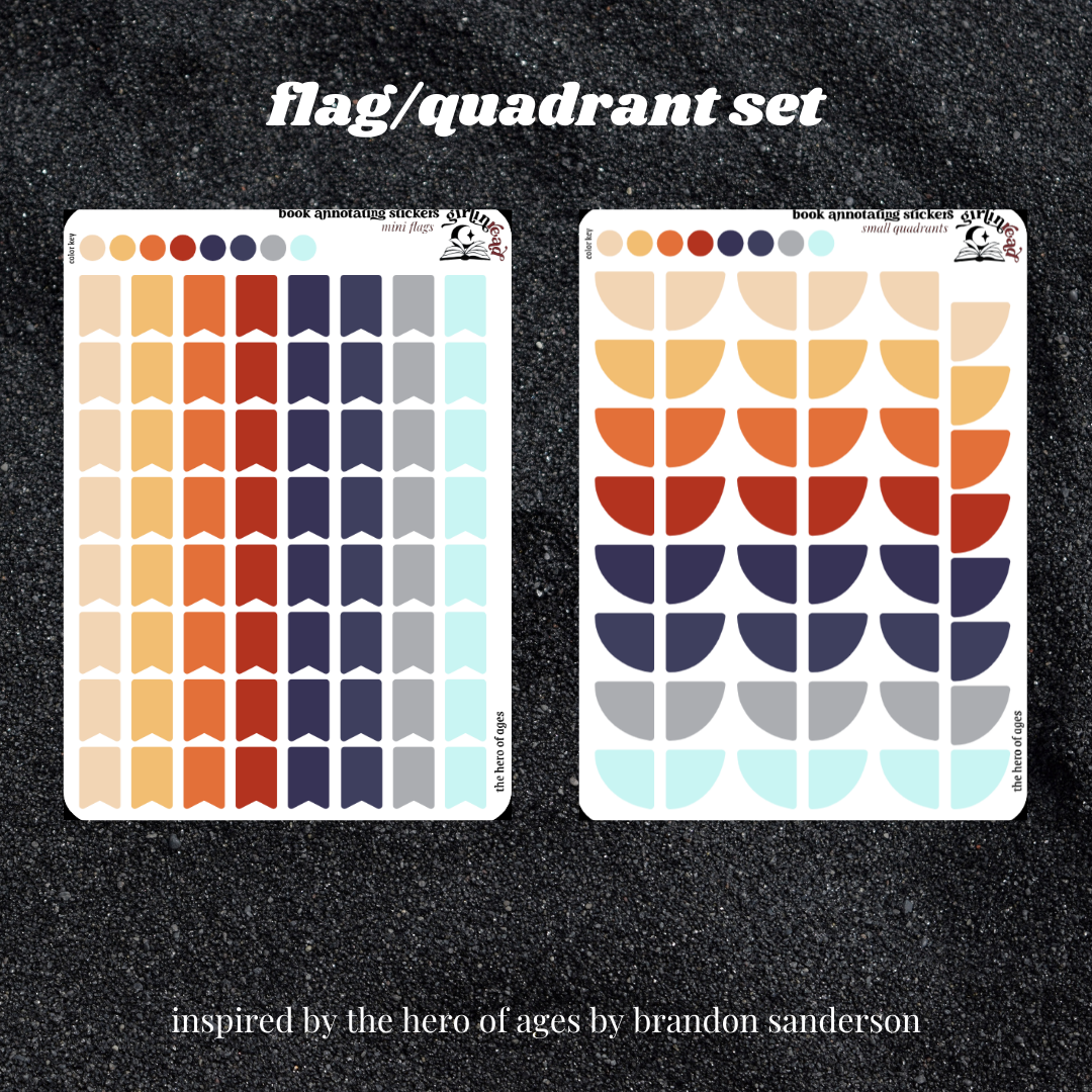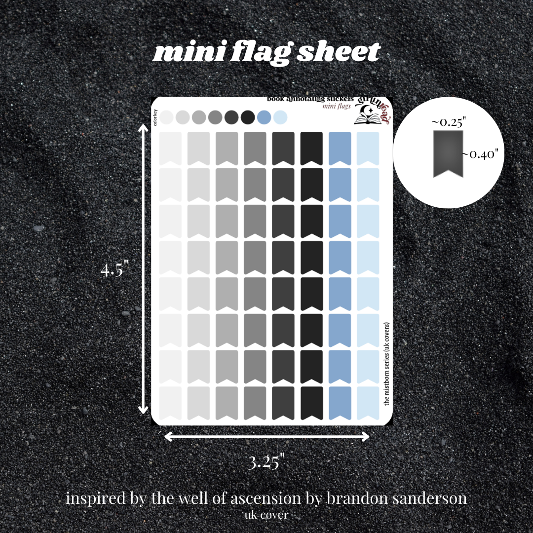book annotating tabs in the color palettes inspired by the book covers for the mistborn trilogy! can be placed in the book you're annotating, your planner, your journal, your reading log, etc.!