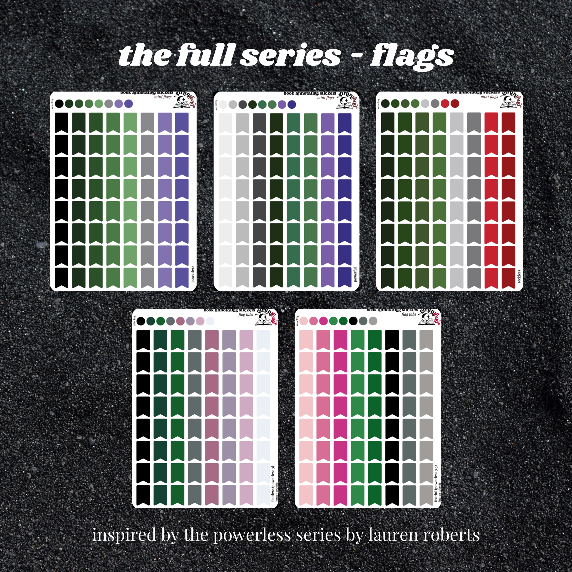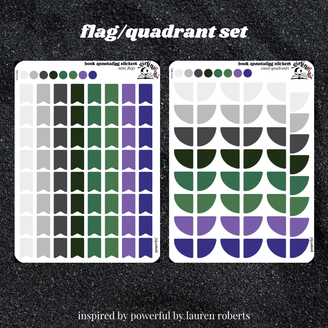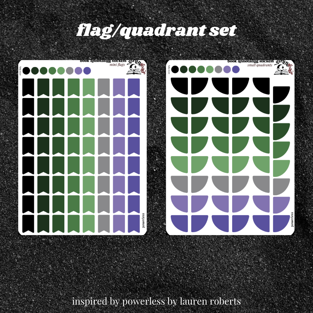 book annotating tabs in the color palettes inspired by the book covers for the powerless series! can be placed in the book you're annotating, your planner, your journal, your reading log, etc.!