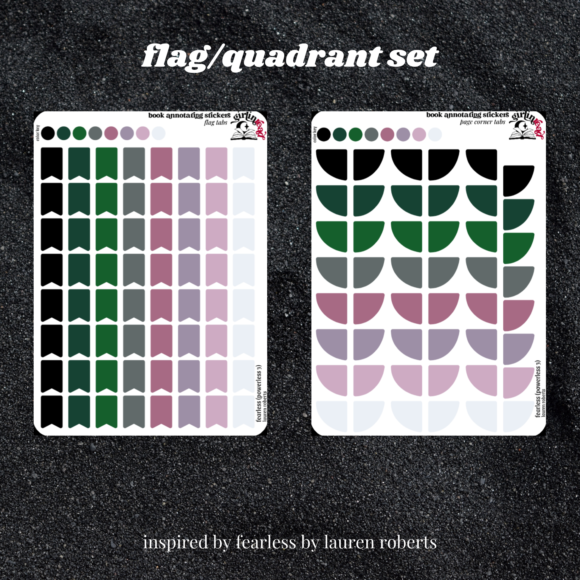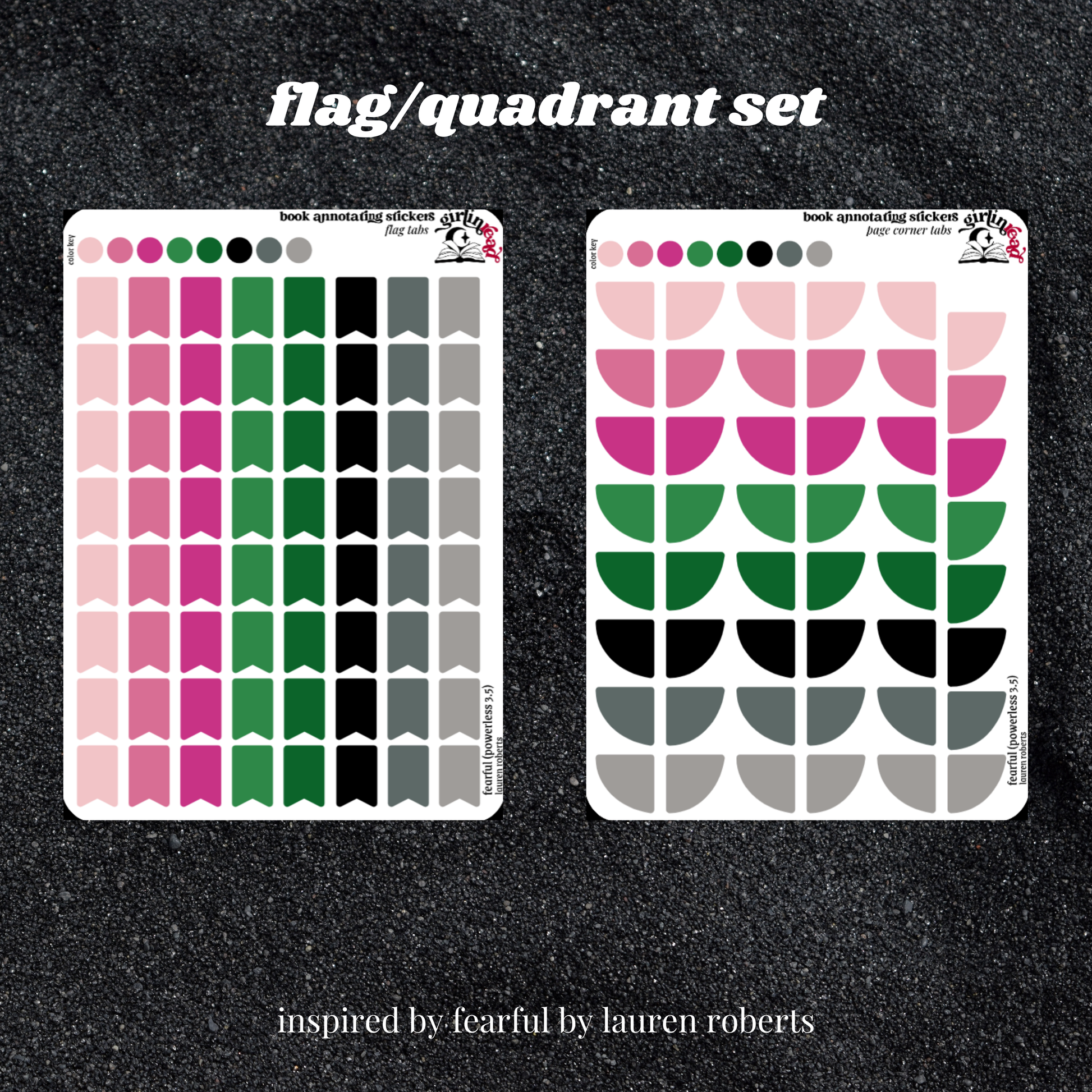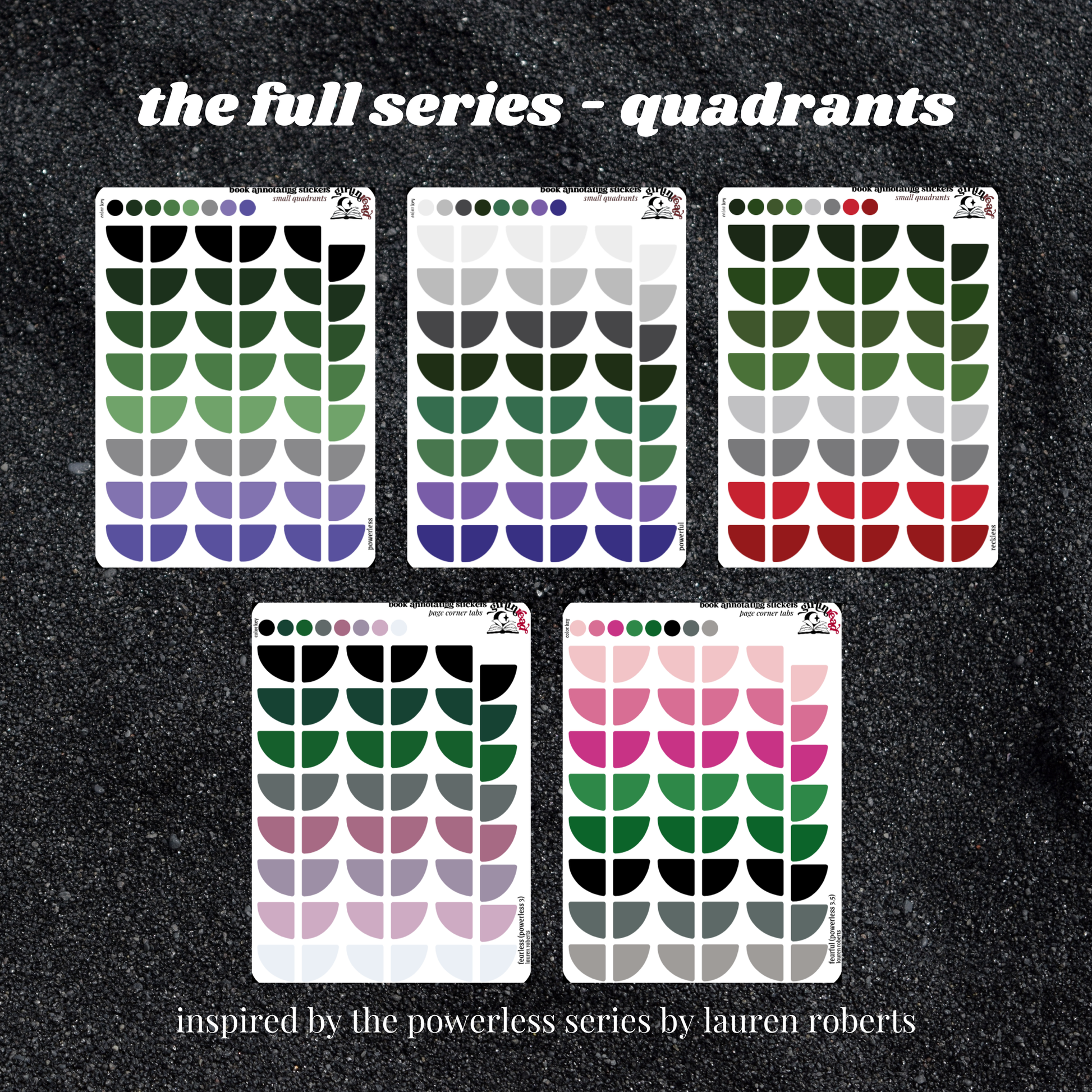 book annotating tabs in the color palettes inspired by the book covers for the powerless series! can be placed in the book you're annotating, your planner, your journal, your reading log, etc.!