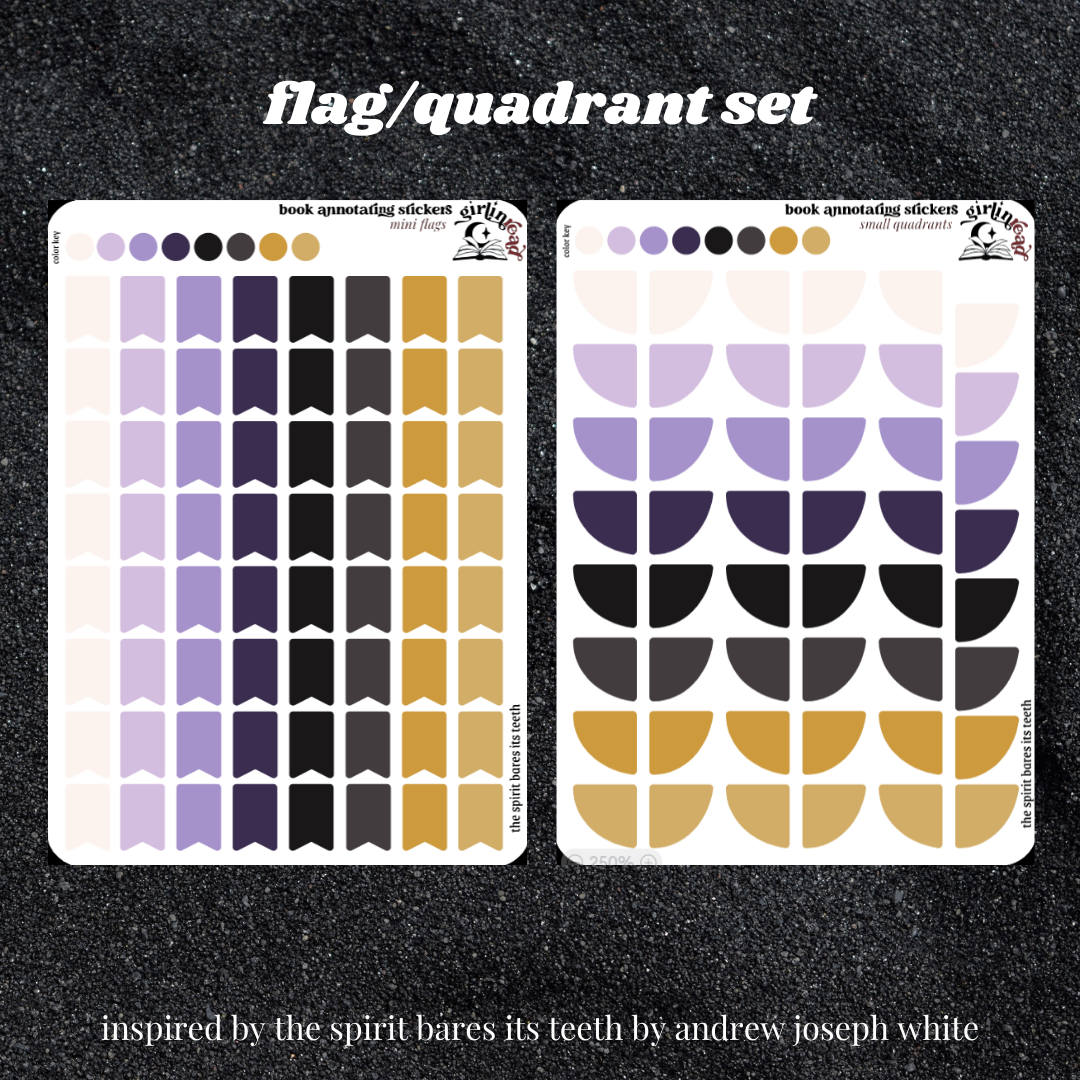 book annotating tabs in the color palette inspired by the book cover for the spirit bares its teeth! can be placed in the book you're annotating, your planner, your journal, your reading log, etc.!