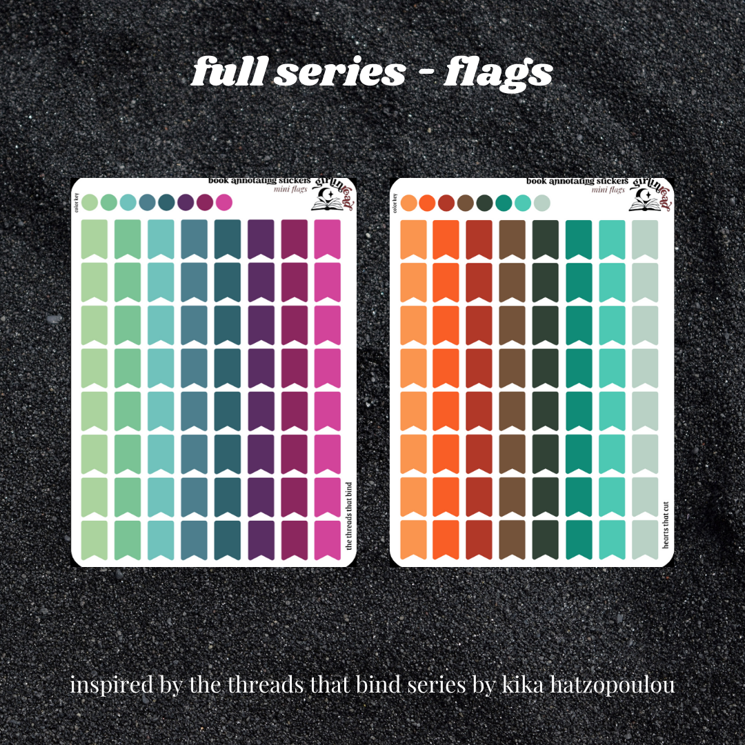 book annotating tabs in the color palette inspired by the book cover for the threads that bind series! can be placed in the book you're annotating, your planner, your journal, your reading log, etc.!