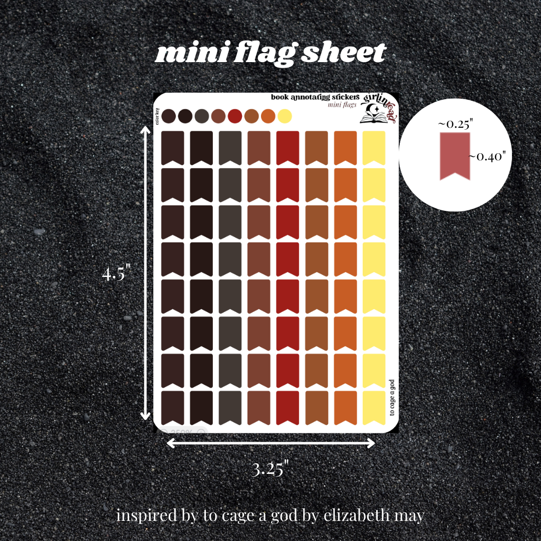 book annotating tabs in the color palette inspired by the book cover for to cage a god! can be placed in the book you're annotating, your planner, your journal, your reading log, etc.!