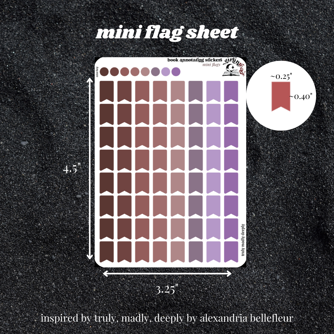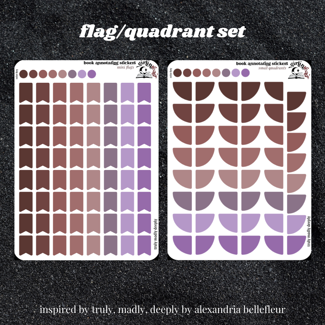 book annotating tabs in the color palette inspired by the book cover for truly, madly, deeply! can be placed in the book you're annotating, your planner, your journal, your reading log, etc.!