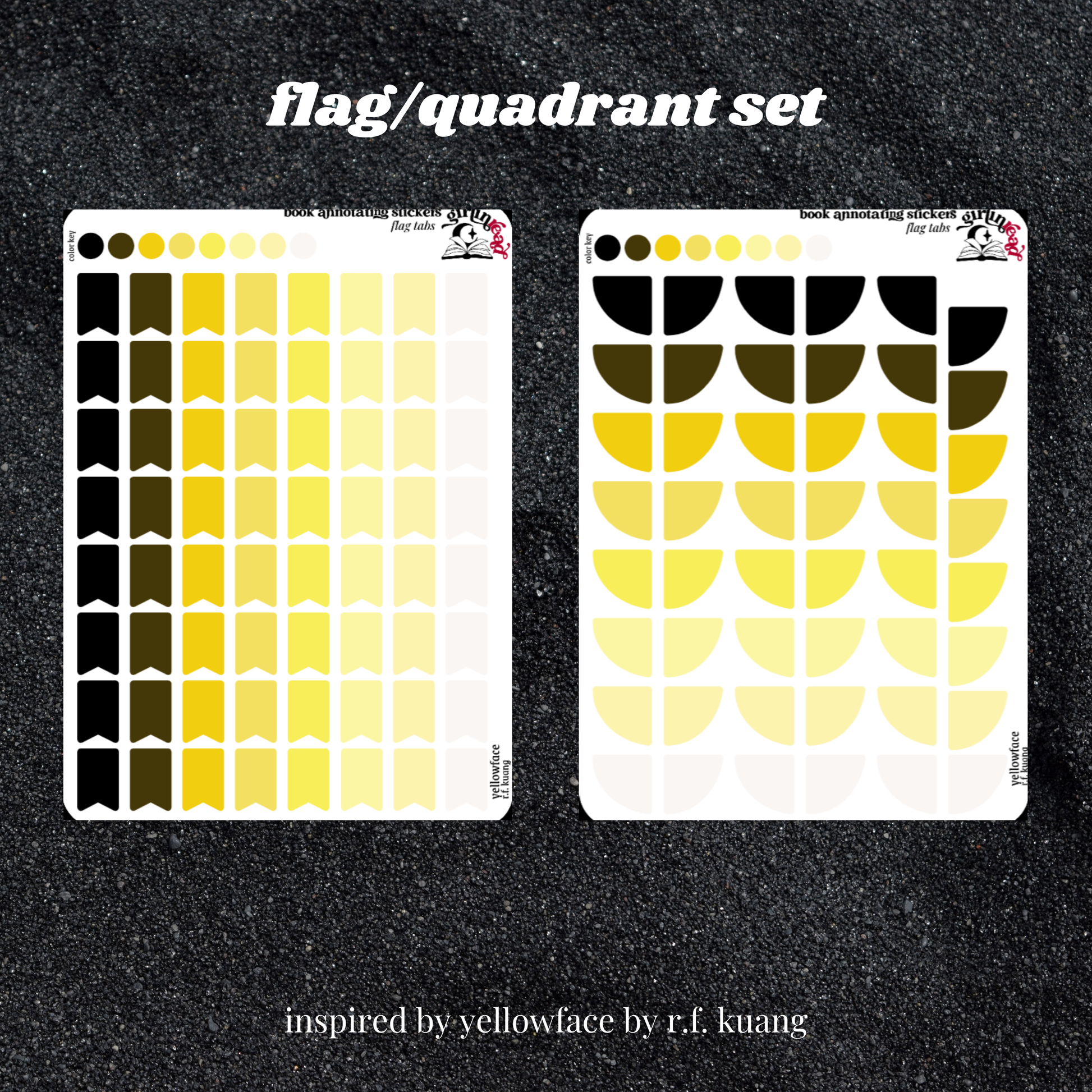 book annotating tabs in the color palette inspired by the book cover for yellowface! can be placed in the book you're annotating, your planner, your journal, your reading log, etc.!