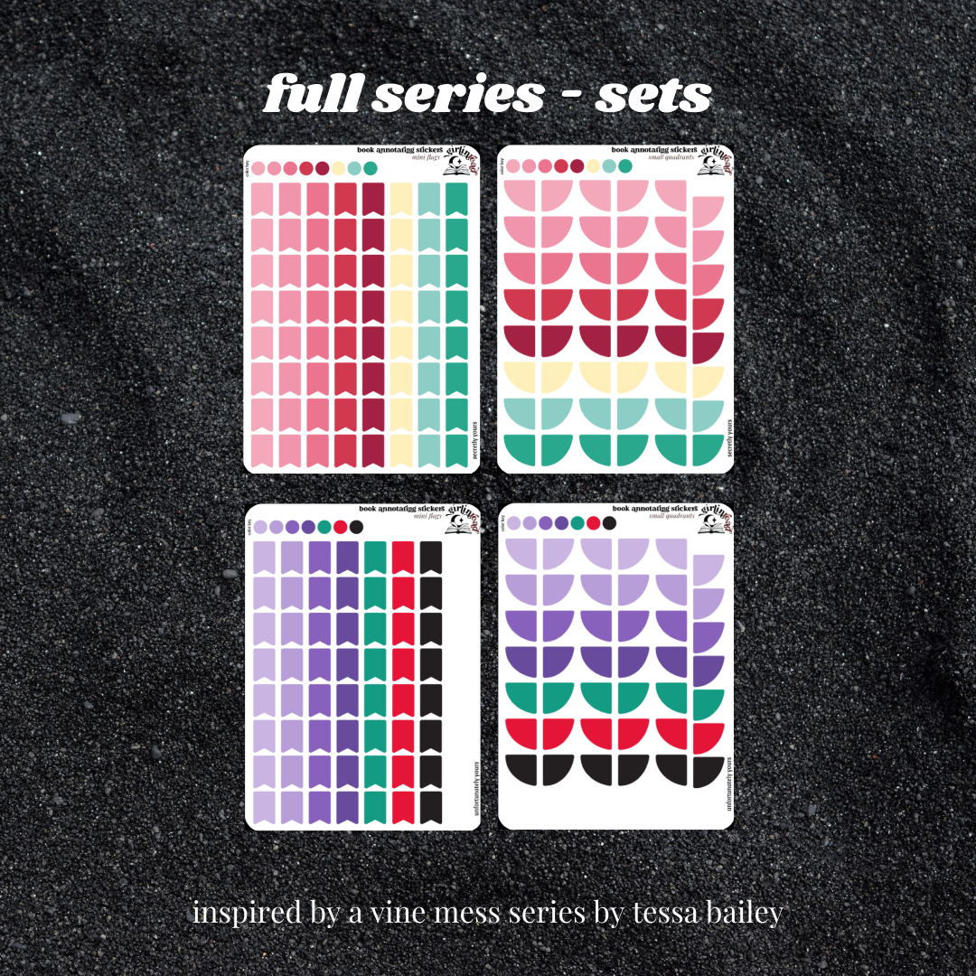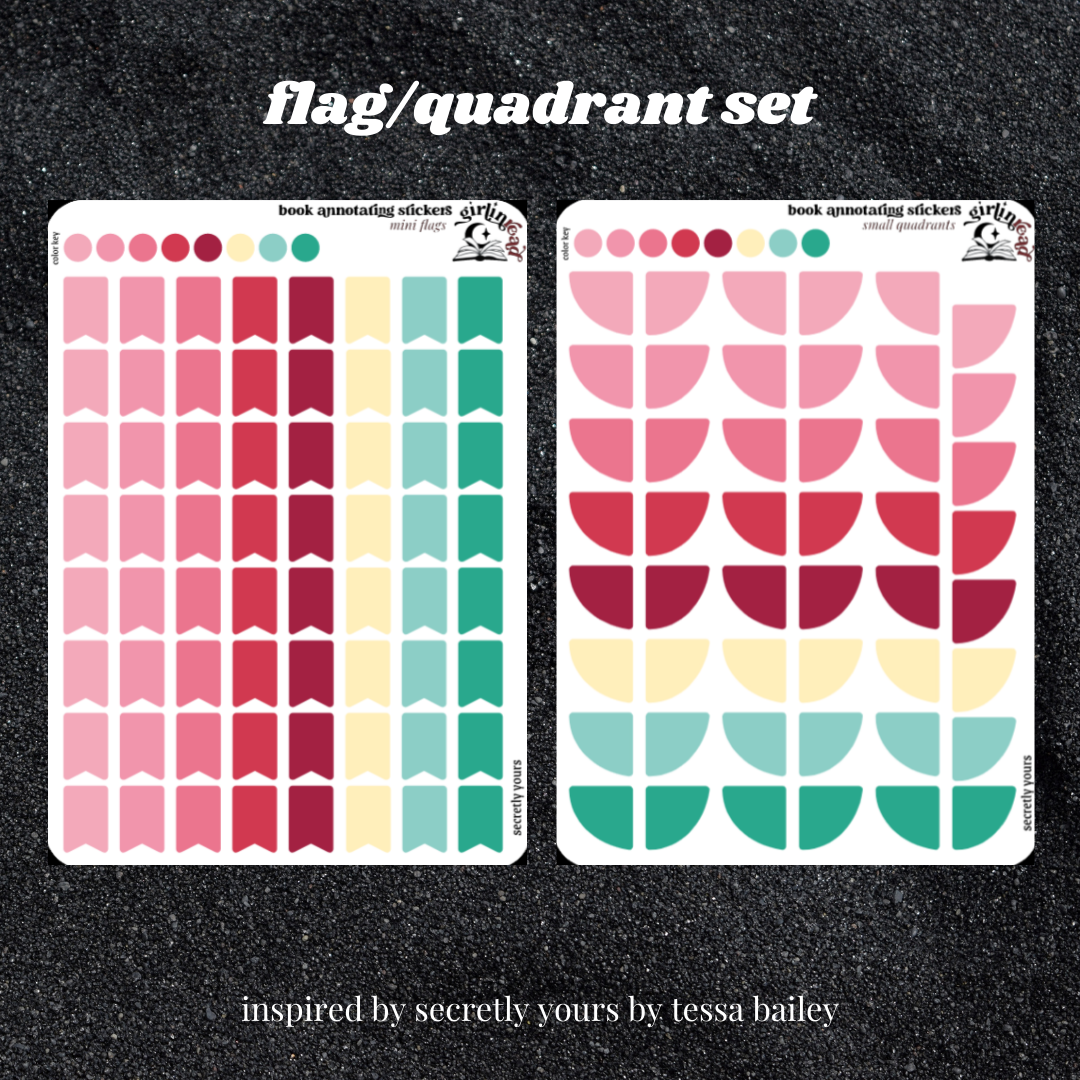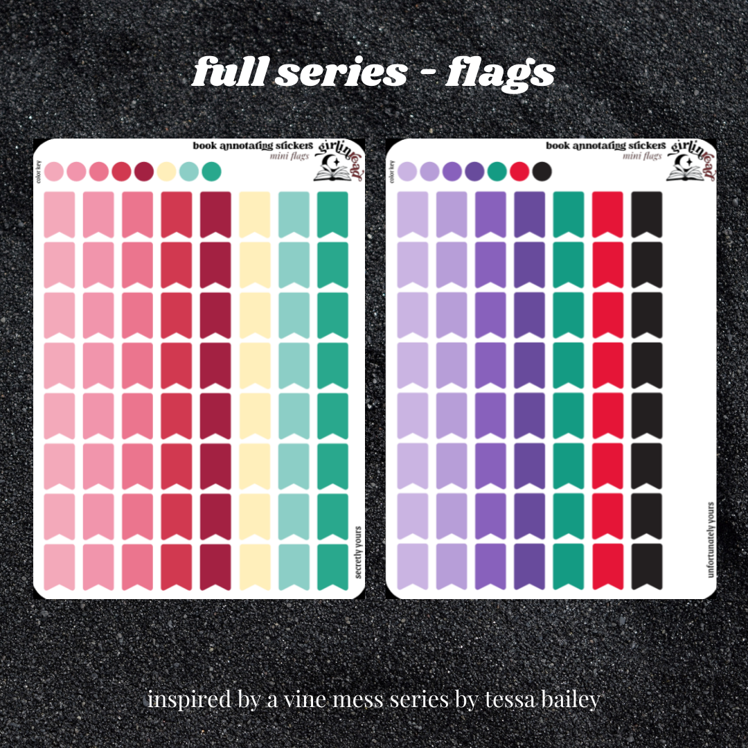 book annotating tabs in the color palette inspired by the book cover for a vine mess series (secretly yours, unfortunately yours)! can be placed in the book you're annotating, your planner, your journal, your reading log, etc.!
