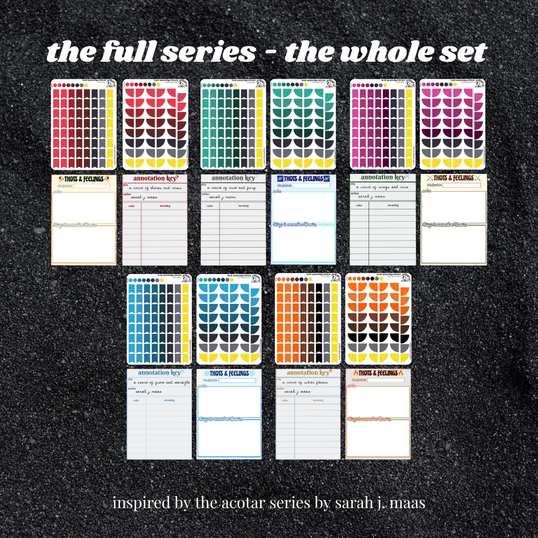 "the full series" comes with all stickers listed for all 5 books for each option.