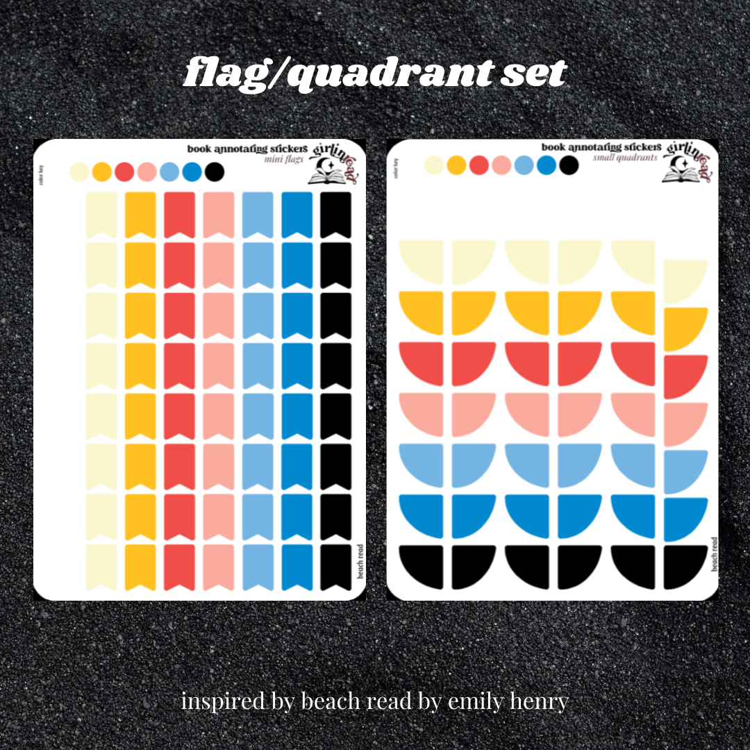 book annotating tabs in the color palette inspired by the book cover for beach read! can be placed in the book you're annotating, your planner, your journal, your reading log, etc.!