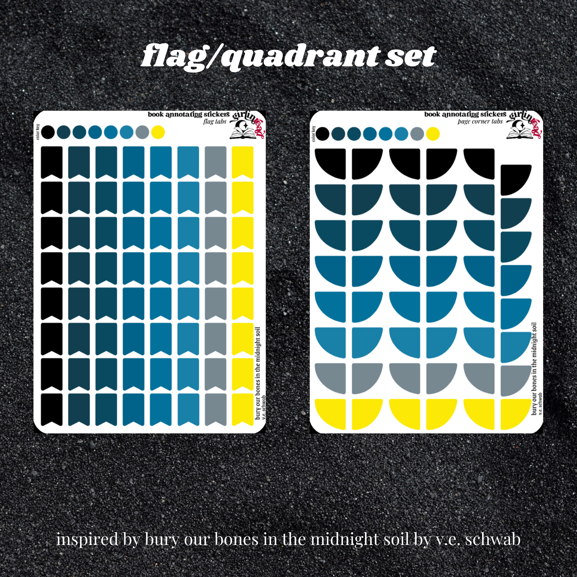 book annotating tabs in the color palette inspired by the book cover for bury our bones in the midnight soil! can be placed in the book you're annotating, your planner, your journal, your reading log, etc.!