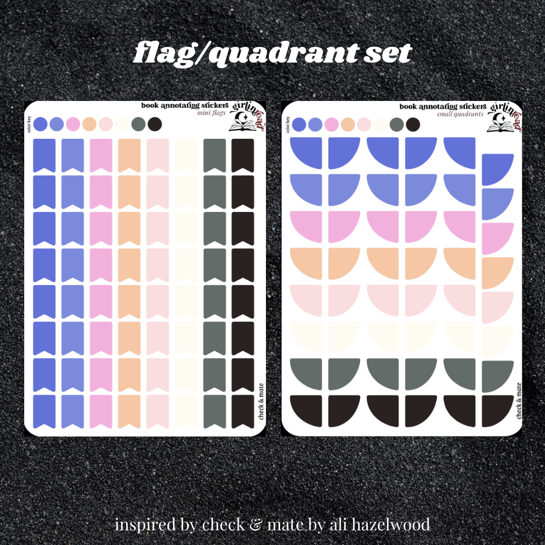book annotating tabs in the color palette inspired by the book cover for check & mate! can be placed in the book you're annotating, your planner, your journal, your reading log, etc.!