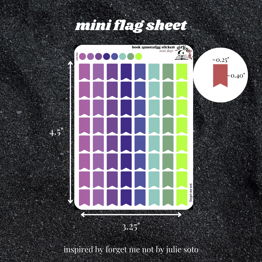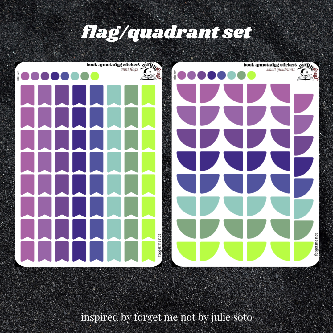book annotating tabs in the color palette inspired by the book cover for forget me not! can be placed in the book you're annotating, your planner, your journal, your reading log, etc.!