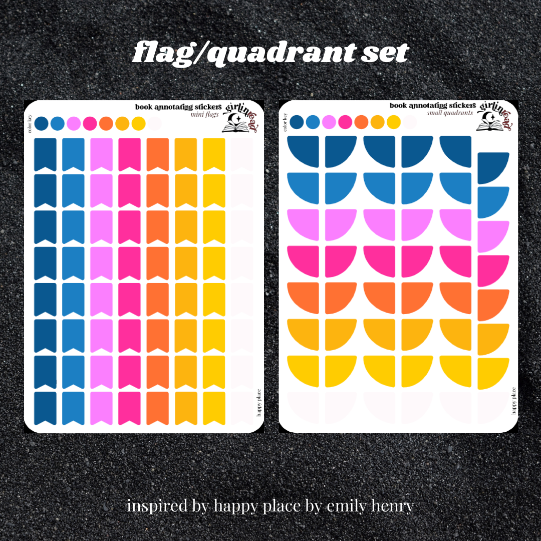 book annotating tabs in the color palette inspired by the book cover for happy place! can be placed in the book you're annotating, your planner, your journal, your reading log, etc.!