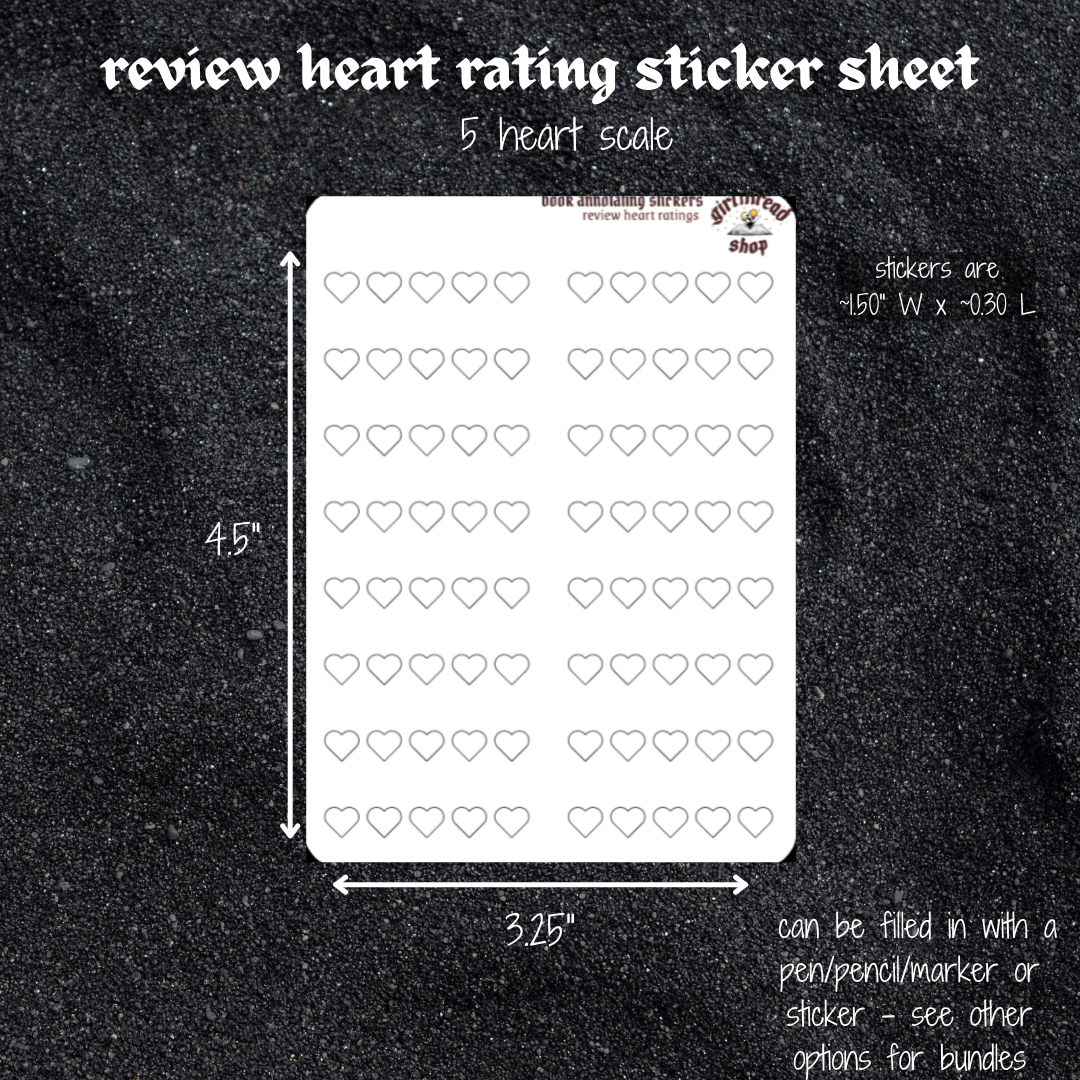 mini stickers for recording your rating for your books using hearts instead of stars. hearts can be filled in with pens, markers, or star stickers (see options for bundles).