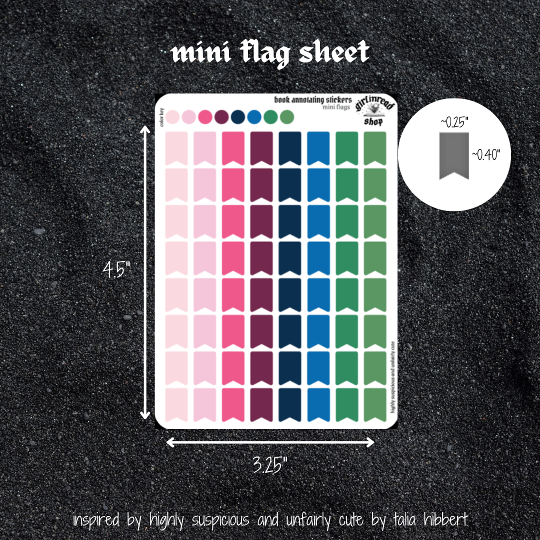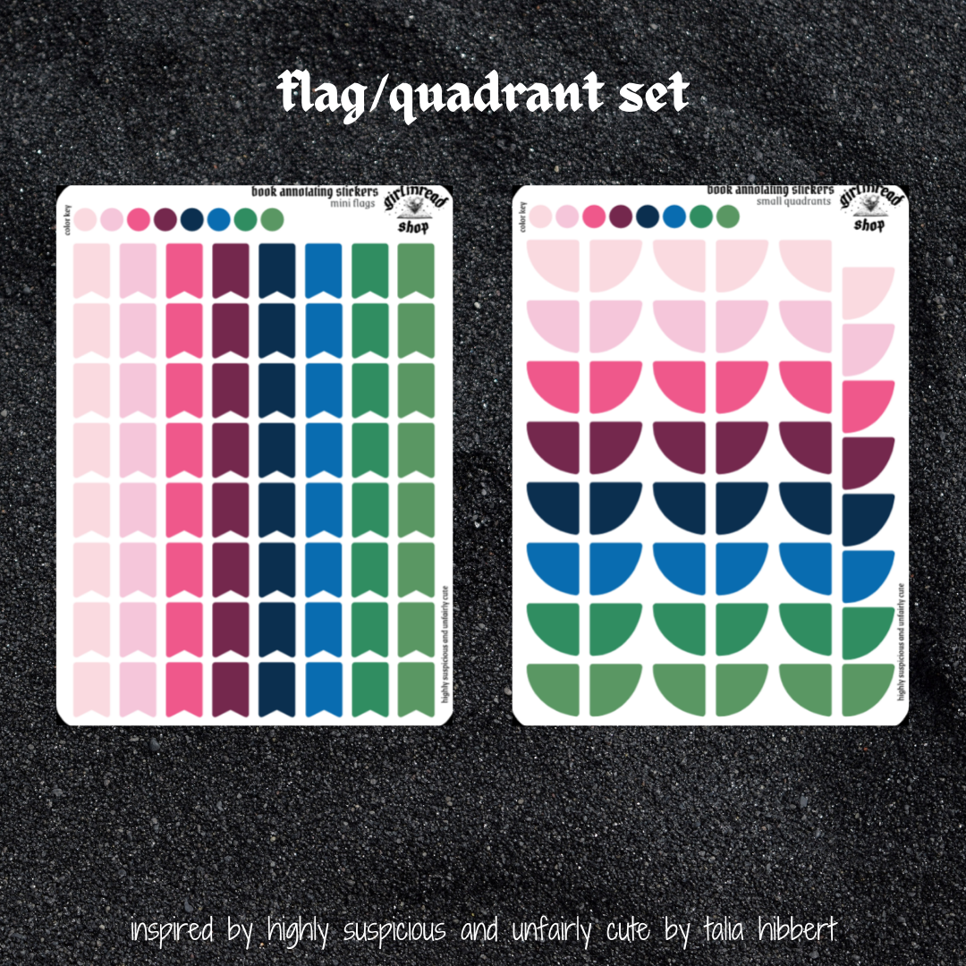book annotating tabs in the color palette inspired by the book cover for highly suspicious and unfairly cute! can be placed in the book you're annotating, your planner, your journal, your reading log, etc.!