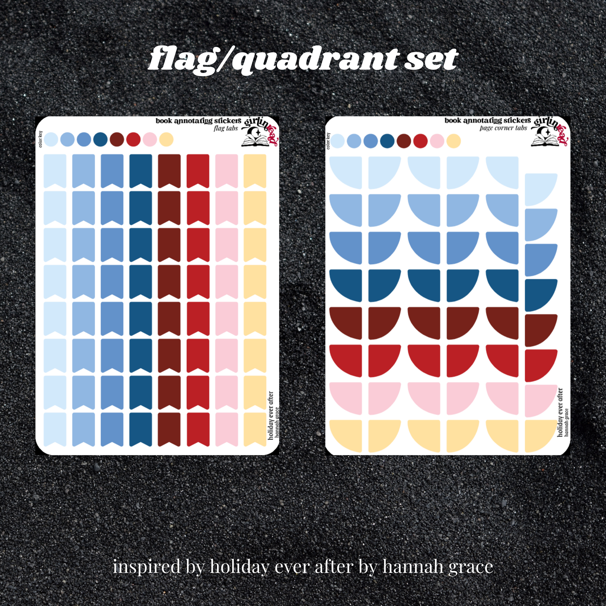 book annotating tabs in the color palette inspired by the book covers for holiday ever after! can be placed in the book you're annotating, your planner, your journal, your reading log, etc.!