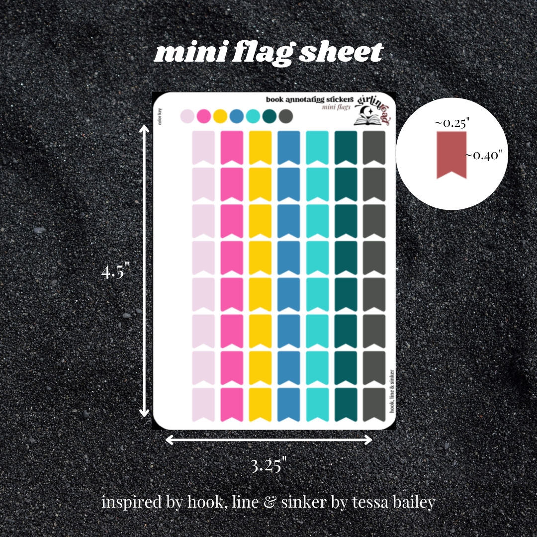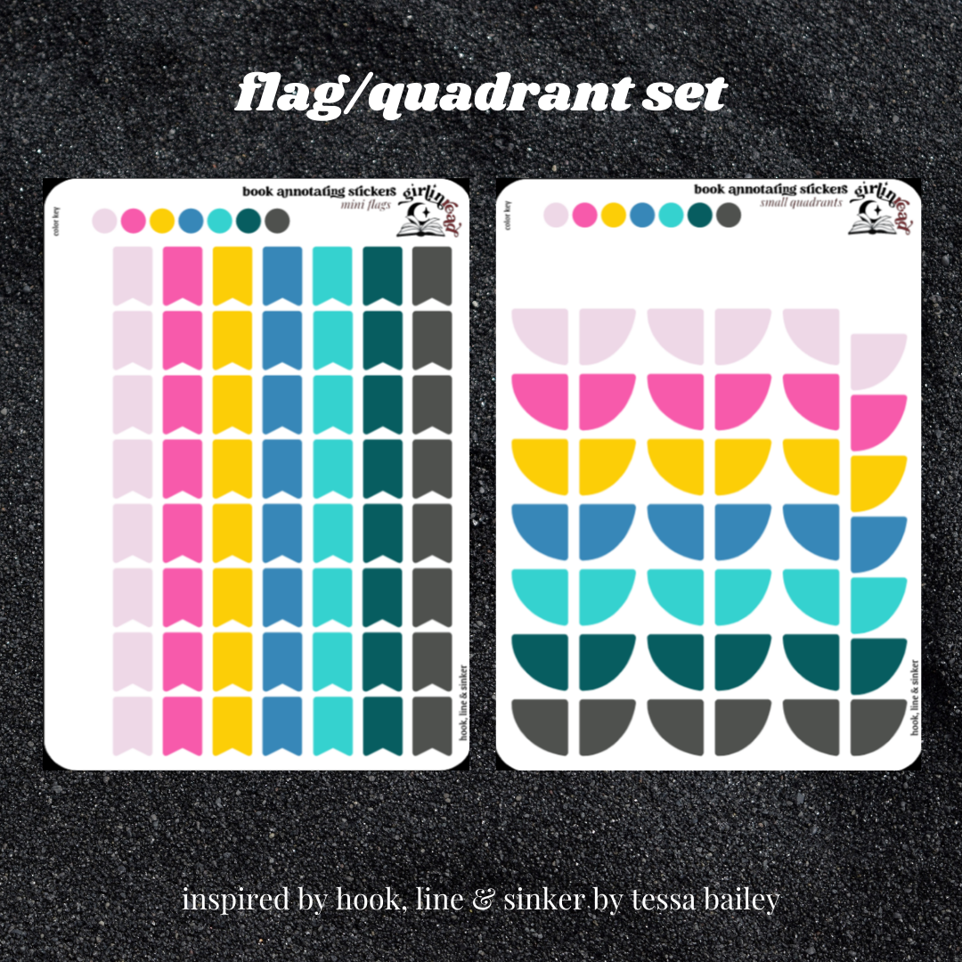 book annotating tabs in the color palette inspired by the book cover for hook, line & sinker! can be placed in the book you're annotating, your planner, your journal, your reading log, etc.!