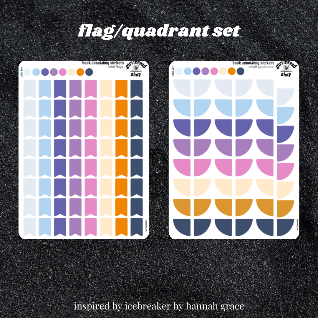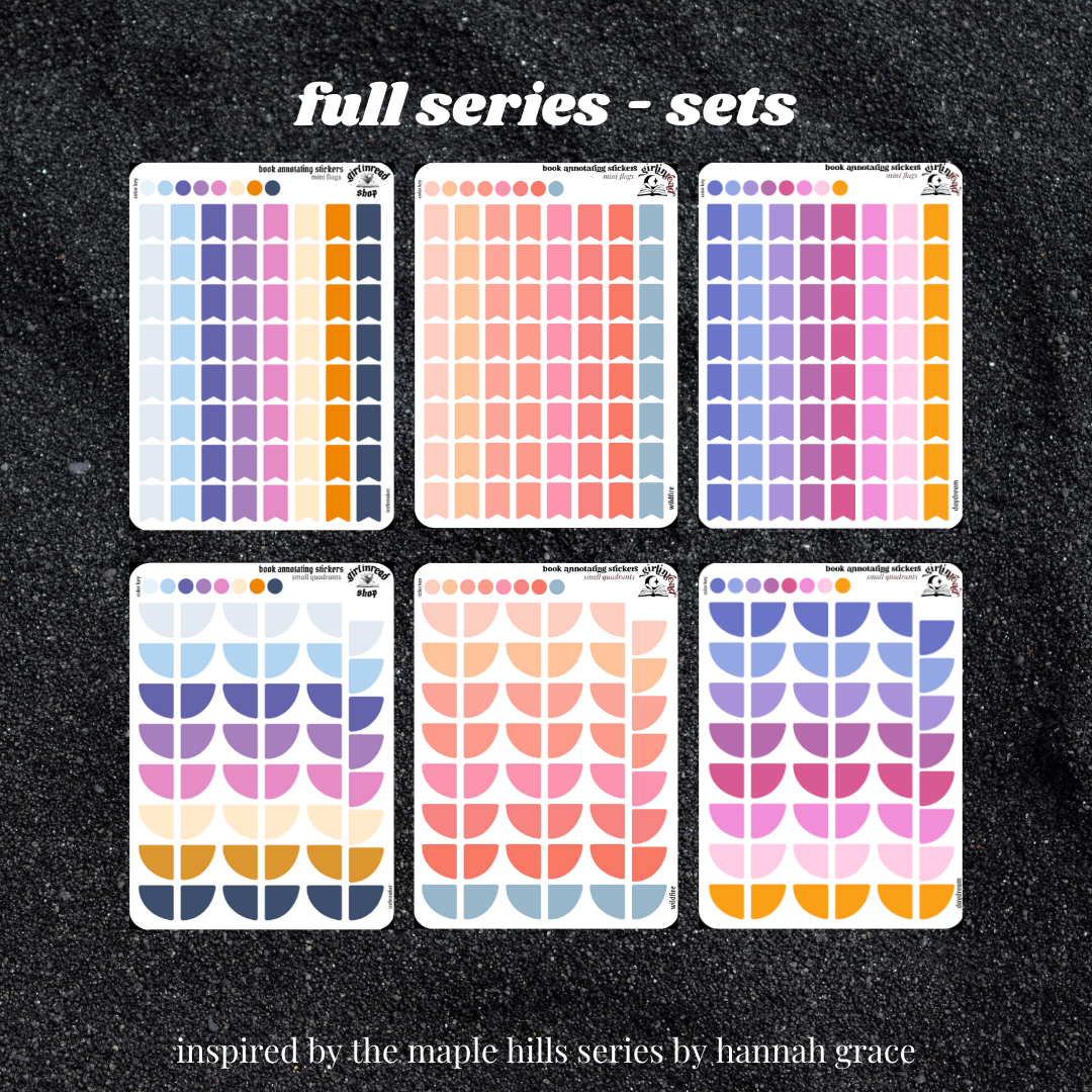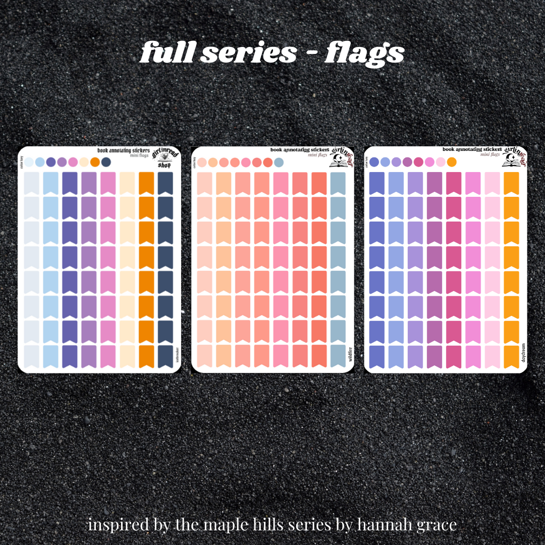 book annotating tabs in the color palette inspired by the book covers for the maple hills series (icebreaker, wildfire, daydream)! can be placed in the book you're annotating, your planner, your journal, your reading log, etc.!