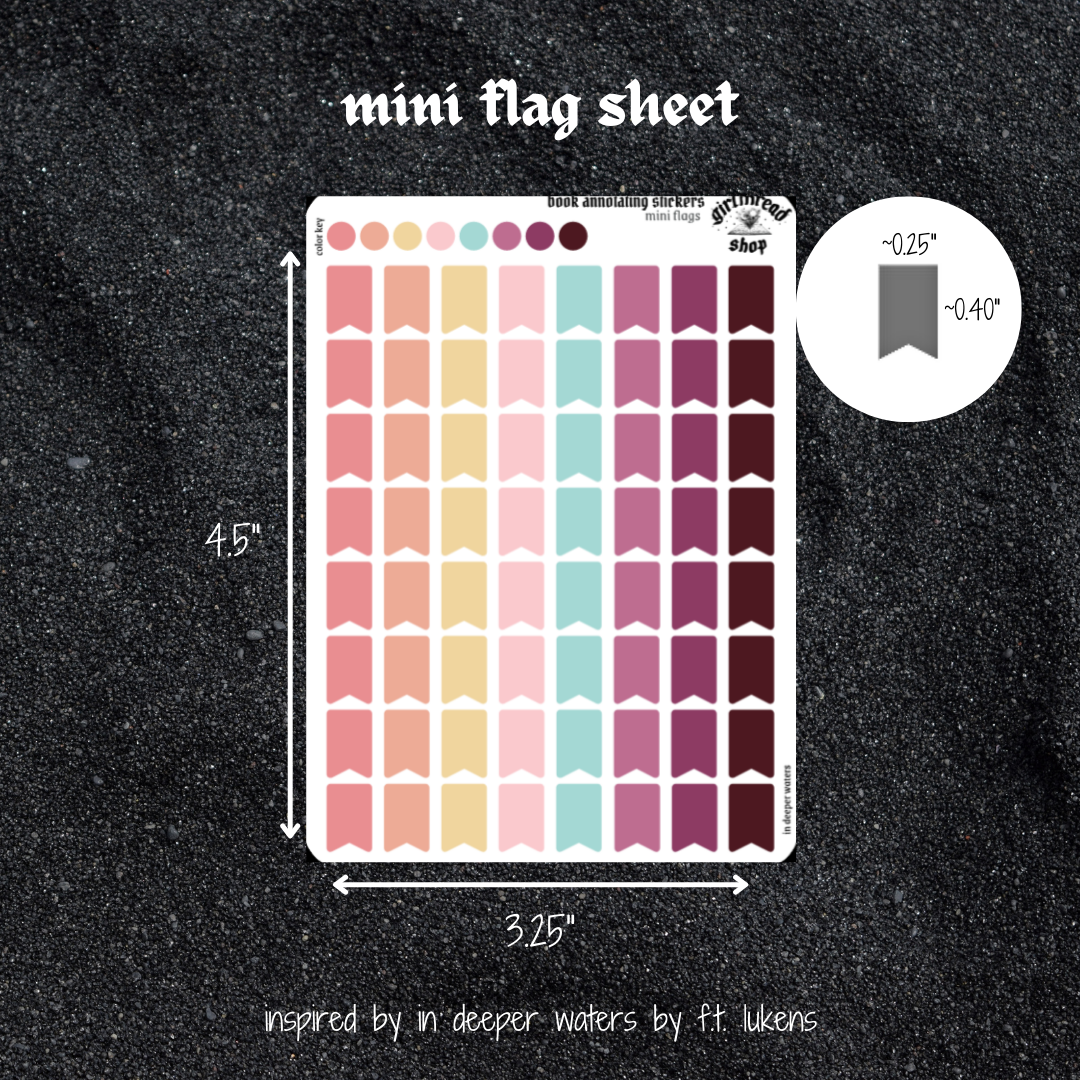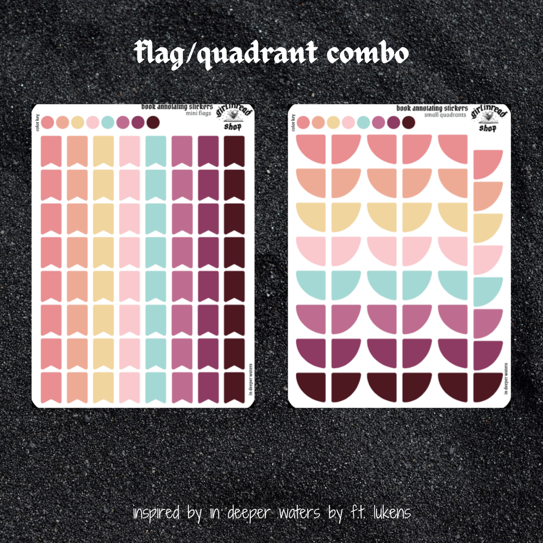 book annotating tabs in the color palette inspired by the book cover for in deeper waters! can be placed in the book you're annotating, your planner, your journal, your reading log, etc.!