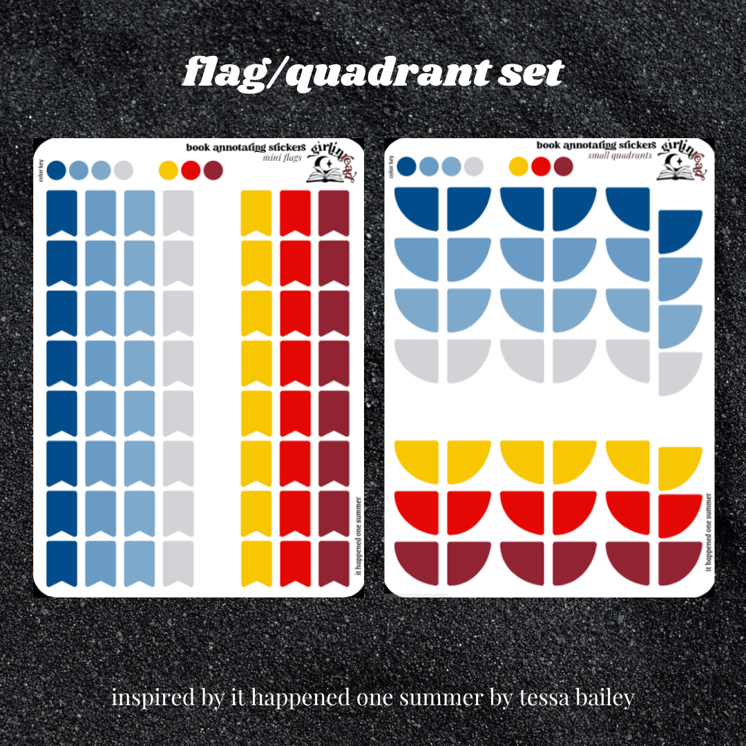 book annotating tabs in the color palette inspired by the book cover for it happened one summer! can be placed in the book you're annotating, your planner, your journal, your reading log, etc.!