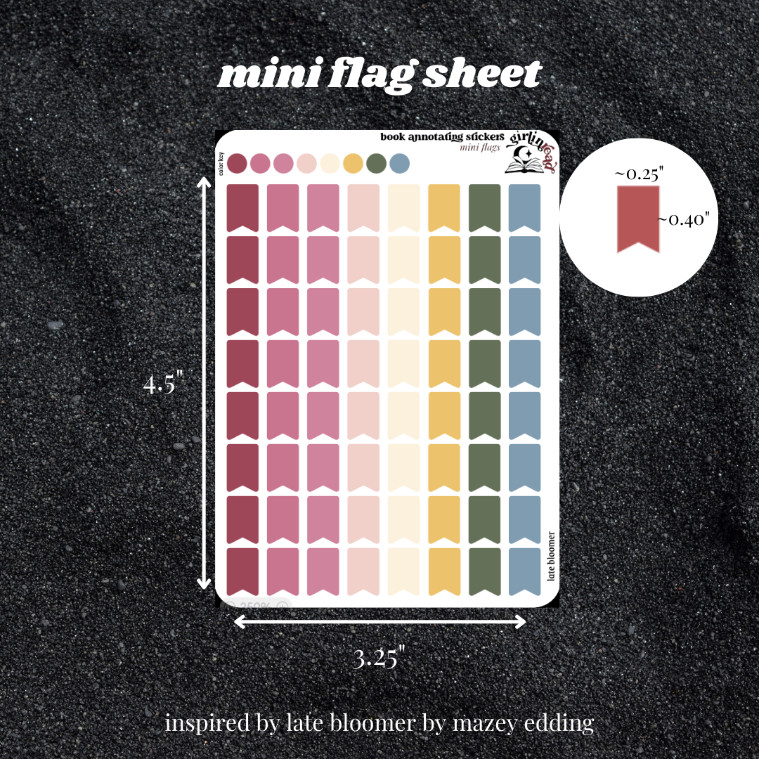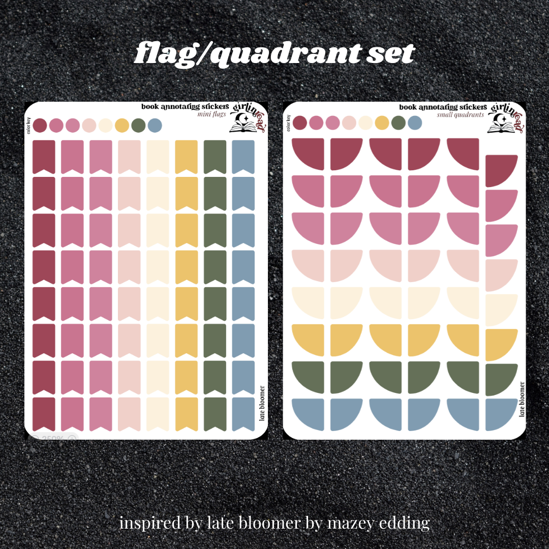 book annotating tabs in the color palette inspired by the book cover for late bloomer! can be placed in the book you're annotating, your planner, your journal, your reading log, etc.!