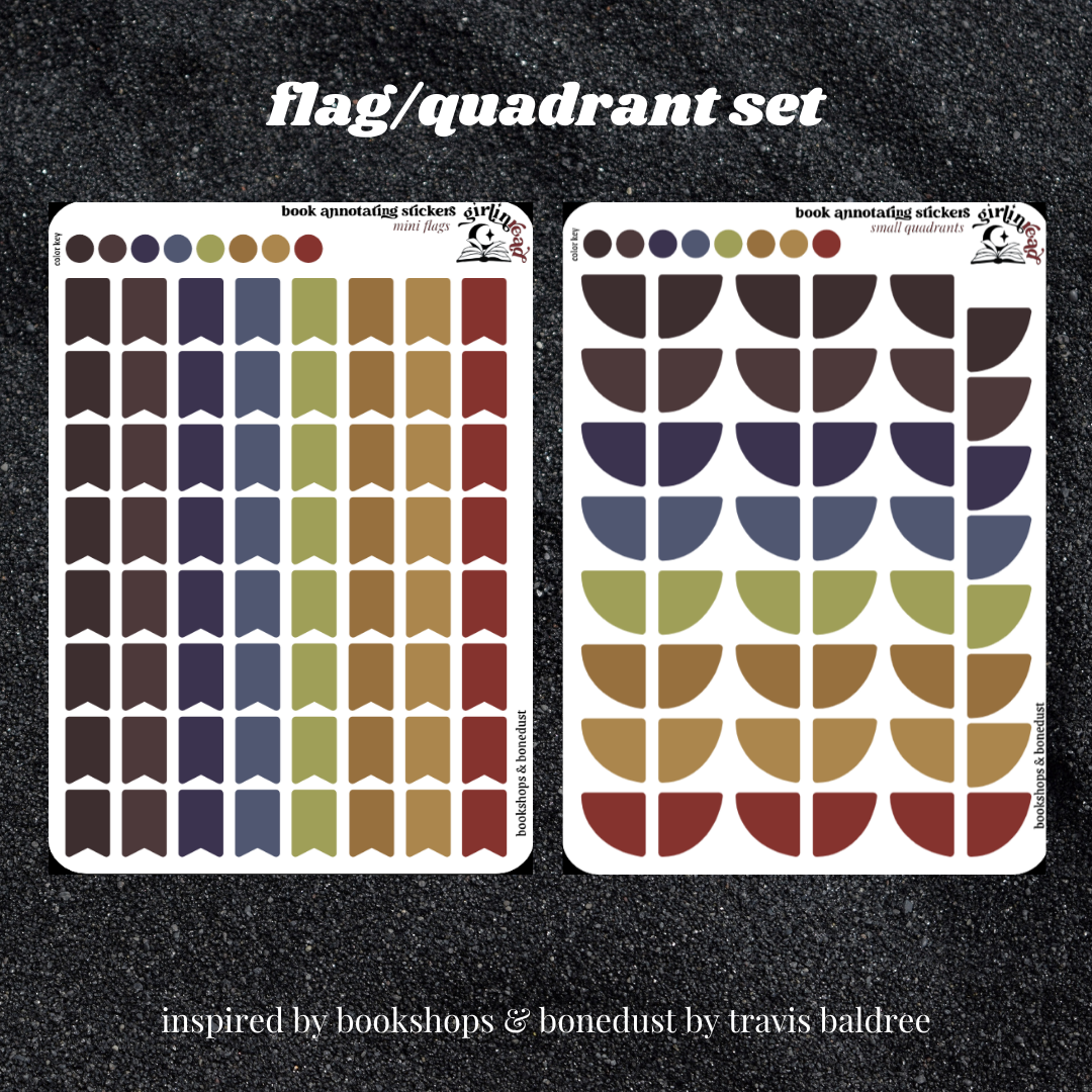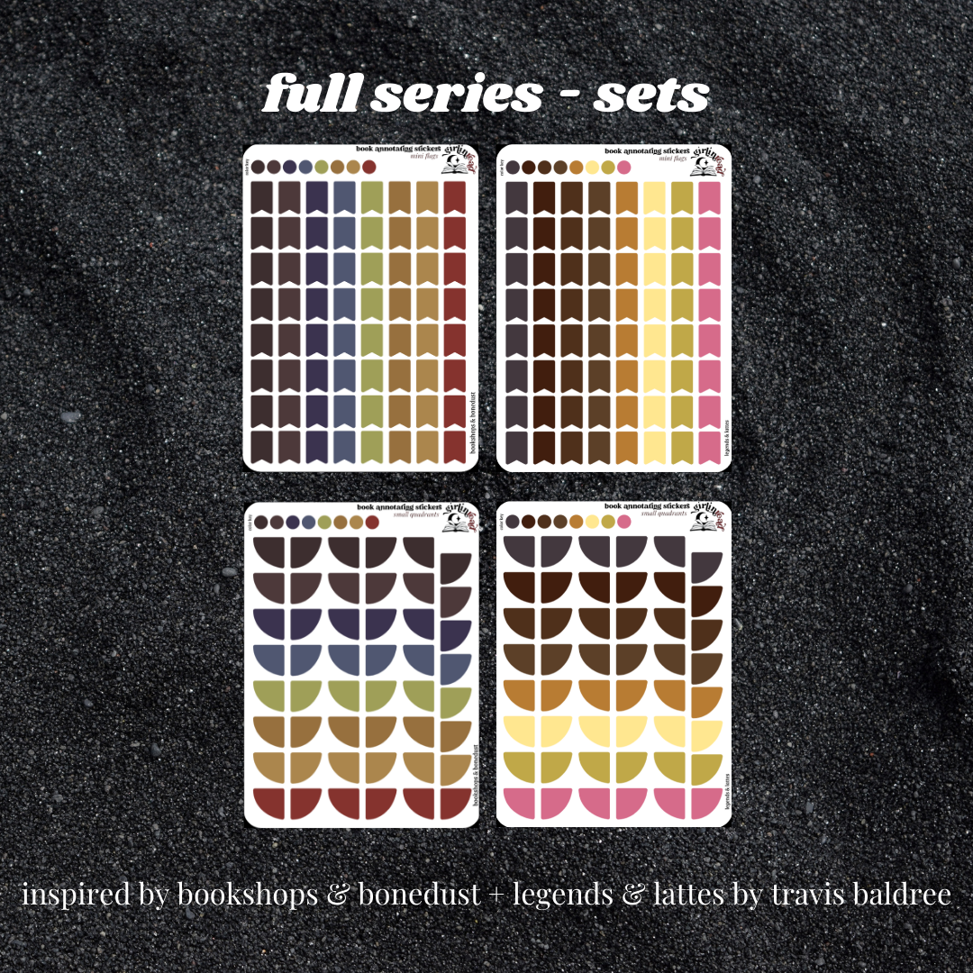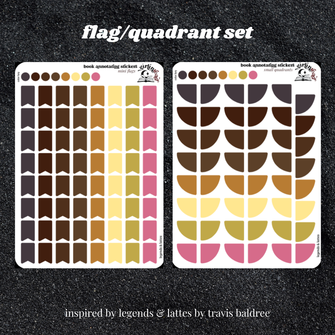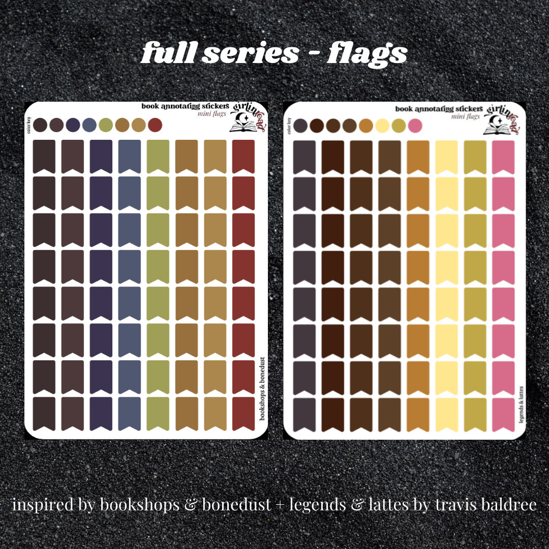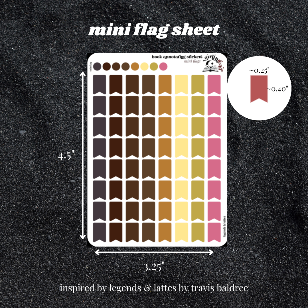 book annotating tabs in the color palette inspired by the book cover for legends & lattes + bookshops and bonedust! can be placed in the book you're annotating, your planner, your journal, your reading log, etc.!
