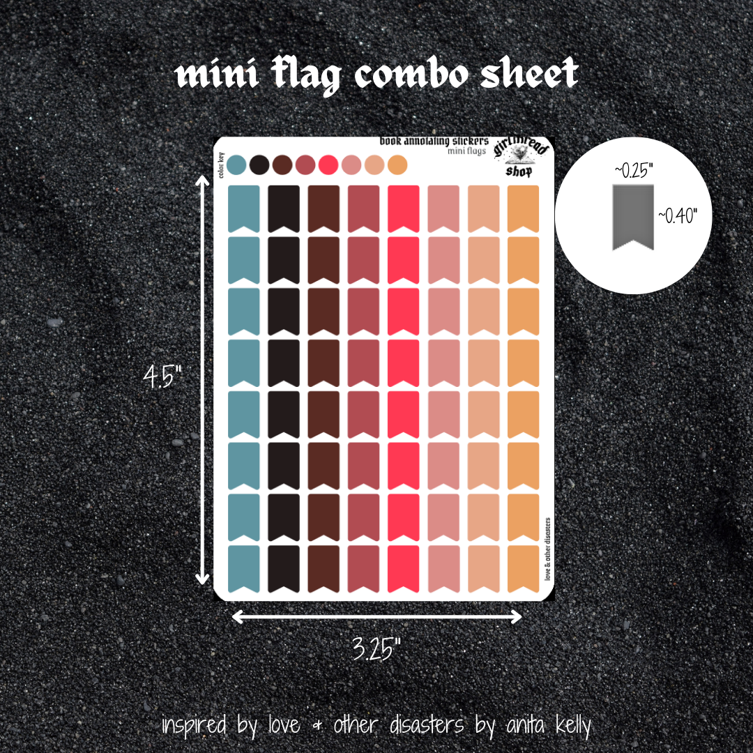 book annotating tabs in the color palette inspired by the book cover for love & other disasters! can be placed in the book you're annotating, your planner, your journal, your reading log, etc.!