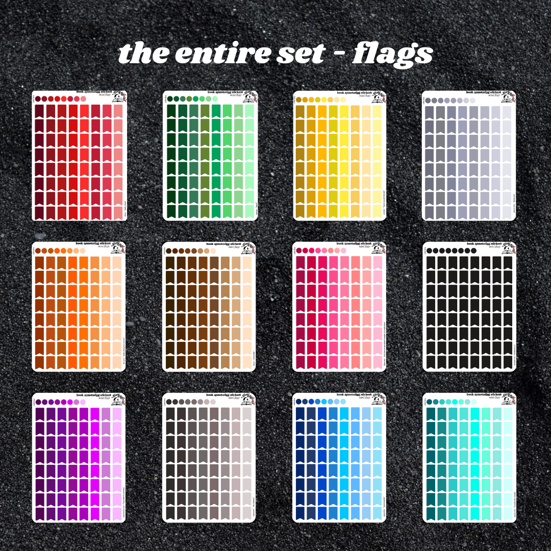 full-color book annotating tabs in 12 monochrome palettes - can be placed in the book you're annotating, your planner, your journal, your reading log, etc.!