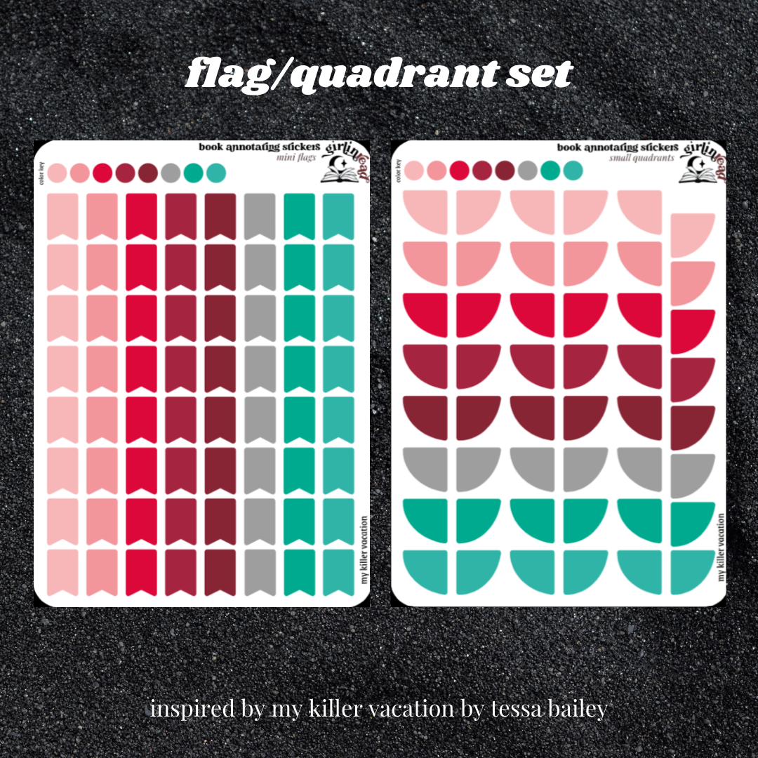 book annotating tabs in the color palette inspired by the book cover for my killer vacation! can be placed in the book you're annotating, your planner, your journal, your reading log, etc.!